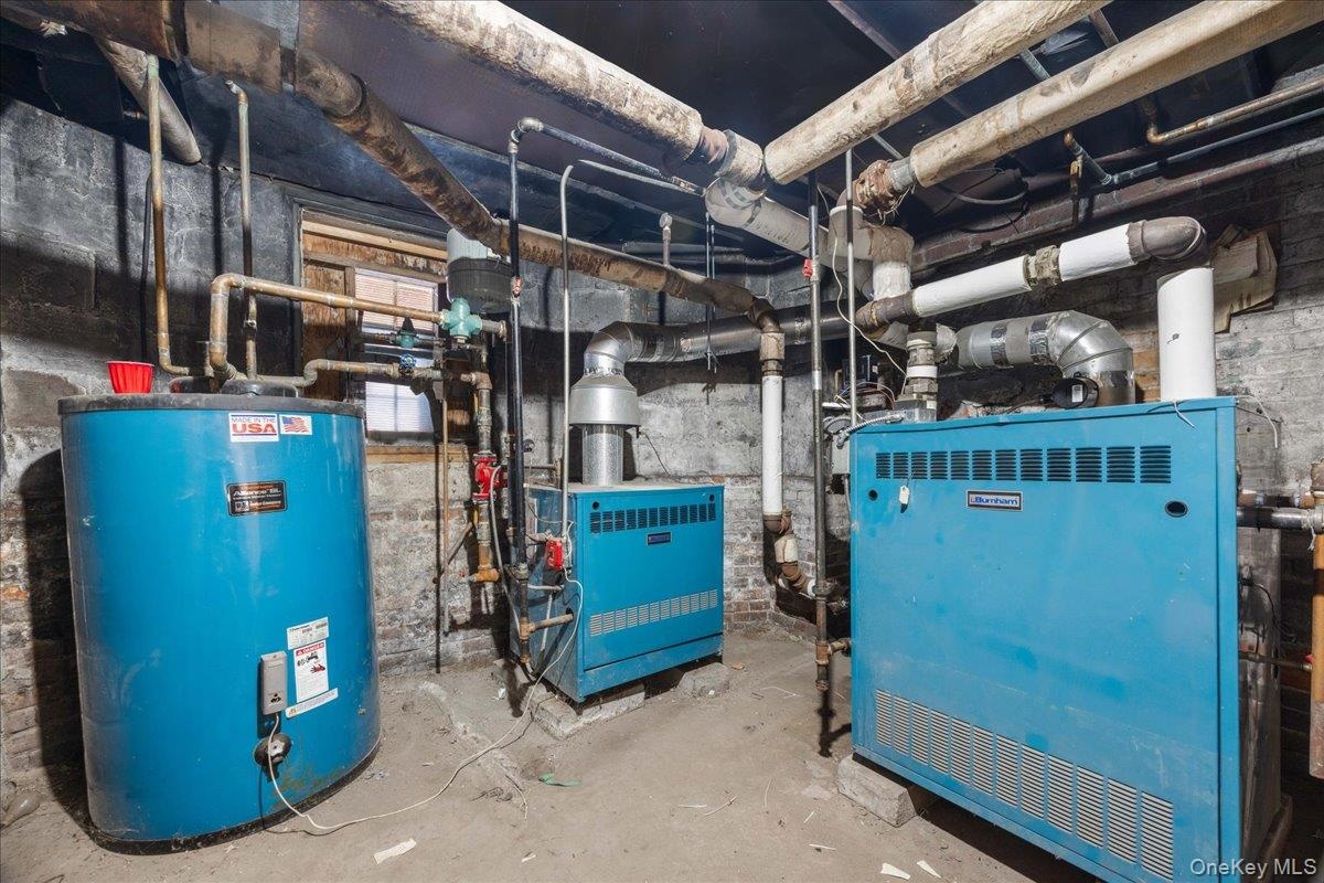 - Utility room featuring gas water heater and a heating unit