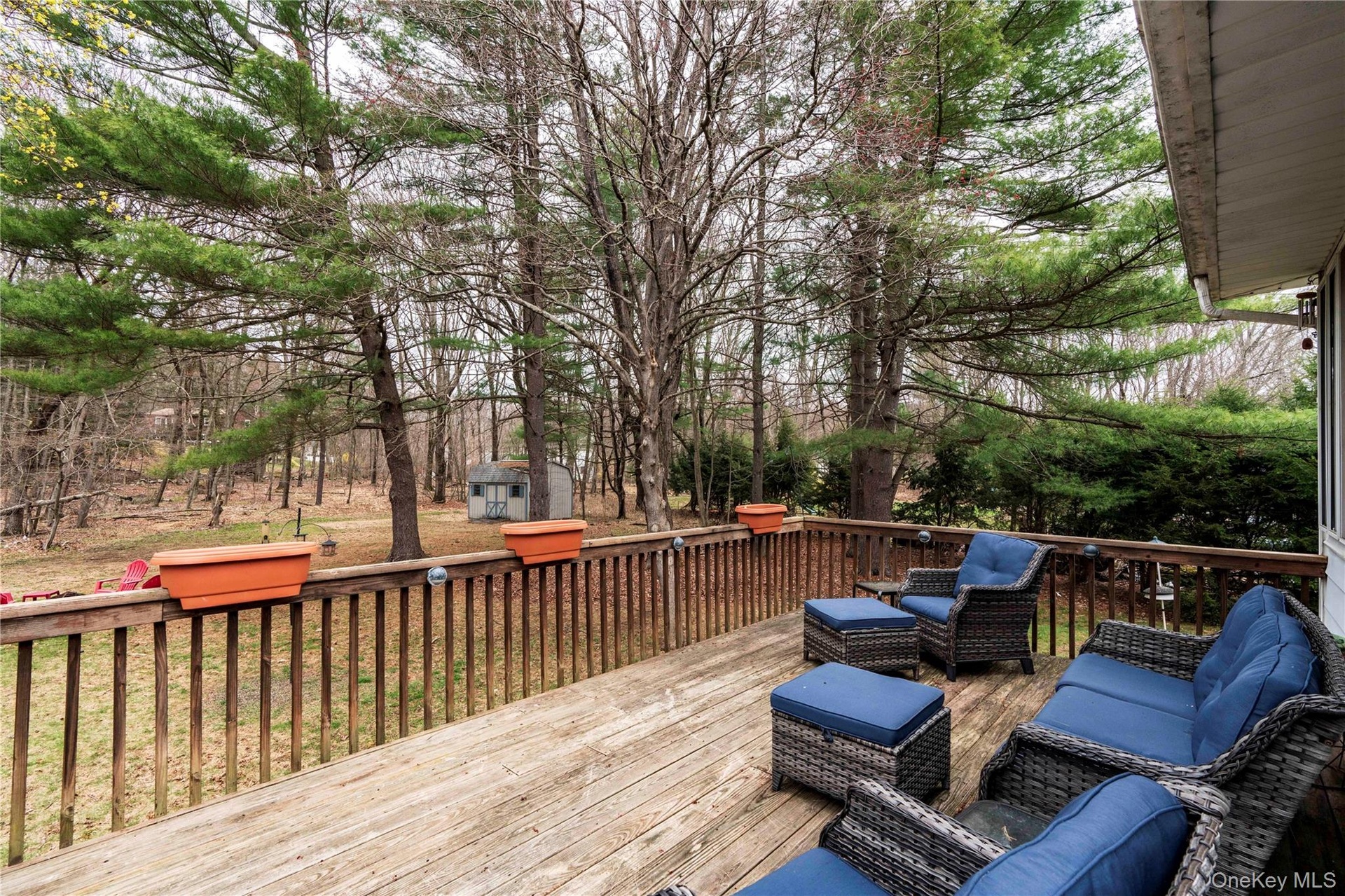 Welcome to this well maintained 3-bedroom, 2-bath raised ranch. NEW ROOF, SEPTIC FIELDS AND DISTRIBUTION BOX just installed 9/25. Ideally located on a quiet street within the desirable Arlington School District—just one mile from the Taconic State Parkway. Set on a private, level 1-acre lot, this home offers the perfect blend of comfort, functionality, and outdoor enjoyment. The sun-drenched main level features hardwood floors and an open-concept layout that seamlessly connects the spacious living and dining areas. The eat-in kitchen offers plenty of room for casual meals and easy entertaining. Step through the sliding glass doors into the inviting 3-season sunroom—an ideal spot to relax with morning coffee or host guests in any season. From the sunroom, walk out onto the expansive deck, perfect for summer grilling while enjoying views of the large, level backyard—ideal for outdoor play, or even a future in-ground pool. Three generous bedrooms and a full bath, along with central A/C, complete the main level. The lower level offers even more living space with a large family room featuring brand-new flooring, a second full bath, and convenient access to the 2-car garage. All this and just minutes from shopping, dining, and the Dutchess Rail Trail. Don’t miss this opportunity to own a move-in ready home in a prime location!