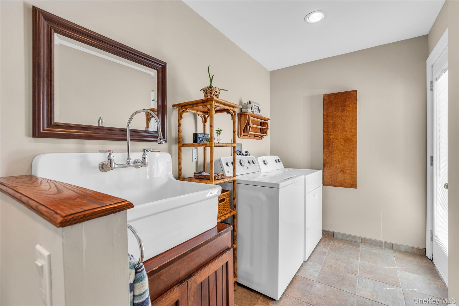 - Washroom featuring separate washer and dryer and recessed lighting. Access to ourside Decking