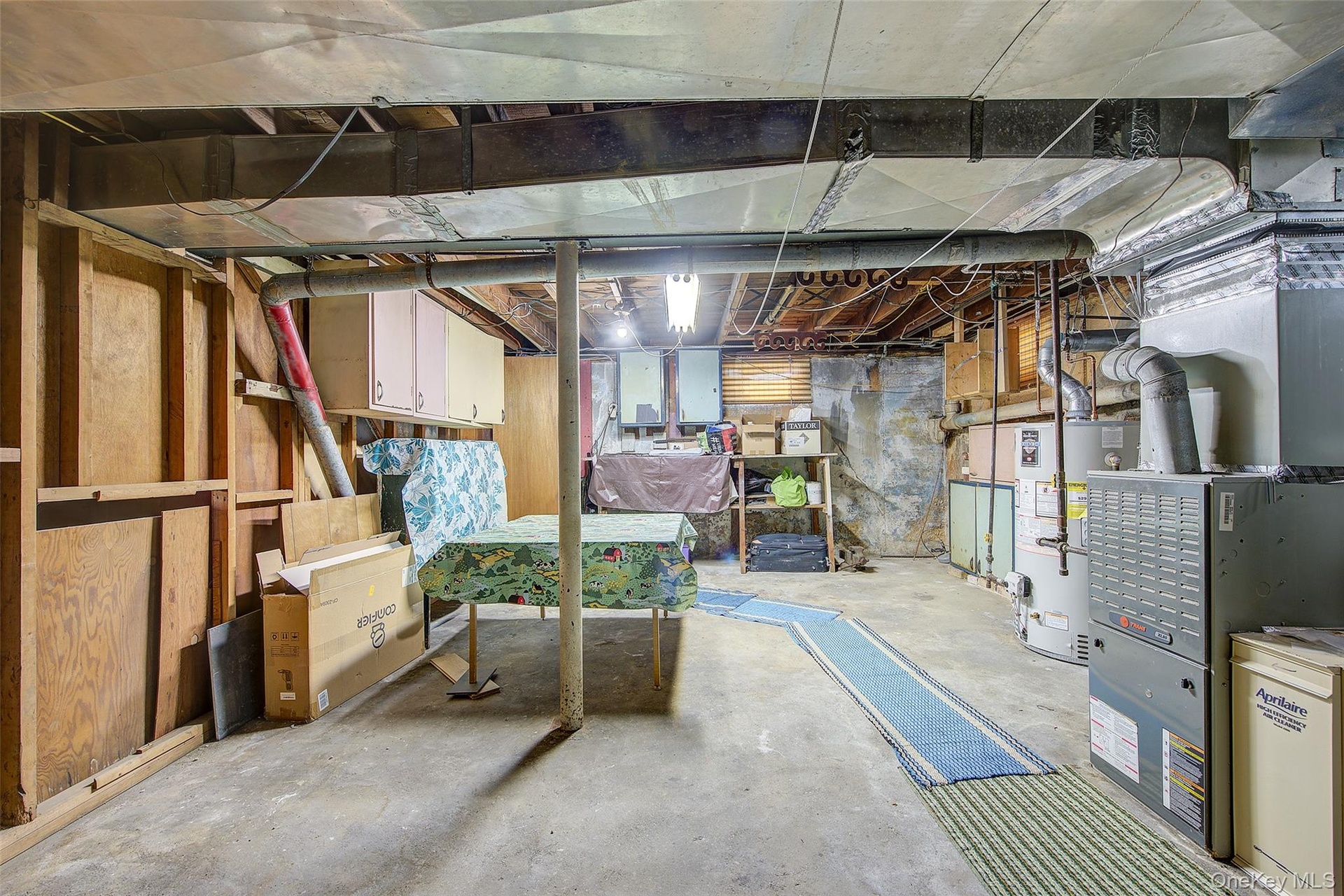 - Unfinished basement featuring gas water heater and heating unit