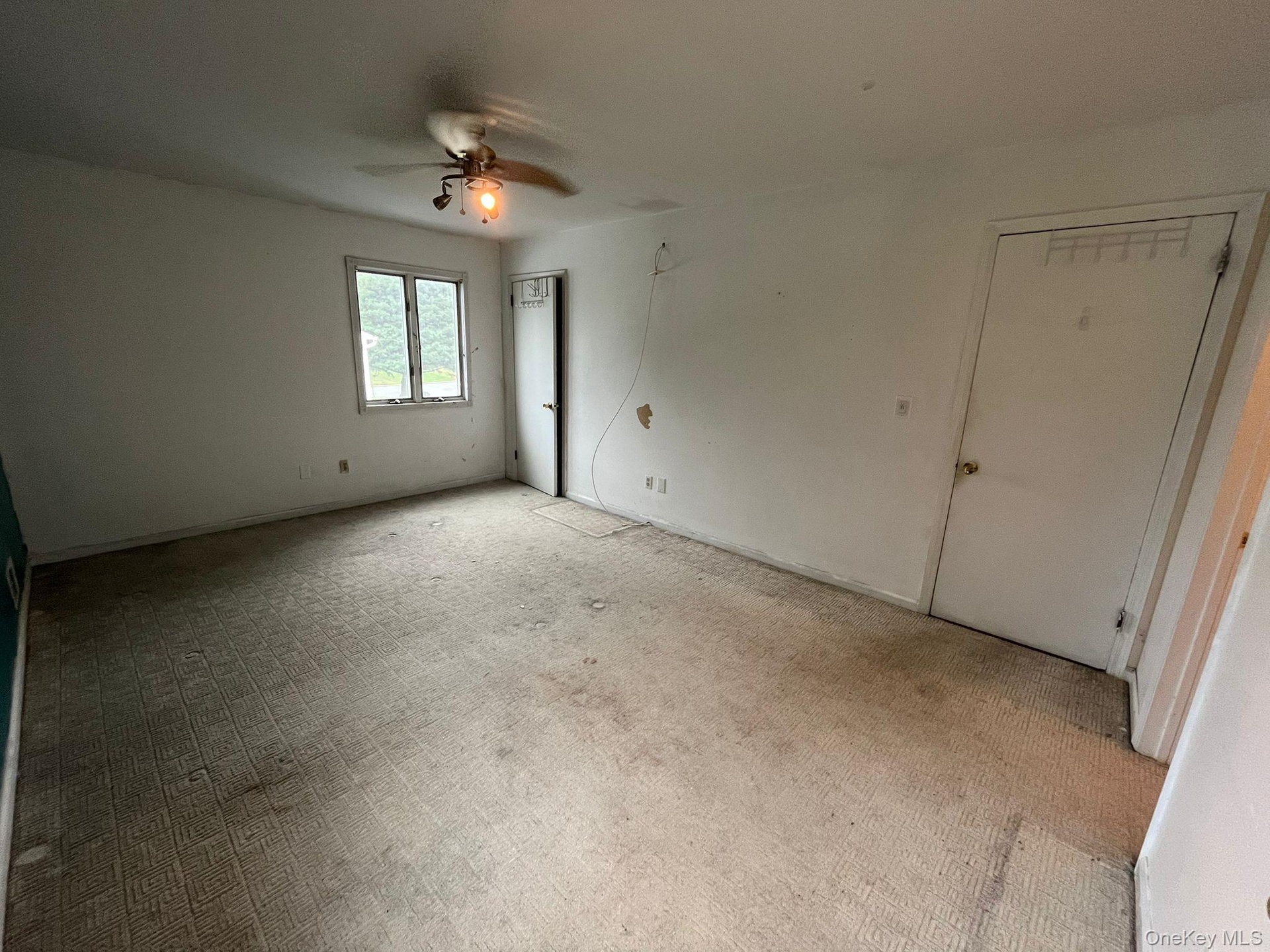 - Unfurnished bedroom featuring carpet floors and a ceiling fan