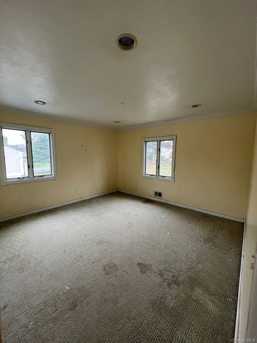 - Unfurnished room with carpet floors and ornamental molding