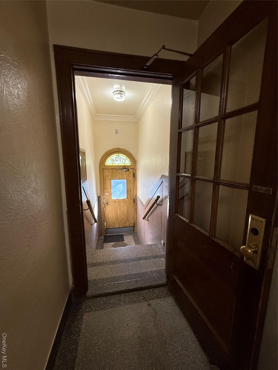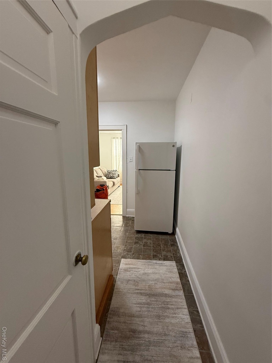 - Hallway with arched walkways and baseboards
