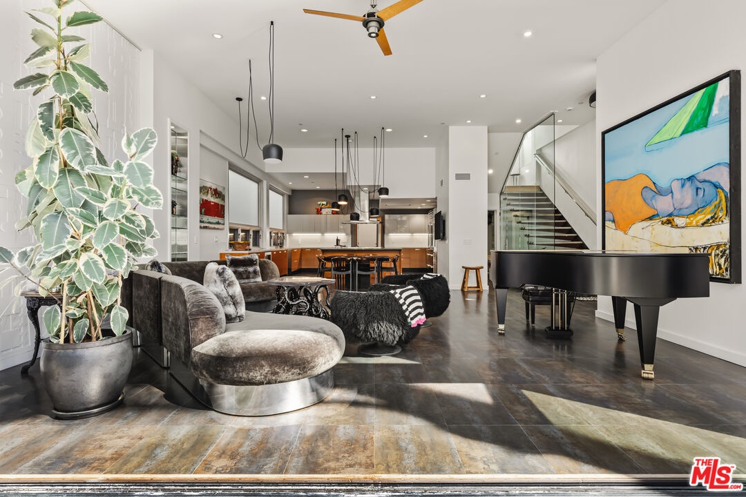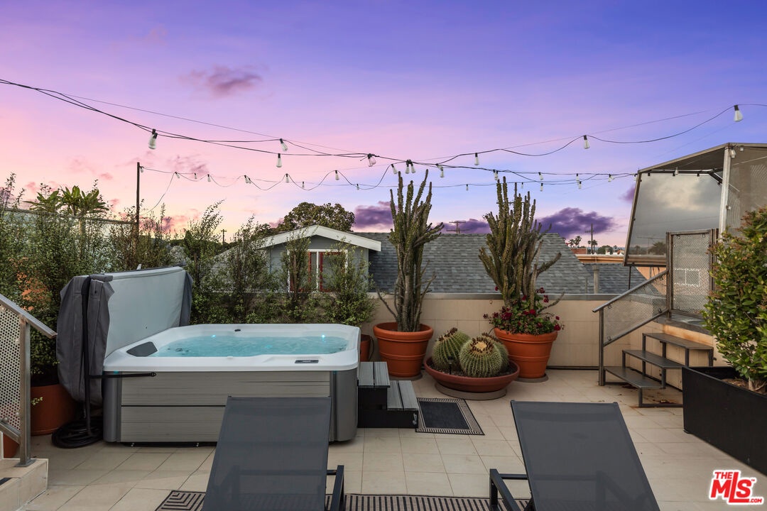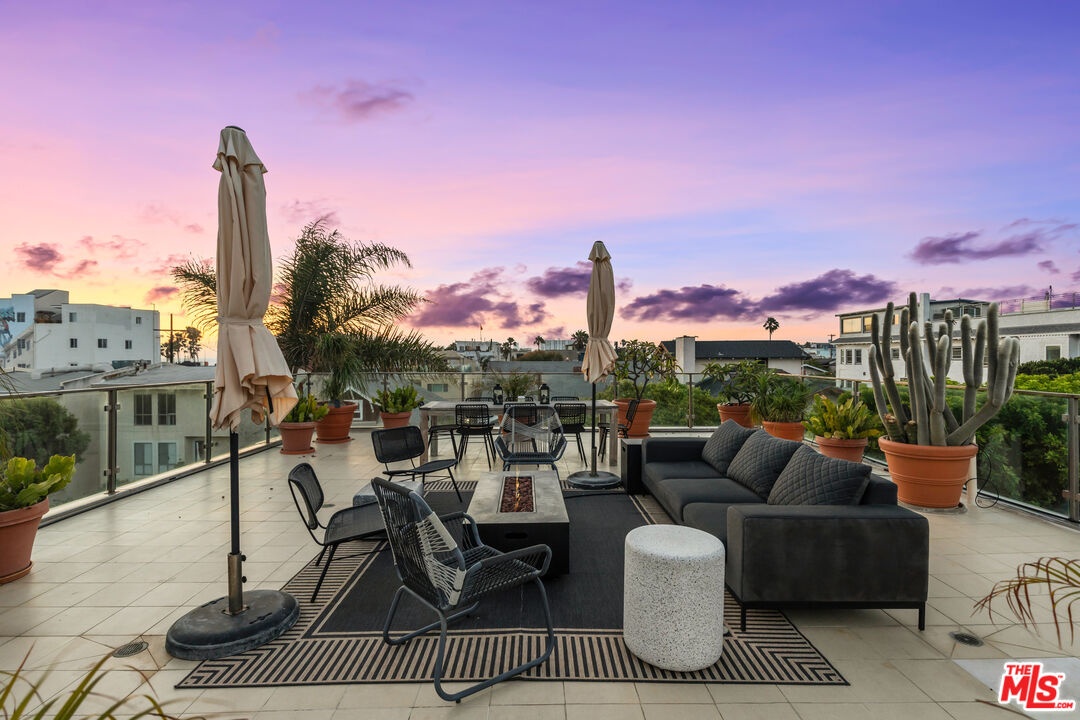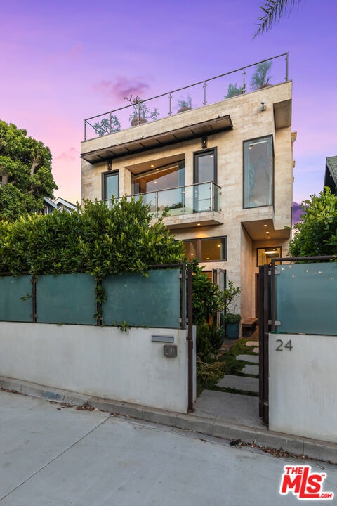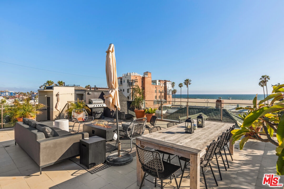 Experience this exceptional architectural residence - nearly 4,000 sqft of coastal luxury just steps from the sand, crowned by a 1,500 sqft rooftop deck with views, views, views! A private gated entry ushers you into lush garden surroundings and a tranquil front patio, setting the stage for the serenity within. Inside, soaring ceilings, gallery-style walls, and oversized ceramic tile floors create an atmosphere of modern elegance. Accordion glass doors dissolve the boundary between indoors and outdoors, opening the main living spaces to sunlight and ocean breezes. The chef's kitchen is both refined and functional, anchored by a central island with breakfast bar and Viking double oven and range. Subzero refrigeration, Miele espresso center, wall oven, and dishwasher pair with quartz counters and abundant cabinetry to satisfy the most discerning cook. A walk-in pantry, communications hub, and dedicated laundry room enhance convenience, while a sleek glass-walled staircase and in-home elevator connect all levels with ease. Upstairs, the expansive primary suite is framed by treetop and ocean views, complete with a generous walk-in closet, fireplace, and a spa-inspired bath featuring a soaking tub, walk-in shower, and custom finishes. Two secondary bedrooms with built-in desks share a well-appointed bath, while a remarkable two-story flex space offers endless possibilities as a library, creative studio, office, or private guest apartment with its own entrance. The crown jewel is the rooftop deck, a private sanctuary with 360-degree views, lounge and dining areas, spa tub, and built-in grill. Solar panels help offset energy use, and parking for up to four vehicles indoors and out plus ample storage rounds out the offering. This is Venice beach living at its most refined, a rare opportunity to own a home that blends architectural artistry, coastal ease, and unparalleled views in one of Southern California's most sought-after locations.