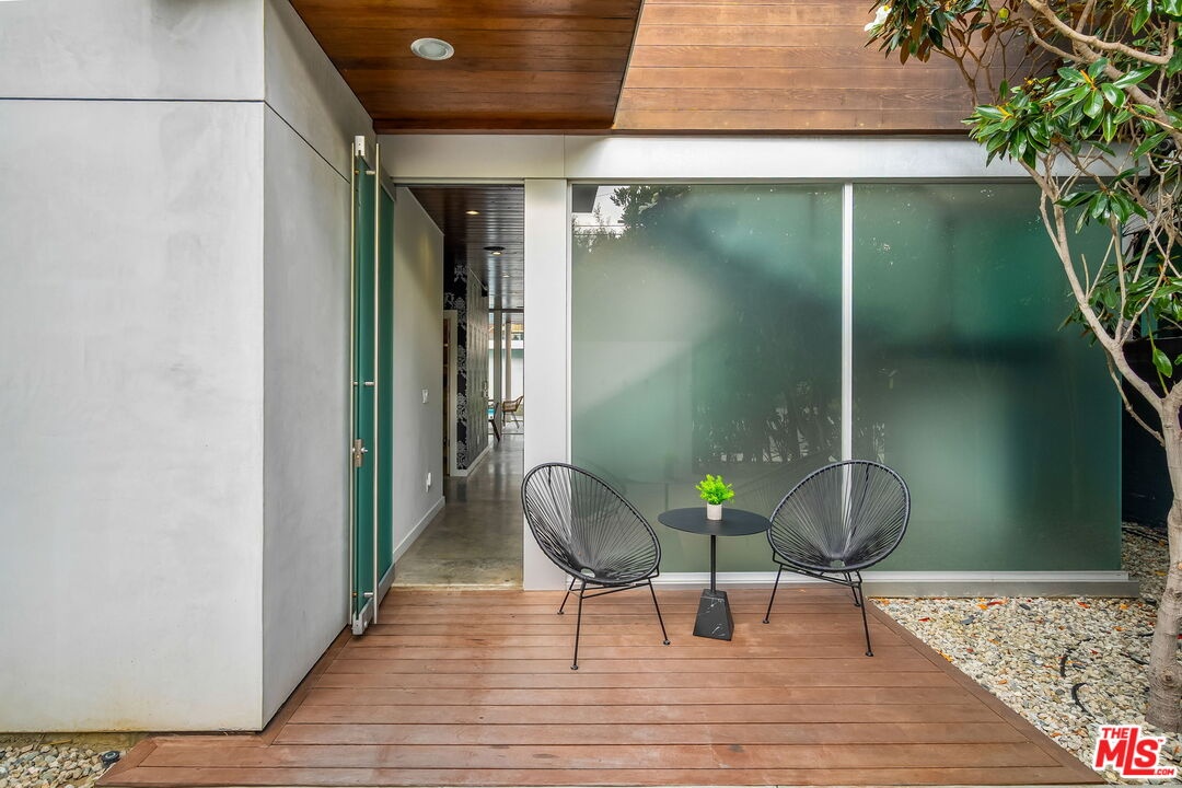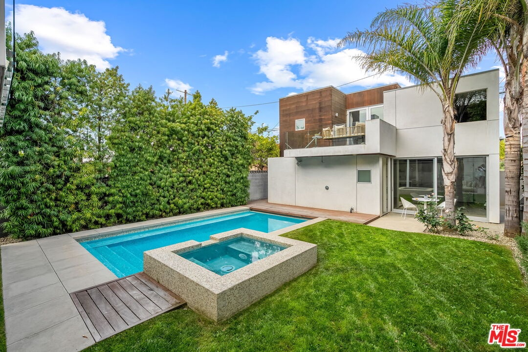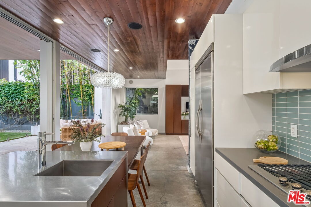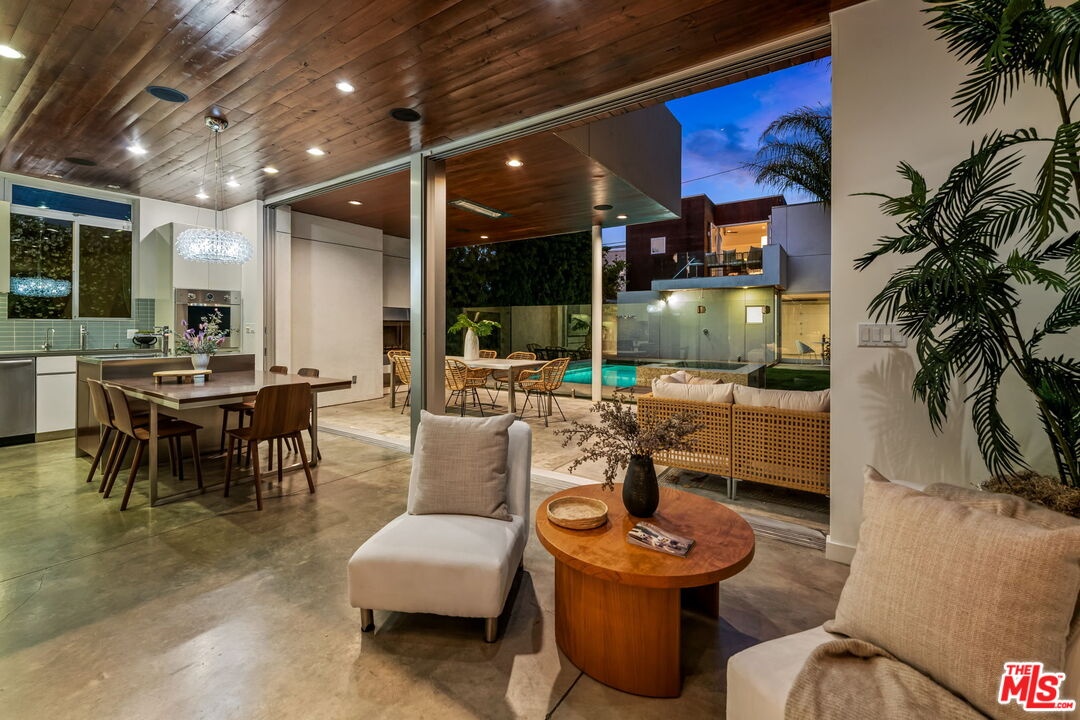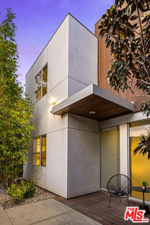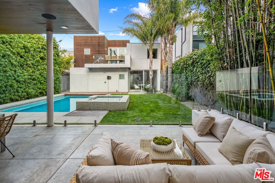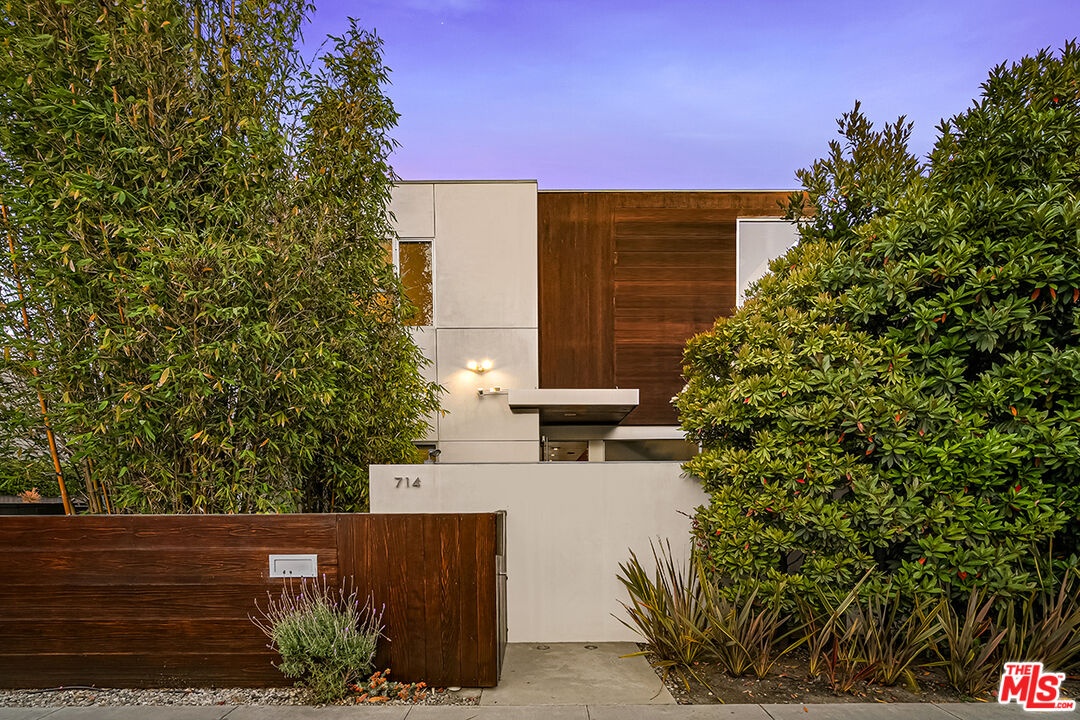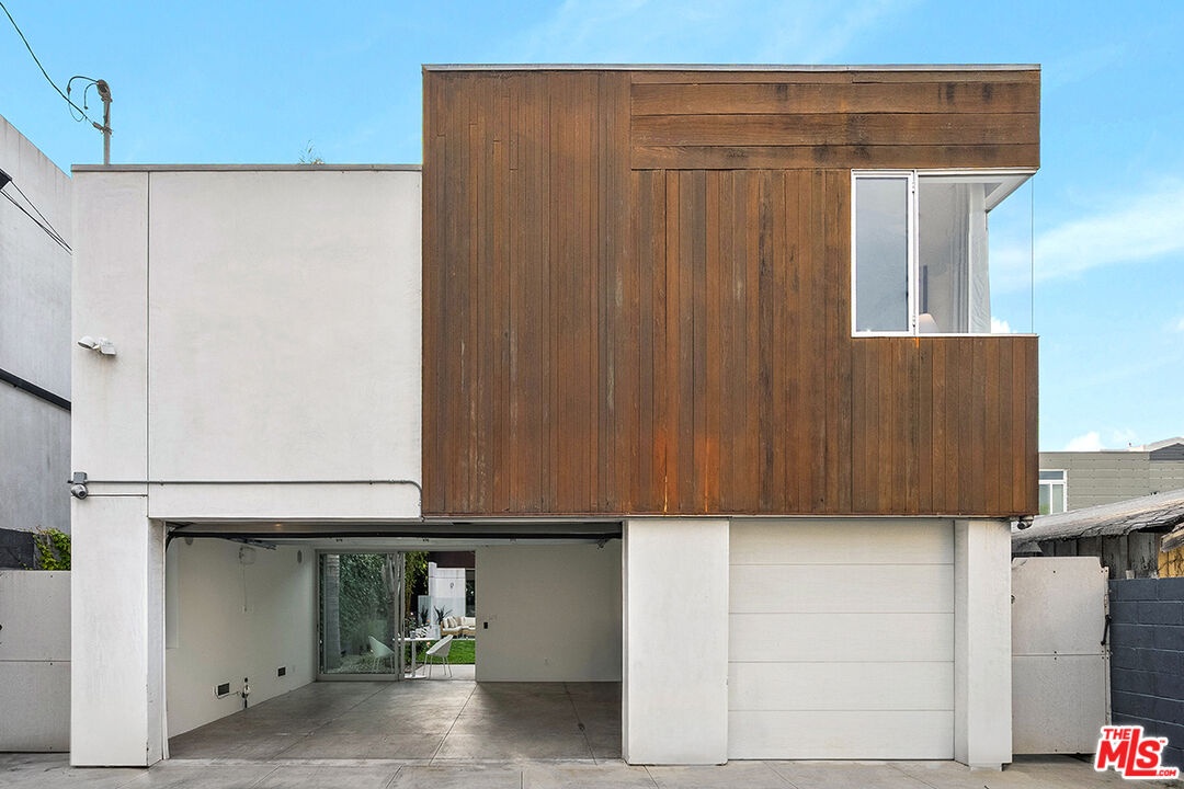 An inspiring creation by Bret Felix Theony, the same visionary architect behind Prince's iconic Paisley Park, this Venice sanctuary is two blocks above the vibrant Abbott Kinney with easy access to enticing eateries and shopping, the beach, bike path and more. The gated and private entry leads to walls of glass opening to the main living space with two story ceiling, concrete flooring complemented by warm wood detailing, and a floating staircase leading to the upper level. The chef's kitchen has stainless steel appliances and center island with breakfast bar and dining area. Designed to maximize a sense of indoor and outdoor living, the floor to ceiling pocket doors expand the voluminous interior space to its outdoor room: a covered dining area with heat lamps and fireplace, and a sitting area opening to the lushly landscaped and private yard with swimmer's pool and spa. The main house has one bedroom suite downstairs and two upstairs, with the primary suite opening to its balcony with a sitting area and serene outlook of the private compound. Above the three car garage is a separate guest suite with a versatile storage space and a separate entrance, ideal for extending family, guests or home office. Amenities include radiant heat in the baths, built in speakers throughout, retractable pool cover, central AC, built in outdoor heating, wine fridge and three car garage with sliding doors opening to the backyard and pool. Seize this opportunity to embrace California living at its finest in a prime Venice location.