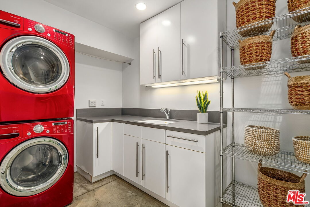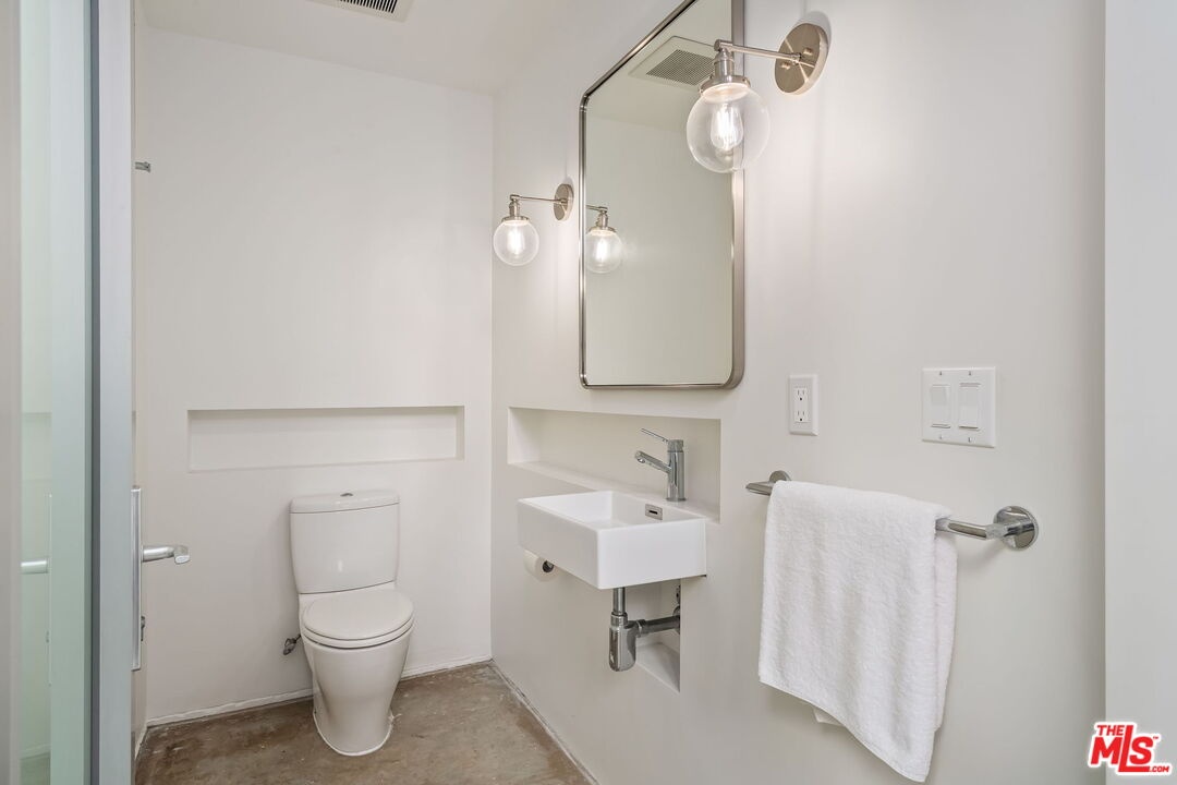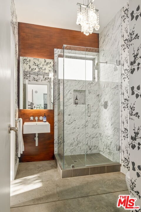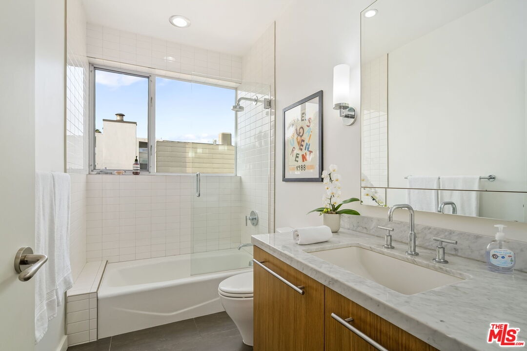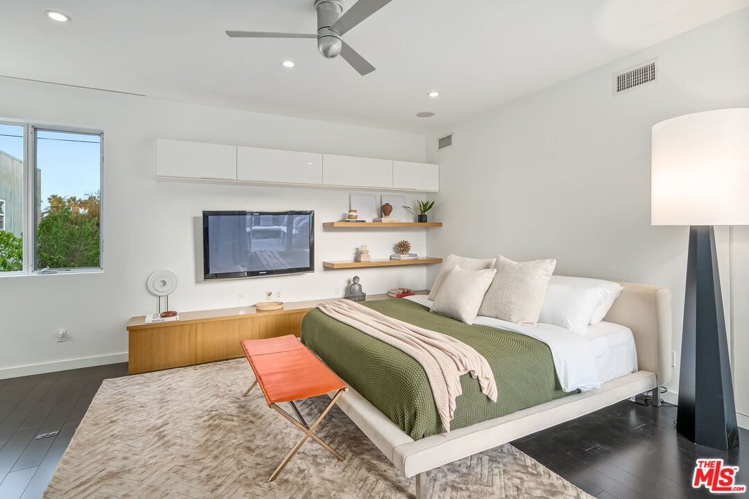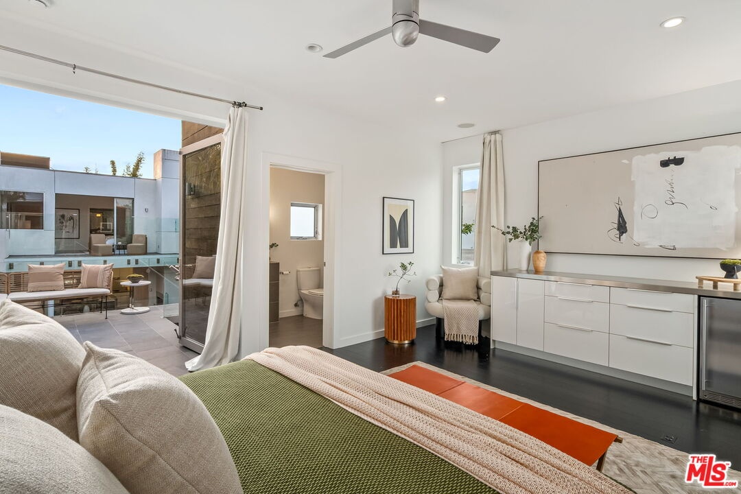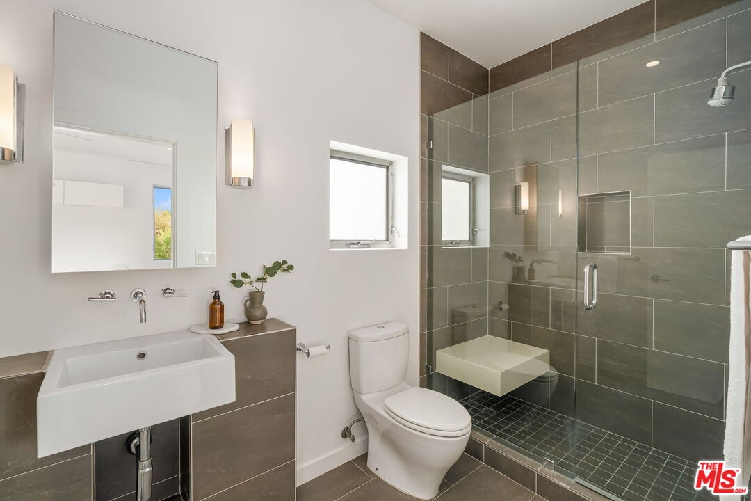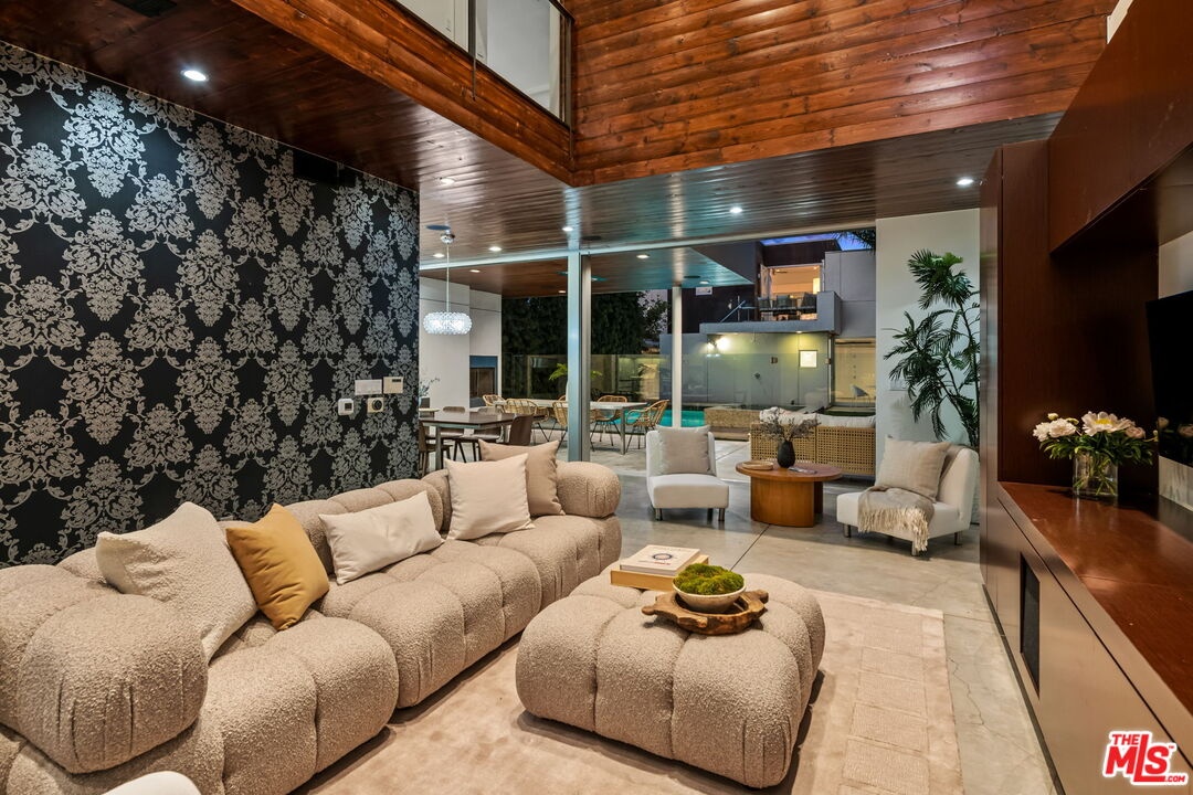 An inspiring creation by Bret Felix Theony, the same visionary architect behind Prince's iconic Paisley Park, this Venice sanctuary is two blocks above the vibrant Abbott Kinney with easy access to enticing eateries and shopping, the beach, bike path and more. The gated and private entry leads to walls of glass opening to the main living space with two story ceiling, concrete flooring complemented by warm wood detailing, and a floating staircase leading to the upper level. The chef's kitchen has stainless steel appliances and center island with breakfast bar and dining area. Designed to maximize a sense of indoor and outdoor living, the floor to ceiling pocket doors expand the voluminous interior space to its outdoor room: a covered dining area with heat lamps and fireplace, and a sitting area opening to the lushly landscaped and private yard with swimmer's pool and spa. The main house has one bedroom suite downstairs and two upstairs, with the primary suite opening to its balcony with a sitting area and serene outlook of the private compound. Above the three car garage is a separate guest suite with a versatile storage space and a separate entrance, ideal for extending family, guests or home office. Amenities include radiant heat in the baths, built in speakers throughout, retractable pool cover, central AC, built in outdoor heating, wine fridge and three car garage with sliding doors opening to the backyard and pool. Seize this opportunity to embrace California living at its finest in a prime Venice location.