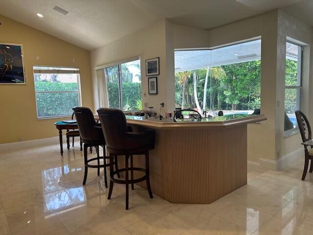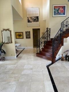 DescriptionA marble driveway lined with palm trees leads you to the entrance. The door opens to a 22'' high livingroom flooding the home with light and air.The living room opens to a large marble covered patio overlooking the pool and fenced in Soccer sized grass yard. This elegant home is designed for sophicated and relaxed entertaining inside and out. A gourmet kitchen with high end appliances, island ,granite counters, overlooks a large familyroom, bar and fireplace.The first level primary suite with sitting area is a calm oasis . Two walk in closets and a hanging closet lead to the primary bath with dual sinks, vanity, separate shower and whirlpool tub. The primary level has a second bedroom, office and dinningroom. The stairs lead you to a second level with 3 bedrooms, 2 baths, loft and deck