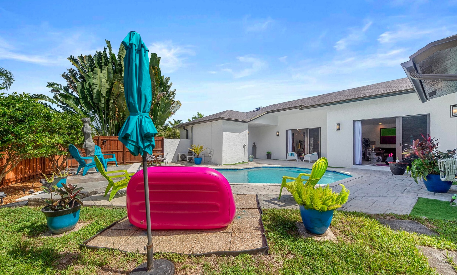 DescriptionBeautifully updated, move-in ready home offering modern upgrades and comfort in a prime location--just 5 minutes to the marina and under 8 minutes to Ocean Ridge beach. Located on a quiet cul-de-sac on a lot just over a quarter acre, the home features new silver travertine porcelain flooring, impact windows and doors, a new roof, updated lighting, and a new AC. Skylights and a solar attic fan improve energy efficiency. The resurfaced saltwater pool and covered lanai separate the main home from a detached guest suite--perfect for visitors or rental income. A new fence and fresh interior/exterior paint complete this exceptional property.