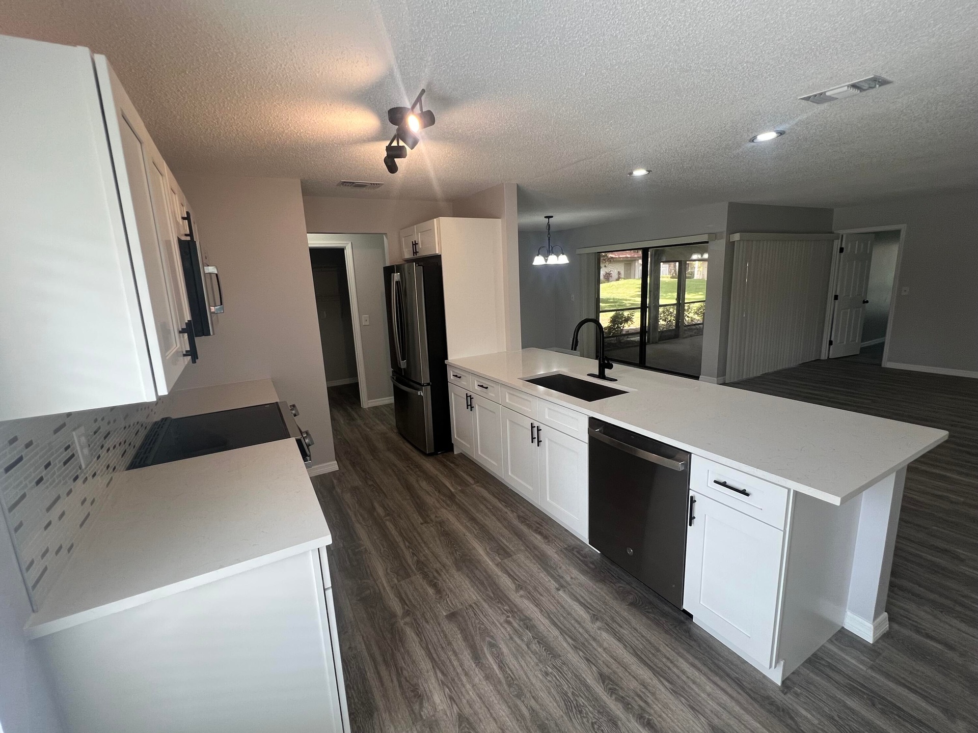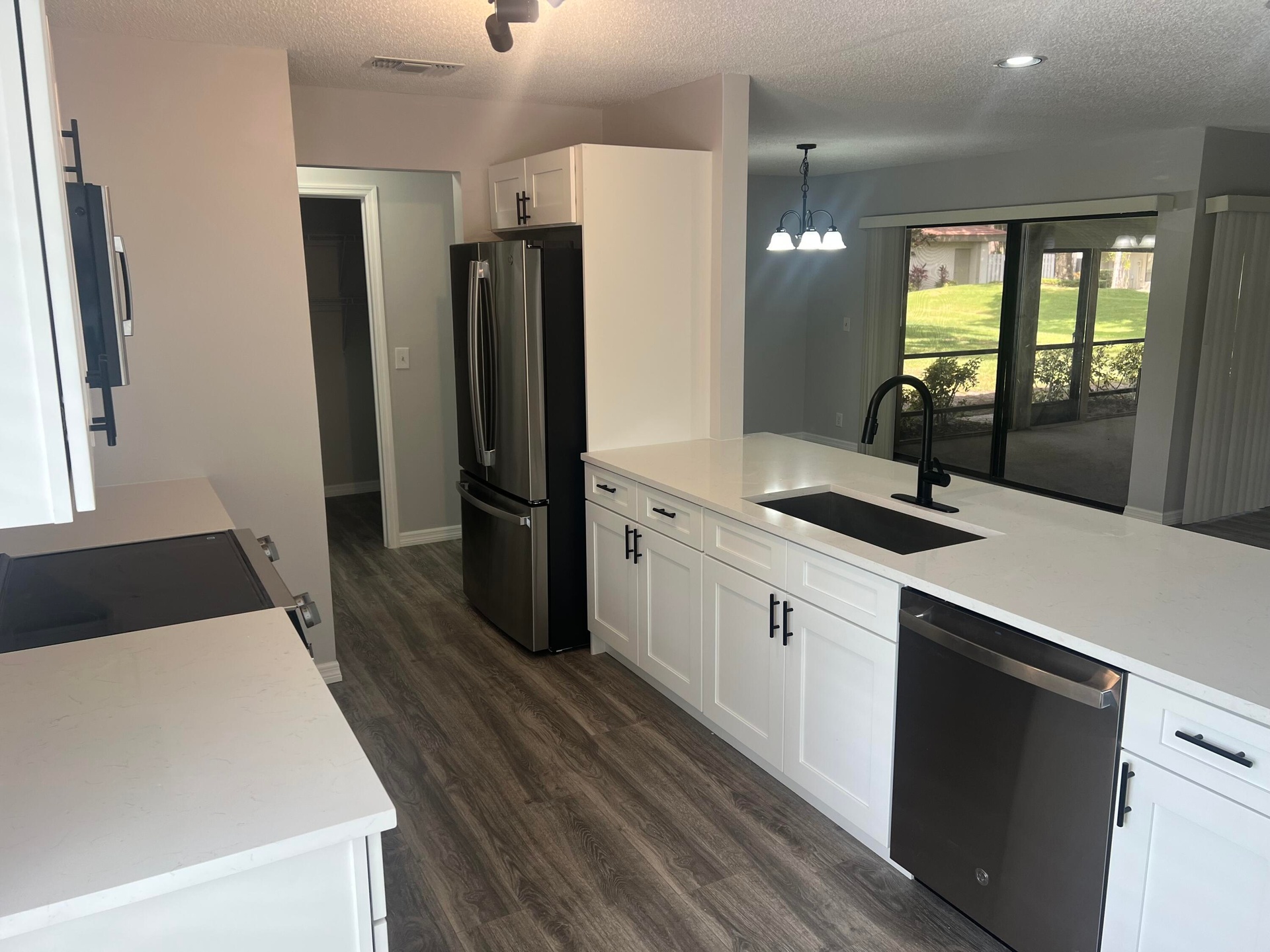 Fully renovated! Brand new kitchen with quartz countertops, stainless steel appliances, and white cabinets. New flooring throughout. New bathrooms! Move right in! Covered patio is a perfect spot to enjoy the South Florida weather. Forest Grove is perfectly located inside Indian Spring and is near shopping, restaurants, airports, 5 miles away from the beach. Community swimming pool right across the beautiful square.