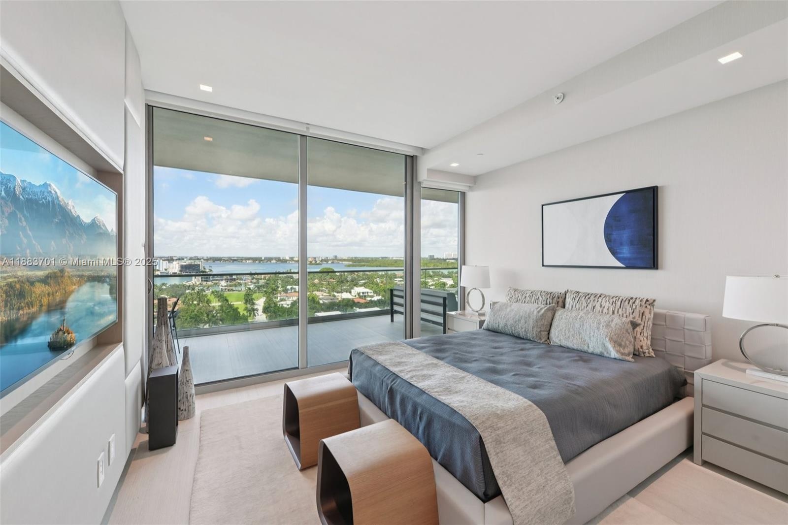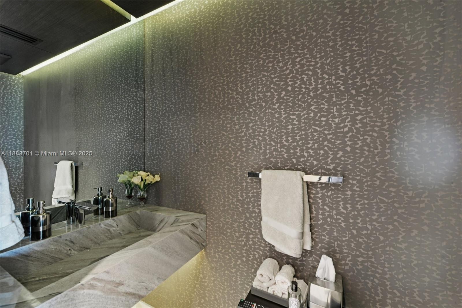 STUNNING one-of-a-kind 3BR/4.5BA residence, nearly fully customized by 'Fede Design' and featured in Miami Design Magazines. Soaring 10’ ceilings with floor-to-ceiling glass and expansive balconies frame breathtaking ocean & Intracoastal views. Gourmet “Dada” kitchen with 'Gaggenau' appliances, oversized 54" refrigerator,marble island and wine cellar.Custom “Ornare” closets highlight the designer finishes. All bedrooms feature ensuite baths, including a master suite with a custom electric drop-down TV screen. Customized doors with leather accents. Additional features include porcelain tile, spa-inspired marble baths, smart-home integration, motorized shades, a custom bar with ice maker, and laundry room. A truly unique residence with world-class amenities and steps from Bal Harbour Shops.