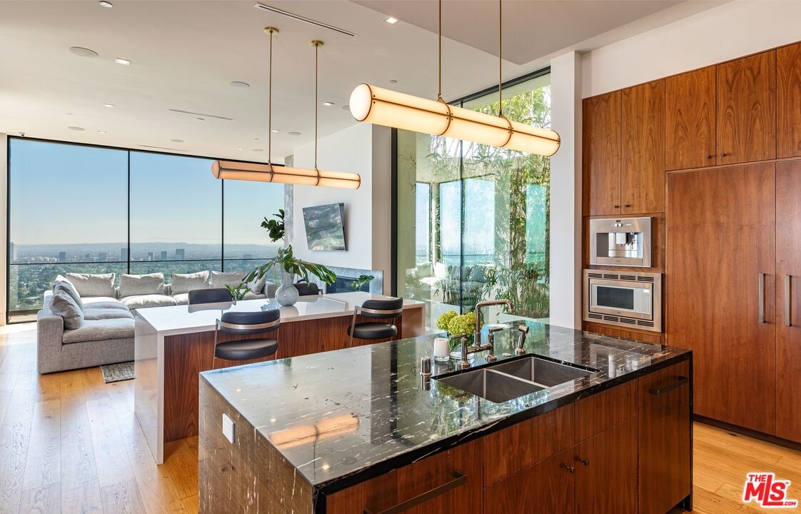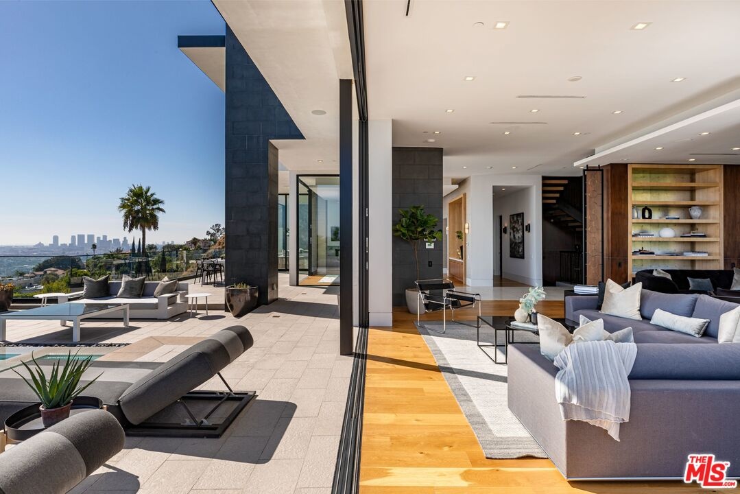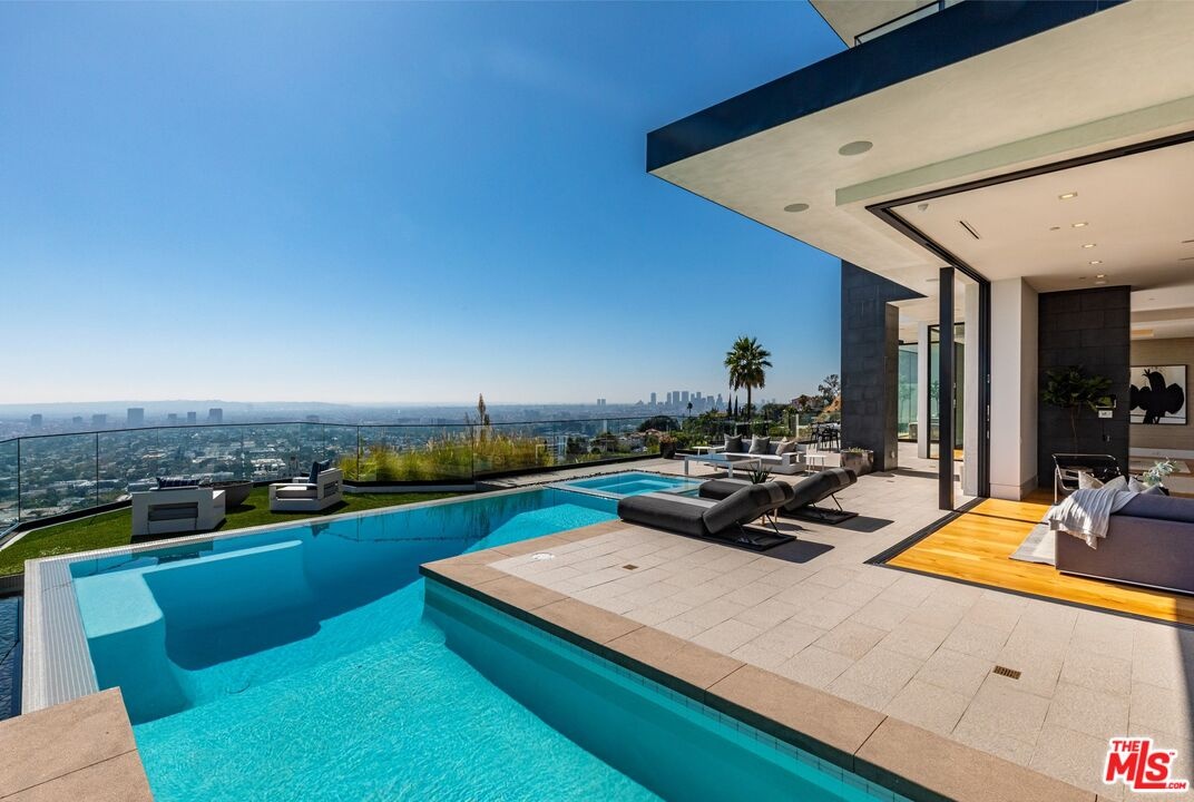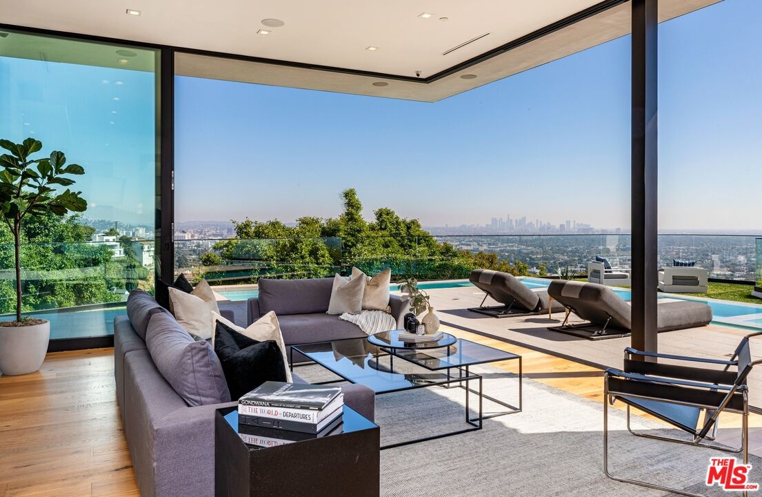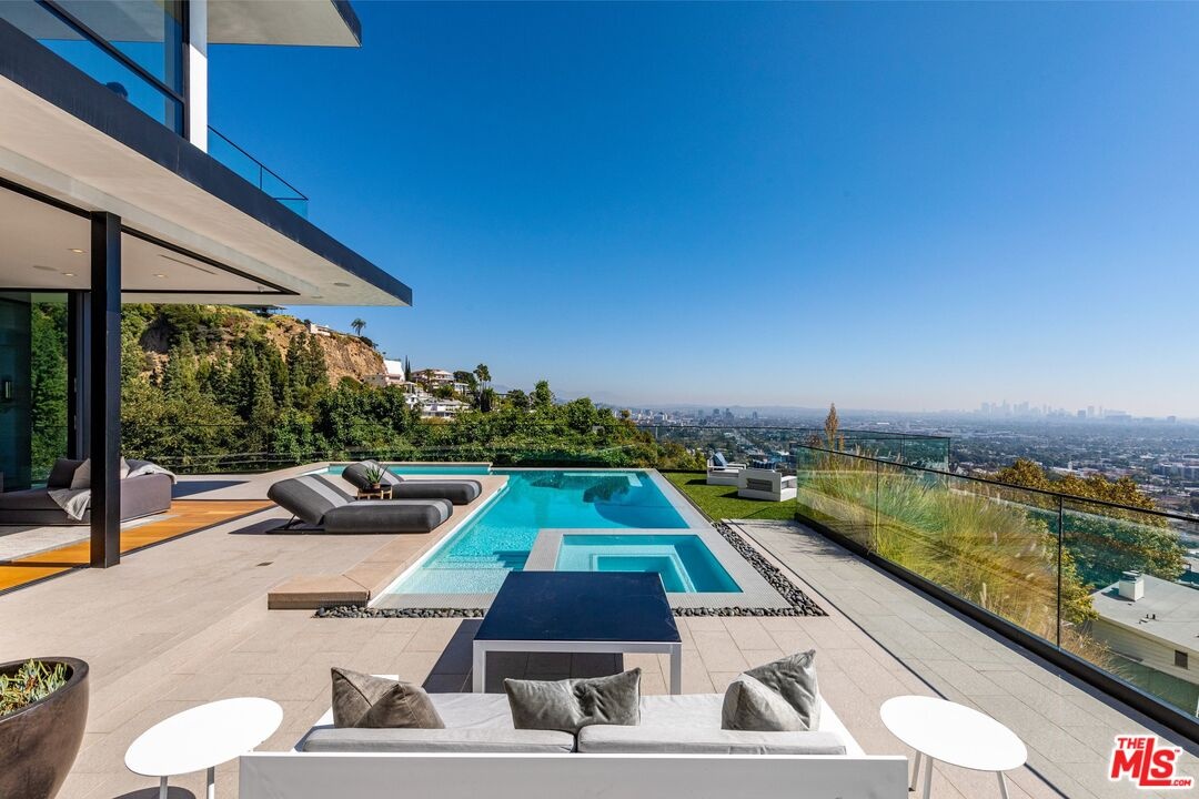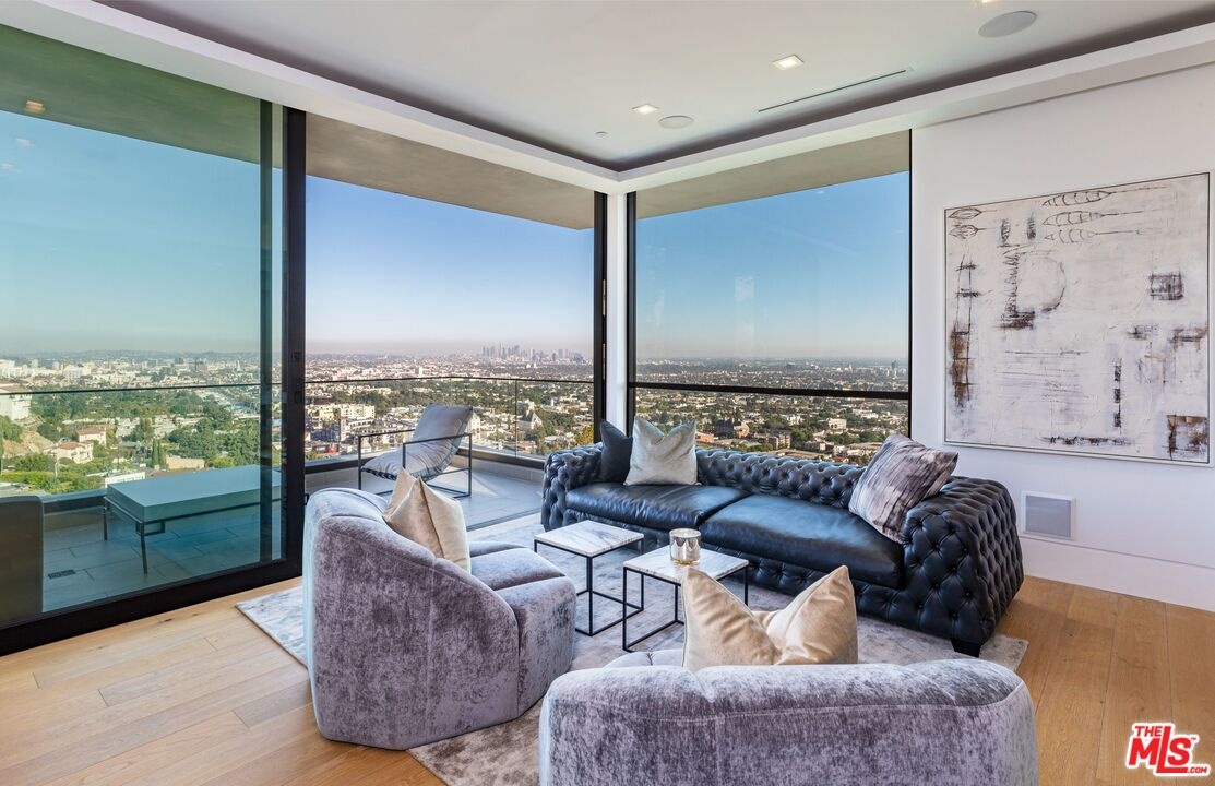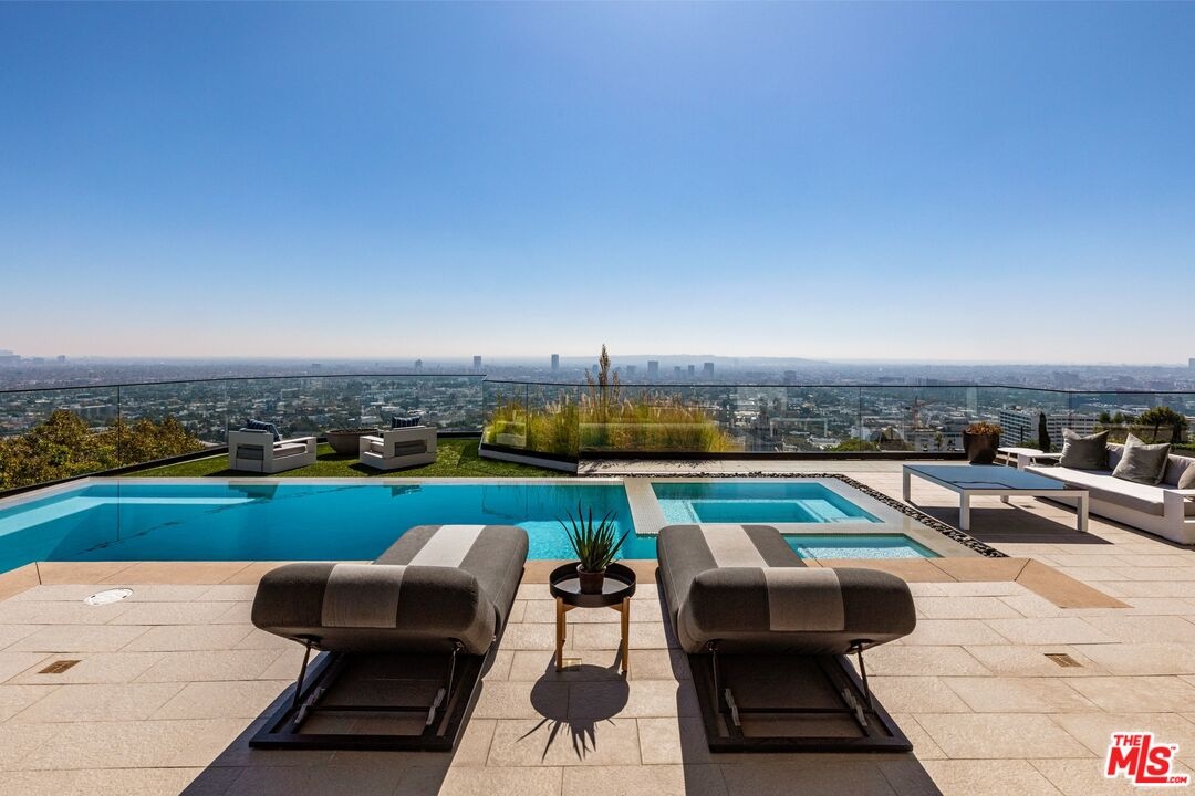 DescriptionQuintessential Sunset Strip Modern with A+ views from downtown to the ocean! Walled and gated motor court, perfect for the high-profile privacy/security conscious. Double height entry. Versatile living rooms lead to vanishing walls of glass opening to wraparound outdoor space featuring an infinity-edge L pool, spa, firepit. Chefs eat-in kitchen with Gaggenau appliances, marble countertops, butler's pantries & double island. The primary suite features a sitting room, dual bathrooms, dual walk-in closets, and an outdoor patio. Movie theater, video wall in entertainment room with bar opens out to the view and terrace. Gym or guest suite w/ wet/dry sauna. Off street parking & 3 car garage. Award winning designer Tim Campbell used midcentury modern influences like grand terrazzo, antique brass, warm woods and elegant natural stone. Moments from Sunset yet perched on a promontory.Amenities- Balcony