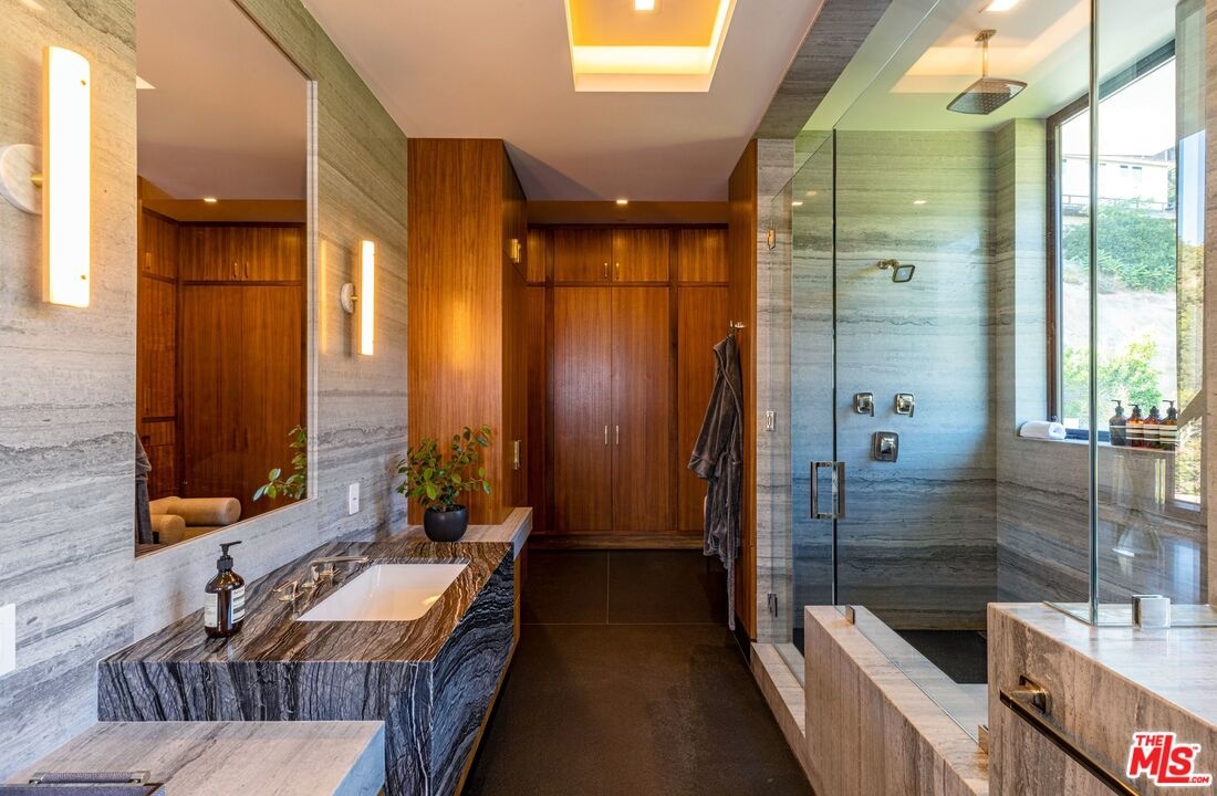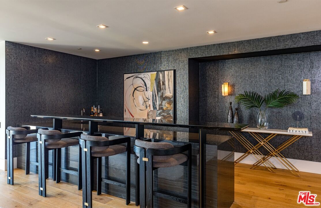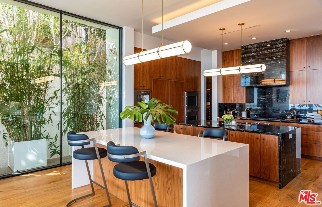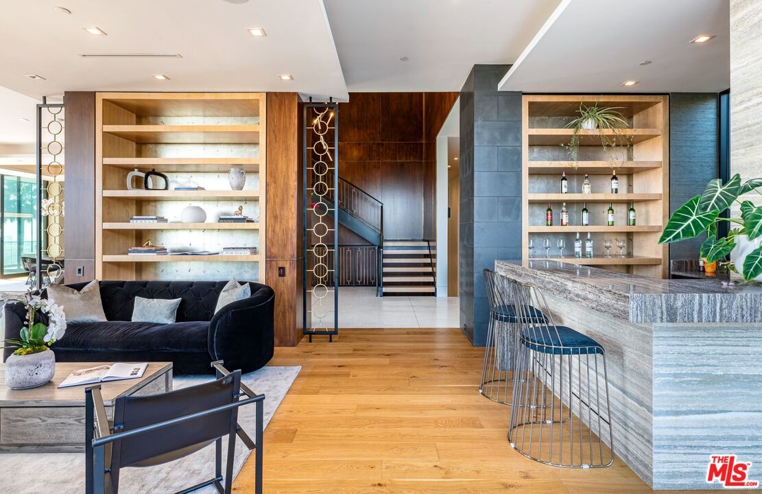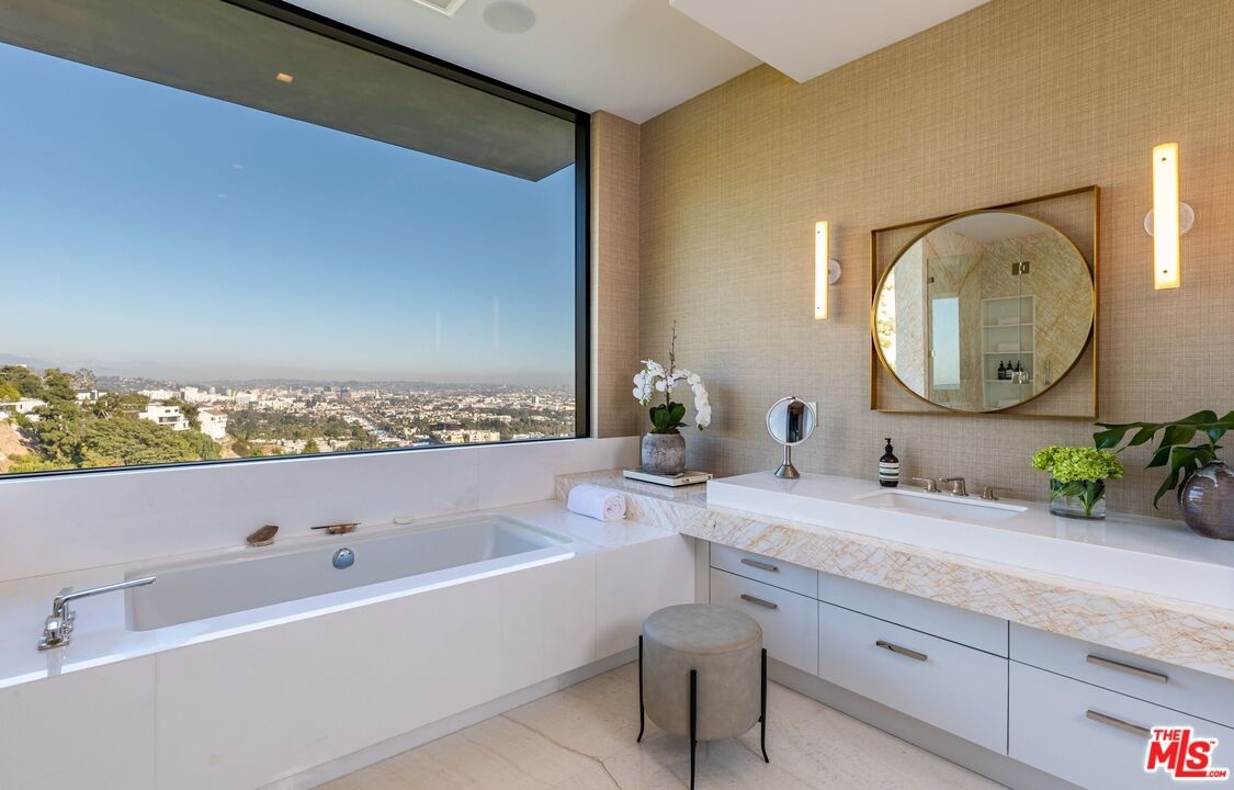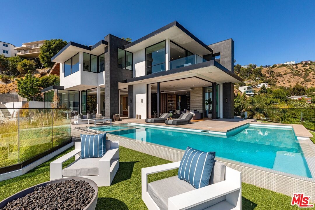DescriptionQuintessential Sunset Strip Modern with A+ views from downtown to the ocean! Walled and gated motor court, perfect for the high-profile privacy/security conscious. Double height entry. Versatile living rooms lead to vanishing walls of glass opening to wraparound outdoor space featuring an infinity-edge L pool, spa, firepit. Chefs eat-in kitchen with Gaggenau appliances, marble countertops, butler's pantries & double island. The primary suite features a sitting room, dual bathrooms, dual walk-in closets, and an outdoor patio. Movie theater, video wall in entertainment room with bar opens out to the view and terrace. Gym or guest suite w/ wet/dry sauna. Off street parking & 3 car garage. Award winning designer Tim Campbell used midcentury modern influences like grand terrazzo, antique brass, warm woods and elegant natural stone. Moments from Sunset yet perched on a promontory.Amenities- Balcony