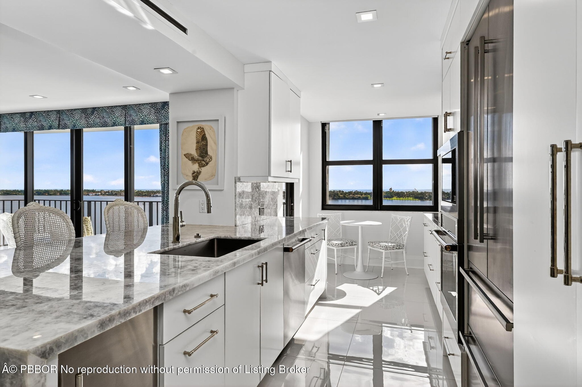 Rare totally renovated three-bedroom Northeast corner unit on the eleventh floor. This prime location has all bedroom with Intracoastal & Ocean views northeasterly with the grand living room with breathtaking views looking out to the intracoastal, the Island of Palm Beach & the Atlantic Ocean. Features include all impact windows and doors, all new appliances, plumbing, air conditioning and duct work, floors, bathrooms, built in closets & recessed ceiling lights. This is a move in ready apartment. There is a private storage room for any overflow. This stunning apartment has been meticulously cared for by the seasonal owners. The swimming pool is an excellent lounging area looking over the intracoastal. One covered parking and open parking space. Five minutes to downtown Palm Beach.