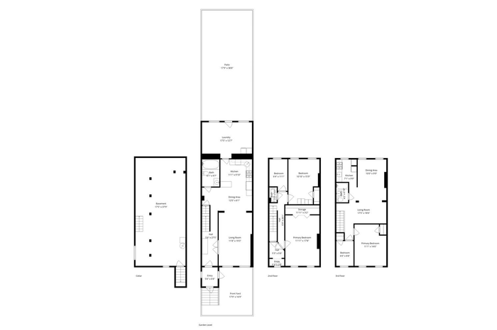 The current layout features a spacious 3-bedroom, 1.5-bathroom triplex beginning on the garden level, complete with a bright living room, updated kitchen, and laundry area. Upstairs, two oversized bedrooms are complemented by a flexible home office, while the unfinished cellar offers versatile potential for a recreation room, studio, or additional storage. A private backyard serves as a tranquil retreat, ideal for entertaining, dining, or quiet relaxation. Above, the top-floor 1.5-bedroom, 1-bathroom unit features an inviting living area and a generously sized kitchen with granite countertops and stainless-steel appliances, making it an excellent income-producing rental or guest suite.