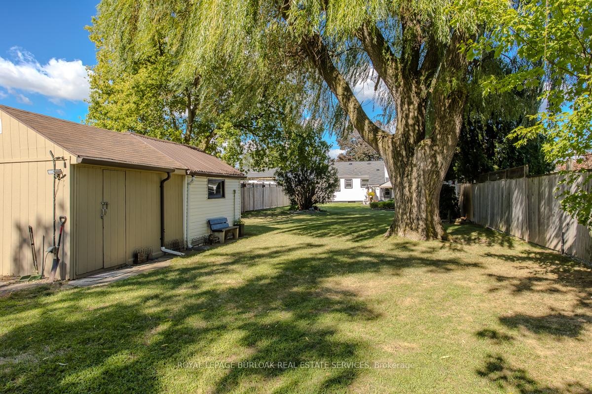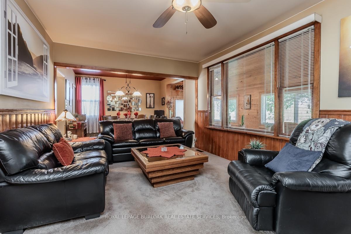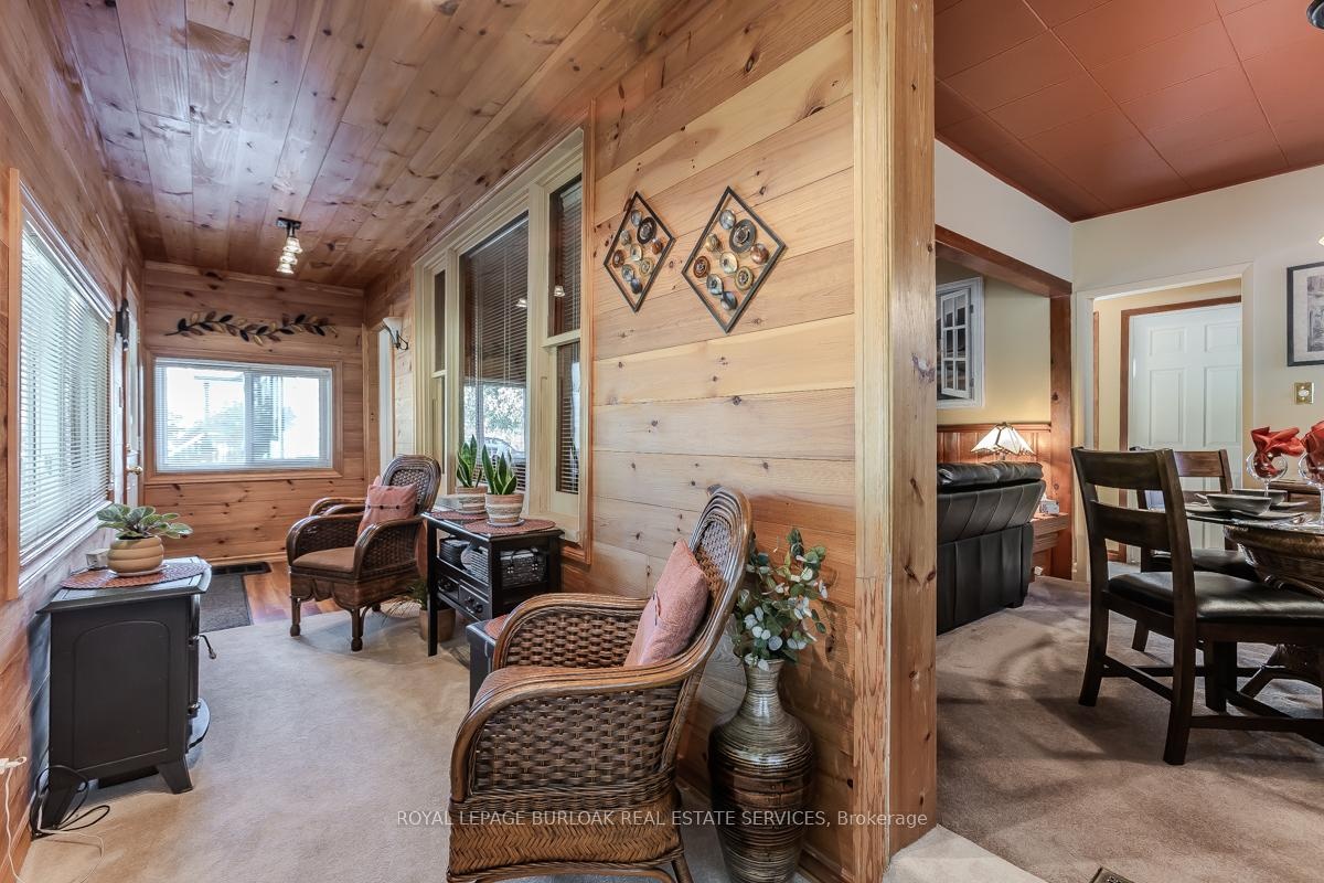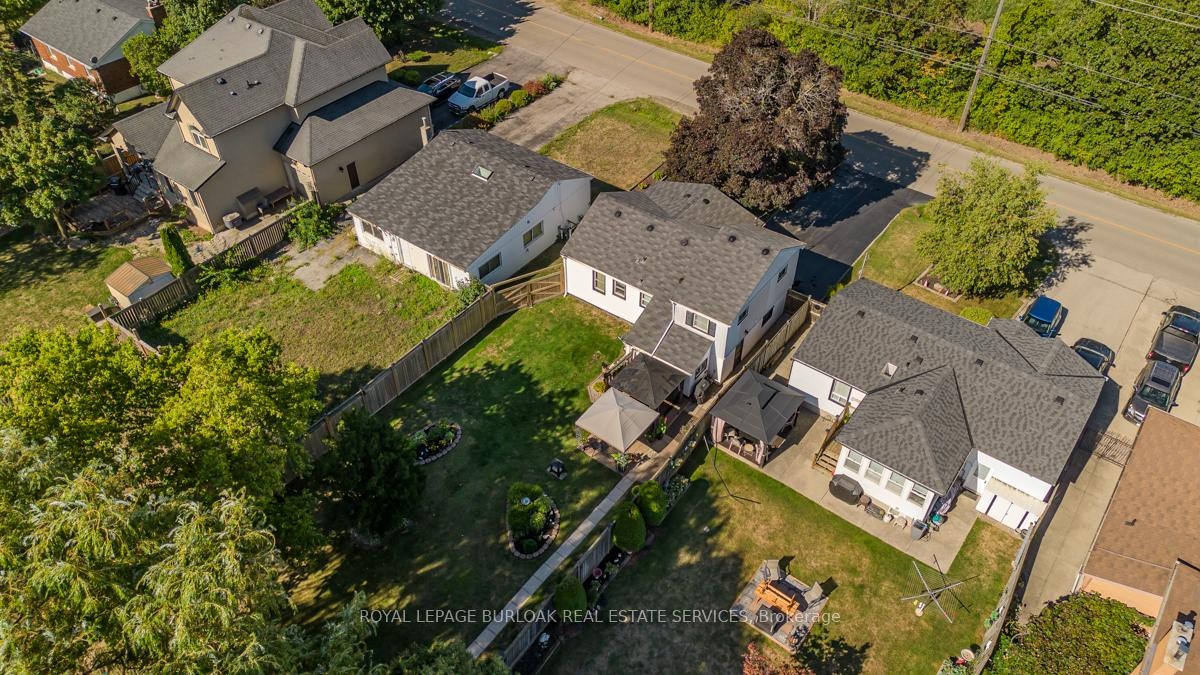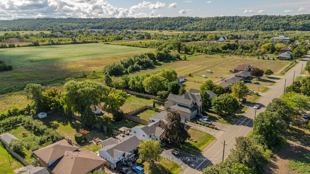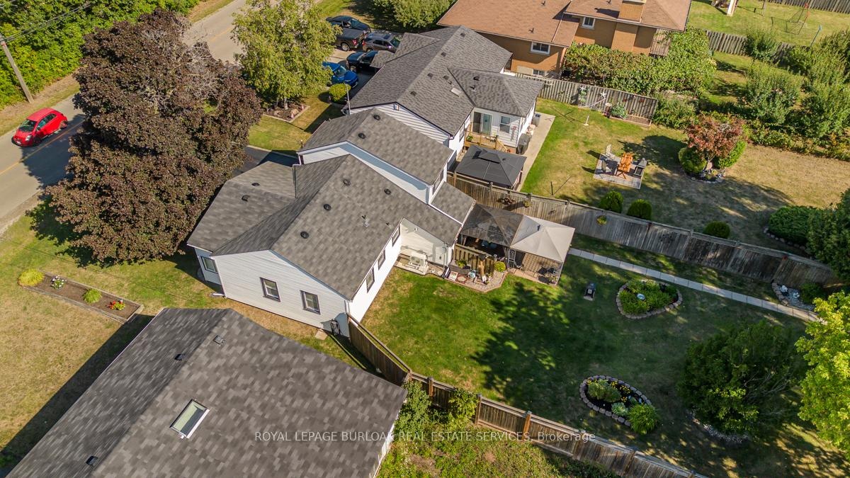 Welcome to country-style living at its finest! This charming property offers a rare opportunity to own a spacious 50 x 235 ft lot, surrounded by picturesque farmland while still being only minutes from the QEW, community centres, schools, libraries, and everyday amenities. With its cozy, cottage-like feel and endless potential, this home is the perfect canvas for families looking to renovate and design their dream retreat. The lot itself is truly the star of the show. Mature trees, lovely gardens, and a newer 6x6 fence create privacy and tranquility, while four backyard sheds and a canopy provide plenty of storage and workspace. The expansive green space is versatile and ready for you to create the backyard oasis you've always envisioned. Parking is plentiful with space for four vehicles plus an attached insulated garage, currently used for storage, that could be converted into additional living space. Step inside and you're greeted by a cozy sunroom wrapped in warm wood accents, instantly evoking cottage vibes. The open-concept dining and living area offers great flow, highlighted by wood wainscoting and a large window that fills the space with natural light. A spacious eat-in kitchen with stainless steel appliances, ample cabinetry, and tile backsplash makes for a functional hub of the home. Main-floor living is possible with a bedroom and 3-piece bath featuring a walk-in tile shower with built-in bench ideal for in-laws or single-level convenience. A mudroom with laundry provides easy access to the backyard and side yard. Upstairs, you'll find two additional well-sized bedrooms, perfect for growing families. With its unbeatable lot size, rural charm, and proximity to city conveniences, this property offers the best of both worlds. Bring your vision and transform this cozy cottage-style home into the country escape your family has been dreaming of.