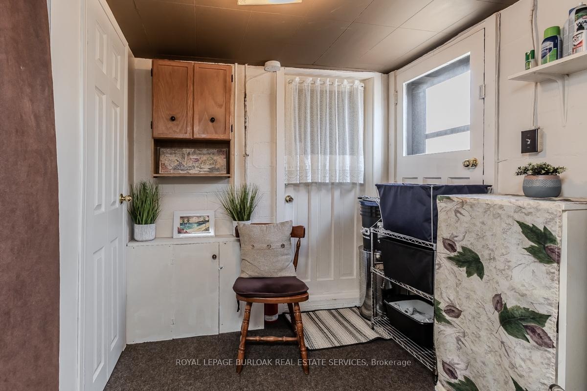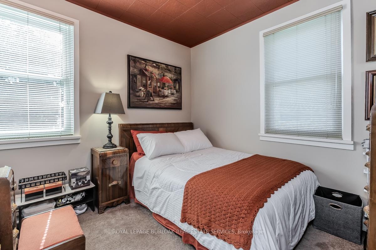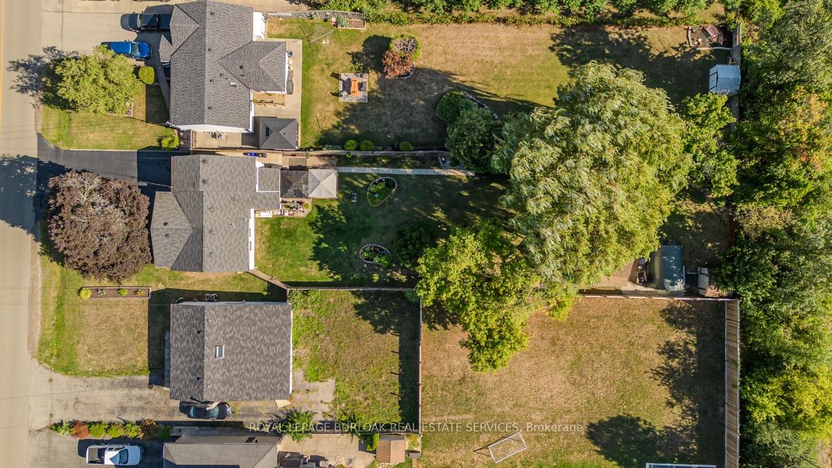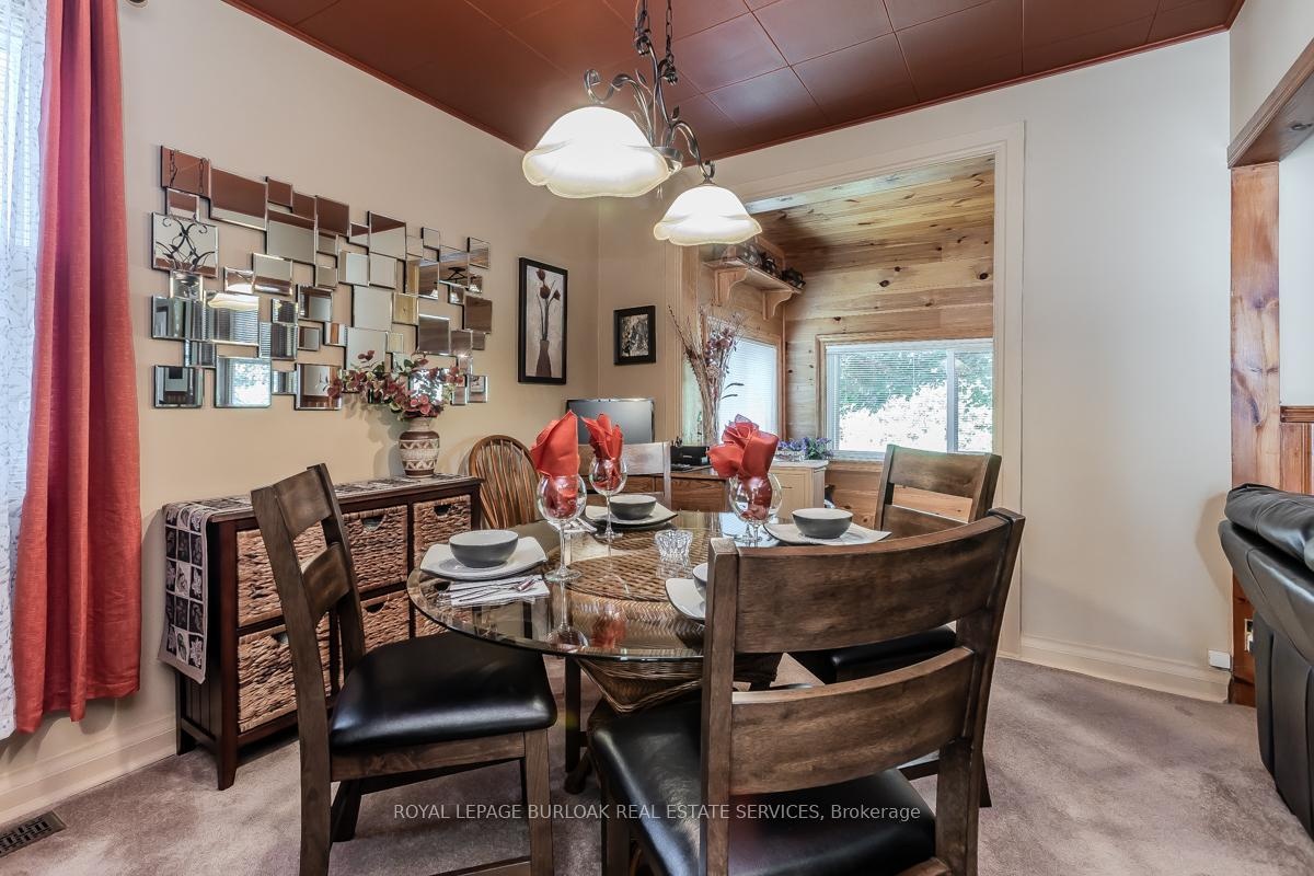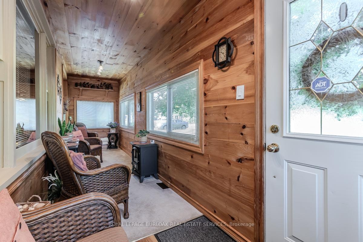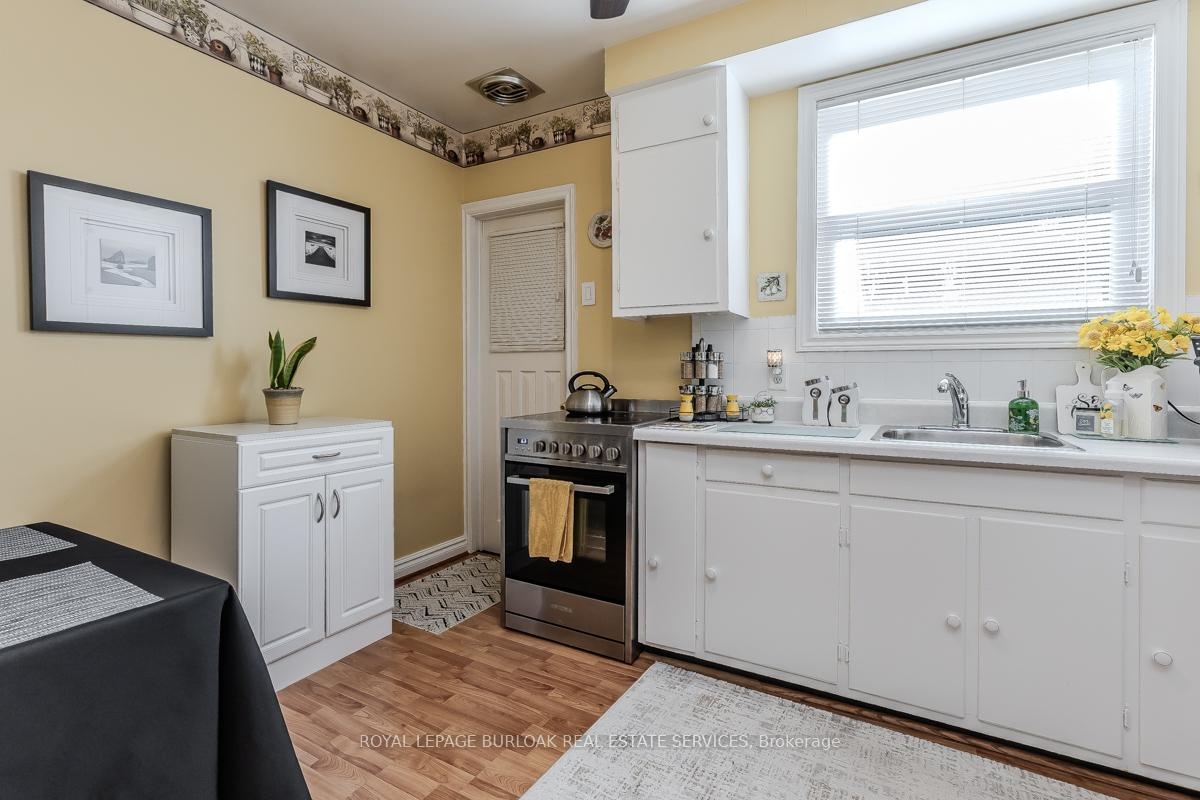Welcome to country-style living at its finest! This charming property offers a rare opportunity to own a spacious 50 x 235 ft lot, surrounded by picturesque farmland while still being only minutes from the QEW, community centres, schools, libraries, and everyday amenities. With its cozy, cottage-like feel and endless potential, this home is the perfect canvas for families looking to renovate and design their dream retreat. The lot itself is truly the star of the show. Mature trees, lovely gardens, and a newer 6x6 fence create privacy and tranquility, while four backyard sheds and a canopy provide plenty of storage and workspace. The expansive green space is versatile and ready for you to create the backyard oasis you've always envisioned. Parking is plentiful with space for four vehicles plus an attached insulated garage, currently used for storage, that could be converted into additional living space. Step inside and you're greeted by a cozy sunroom wrapped in warm wood accents, instantly evoking cottage vibes. The open-concept dining and living area offers great flow, highlighted by wood wainscoting and a large window that fills the space with natural light. A spacious eat-in kitchen with stainless steel appliances, ample cabinetry, and tile backsplash makes for a functional hub of the home. Main-floor living is possible with a bedroom and 3-piece bath featuring a walk-in tile shower with built-in bench ideal for in-laws or single-level convenience. A mudroom with laundry provides easy access to the backyard and side yard. Upstairs, you'll find two additional well-sized bedrooms, perfect for growing families. With its unbeatable lot size, rural charm, and proximity to city conveniences, this property offers the best of both worlds. Bring your vision and transform this cozy cottage-style home into the country escape your family has been dreaming of.