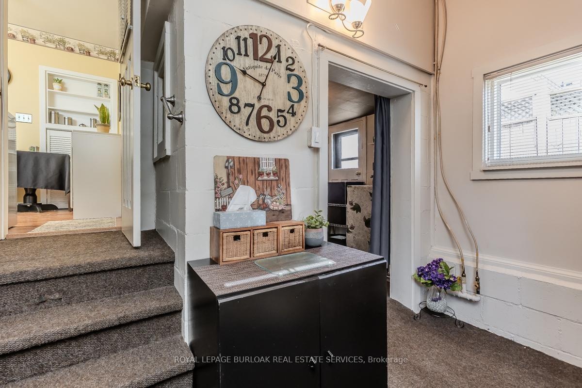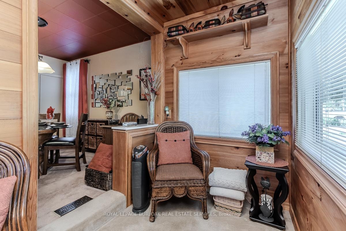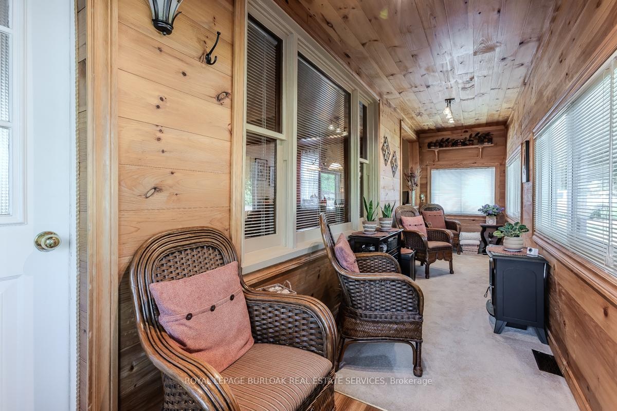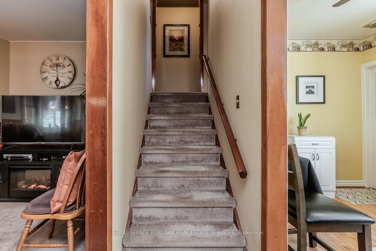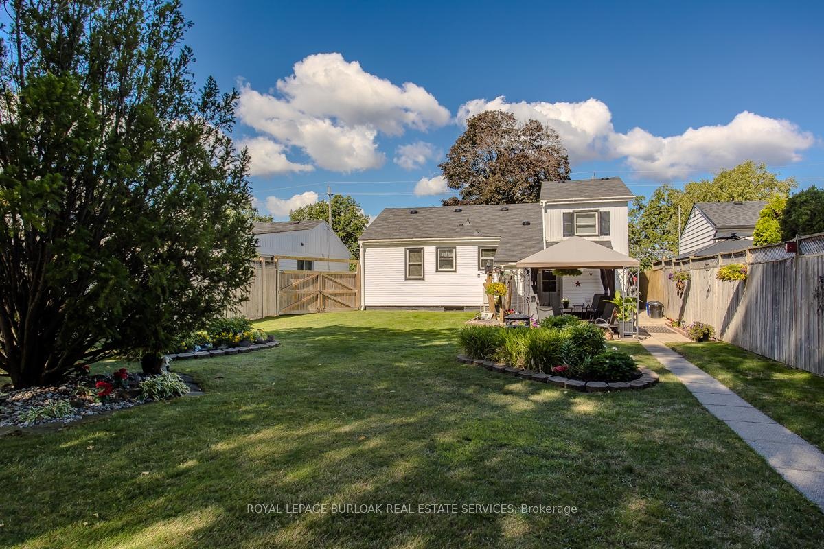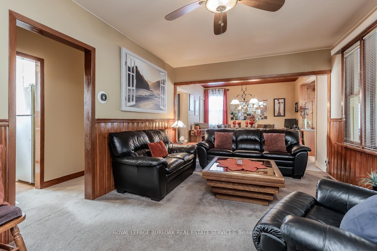 Welcome to country-style living at its finest! This charming property offers a rare opportunity to own a spacious 50 x 235 ft lot, surrounded by picturesque farmland while still being only minutes from the QEW, community centres, schools, libraries, and everyday amenities. With its cozy, cottage-like feel and endless potential, this home is the perfect canvas for families looking to renovate and design their dream retreat. The lot itself is truly the star of the show. Mature trees, lovely gardens, and a newer 6x6 fence create privacy and tranquility, while four backyard sheds and a canopy provide plenty of storage and workspace. The expansive green space is versatile and ready for you to create the backyard oasis you've always envisioned. Parking is plentiful with space for four vehicles plus an attached insulated garage, currently used for storage, that could be converted into additional living space. Step inside and you're greeted by a cozy sunroom wrapped in warm wood accents, instantly evoking cottage vibes. The open-concept dining and living area offers great flow, highlighted by wood wainscoting and a large window that fills the space with natural light. A spacious eat-in kitchen with stainless steel appliances, ample cabinetry, and tile backsplash makes for a functional hub of the home. Main-floor living is possible with a bedroom and 3-piece bath featuring a walk-in tile shower with built-in bench ideal for in-laws or single-level convenience. A mudroom with laundry provides easy access to the backyard and side yard. Upstairs, you'll find two additional well-sized bedrooms, perfect for growing families. With its unbeatable lot size, rural charm, and proximity to city conveniences, this property offers the best of both worlds. Bring your vision and transform this cozy cottage-style home into the country escape your family has been dreaming of.