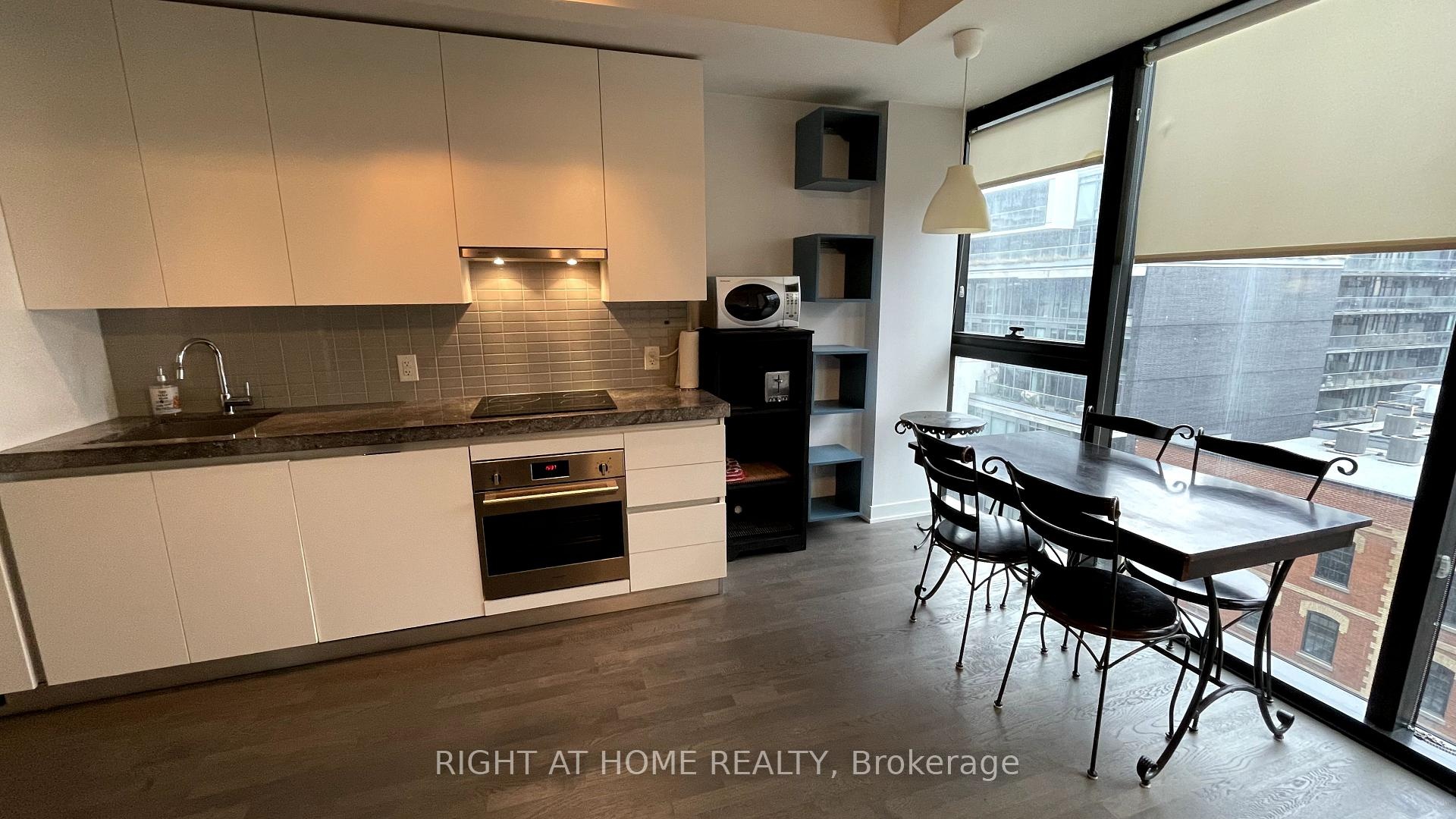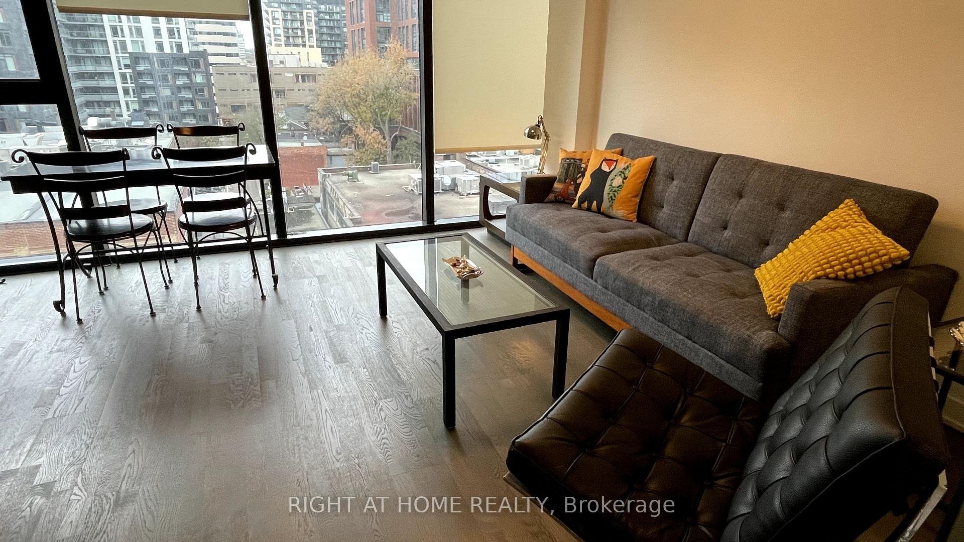 Fully furnished Premium Jr. 1 Bedroom Condo Apt With Functional Layout. Located In The Heart Of King West Village. 9 Ft Exposed Concrete Ceilings W/Lots Of Closet Space And Storage. Impressive Floor To Ceiling Glass Windows. European Designed Contemporary Kitchen With Sleek Finishes, Granite Counters. Includes 1 locker.Ideal for single occupant. Available November 1.