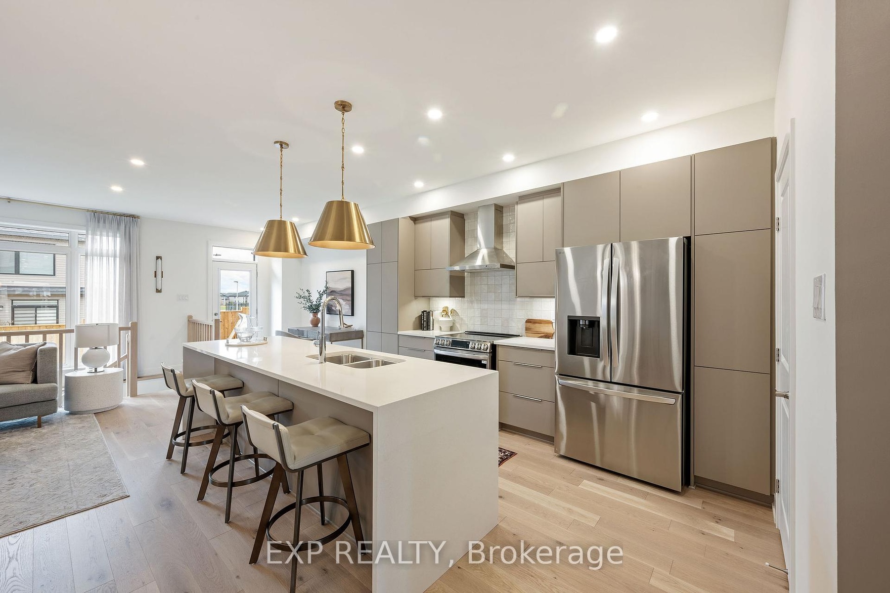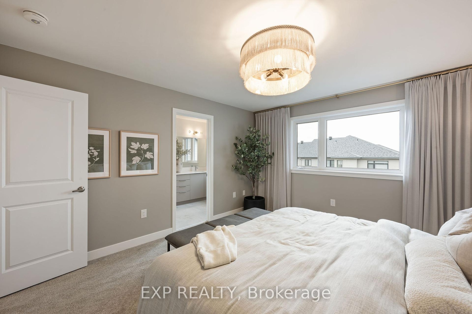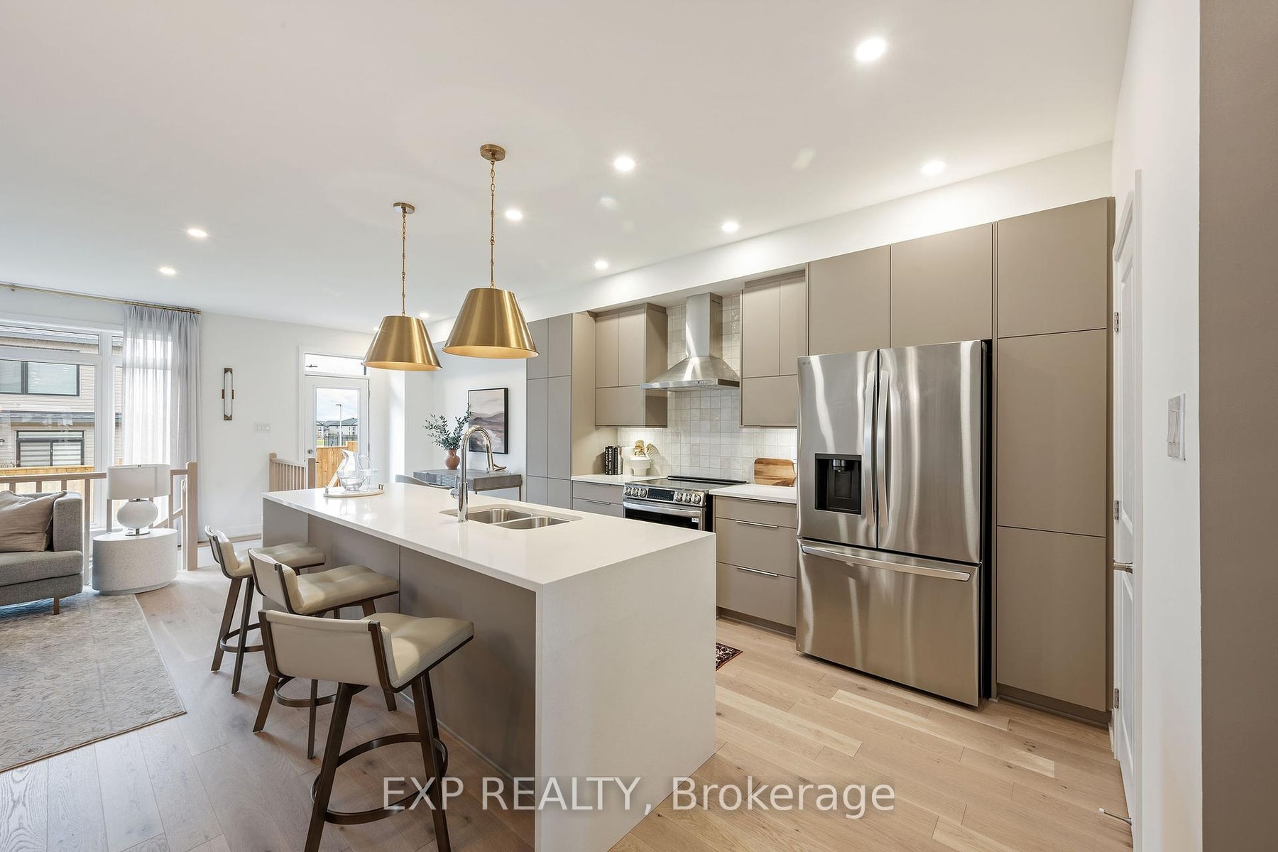 Welcome to this stunning brand-new 3-bedroom luxury townhome located in the neighbourhood of Barrhaven's Heritage Park. With 9ft ceilings on the main floor, this home showcases high-end finishes throughout, including upgraded hardwood flooring on the main level, smooth ceilings, pot lights, and a large window at the back of the house to allow loads of natural light to flow into the home. The open kitchen features upgraded quartz countertops, sleek tile backsplash, brand-new luxury stainless steel appliances, and a large island with an extended breakfast bar. For added convenience and organization, a large walk-in pantry with abundant shelving is located adjacent to the kitchen. On the second level, you'll find a generously sized primary bedroom, complete with a walk-in closet and a luxury primary ensuite with a double-sink vanity, quartz countertops, a walk-in shower, and built-in shelving. All bathrooms feature upgraded tile floors and upgraded quartz countertops for a consistent, high-end look. The staircase at the back of the house leads to a large, finished family room in the basement, providing ample extra living space for movies, games, or quiet relaxation. With the modern linear electric fireplace, there is added warmth to the space for winter days or nights. Added features include central air conditioning, a humidifier on the furnace, and an HRV system for year-round comfort. Ideally located near schools, shopping, and transit, this home offers a lovely blend of style and comfort. Interior photos are of a model home; finishes, paint, appliances, light fixtures, and upgrades vary.