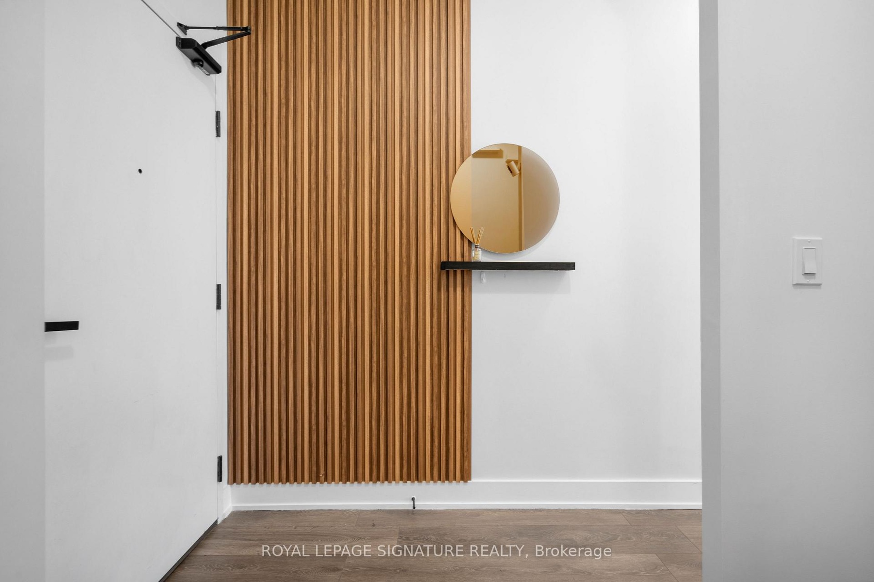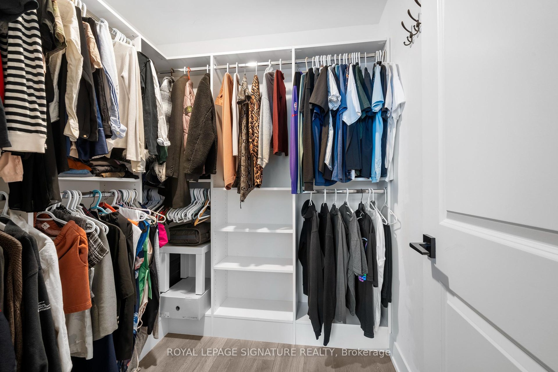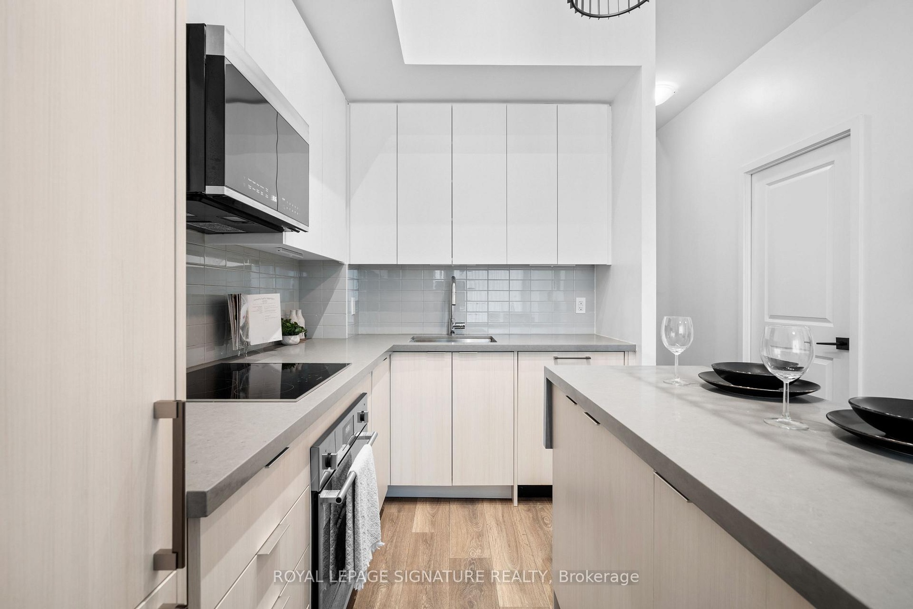 Welcome home! This stunning and spacious 1 BR + Den condo offers 675 sq. ft. of beautifully upgraded interior space, plus an additional 30 sq. ft. balcony overlooking the lush rooftop gardens a perfect place to unwind. Step inside to soaring 11-ft ceilings and custom renovations such as the feature walls in both the living and bedrooms & incredible light fixtures that elevate this suite to a new level of sophistication. The contemporary kitchen boasts quartz countertops, upgraded paneled stainless steel appliances, and a sleek, thicker 2 countertop ideal for cooking and entertaining. Recent upgrades include frameless mirror bypass doors, modern roll blinds with blackout in the bedroom, upgraded interior doors, and a front-loading washer/dryer. The unit also offers a generous Den space that fits a single bed and was used as a bedroom. Freshly painted and move-in ready, this suite also includes a locker and underground parking space. Beyond your front door, indulge in resort-style amenities, including a seasonal outdoor pool, state-of-the-art gym, yoga studio, sauna, pet wash station, party/meeting rooms, a theatre, wine-tasting room, ping pong room, kids playroom, and more! Located in an unbeatable location, you're steps from Walmart, Superstore, LCBO, restaurants, shops, and public transit right at your doorstep. Don't miss this opportunity