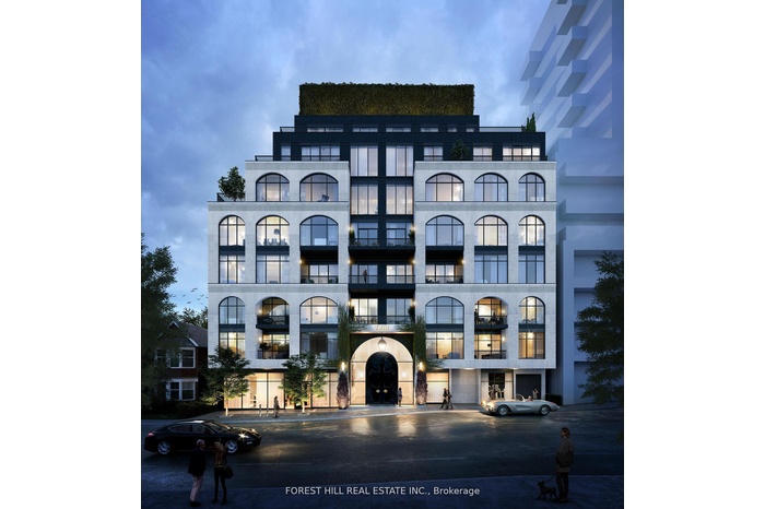 WELCOME TO THE RHODES - A NEW YORK-INSPIRED, LUXURY BOUTIQUE RESIDENCE with only 25 private suites, ideally situated at the crossroads of Forest Hill, Cedarvale, and The Upper Village. Designed by Ali Budd Interiors and developed by Blackdoor Development Company, The Rhodes is the only building of its kind in the area - a rare opportunity to own in a residence that combines tranquility, sophistication, and white-glove service. This 2-bedroom + den, 3 suite spaces 2,873 sq.ft. of interior living space plus 372 sq.ft. of outdoor terraces, offering an east-facing balcony shared by both bedrooms with sweeping, tree-line views of Forest Hill, and a west-facing terrace off the living area complete with gas BBQ connection, landscaping, and seasonal florals. Direct elevator-to-suite access opens into a private rotunda and foyer leading to a grand, open layout with 10' ceilings and architectural windows framing serene, park-like vistas reminiscent of Central Park. This residence is move-in ready, and available for immediate possession. Interiors feature 7" wide-plank engineered hardwood, quartz countertops, a full Gaggenau appliance package, 7" baseboards, 8' solid core doors, heated ensuite floors, and curbless showers. The den offers flexibility as a library, home office, or guest space. Residents enjoy concierge service by The Forest Hill Group, a fitness and mobility centre, rooftop terrace, pet spa, boardroom, and a grand front entrance that sets the tone for the refined lifestyle within. A boutique residence like no other - make The Rhodes your forever home.