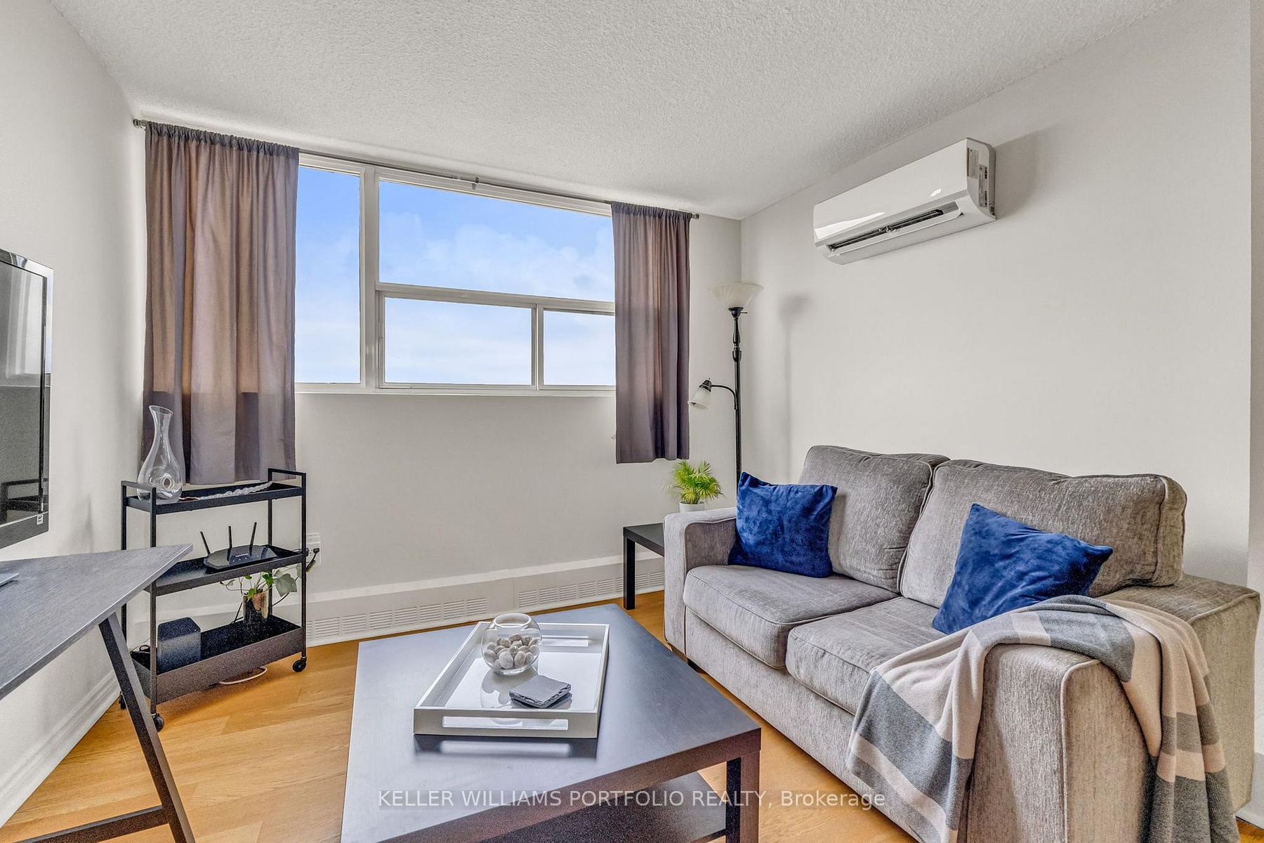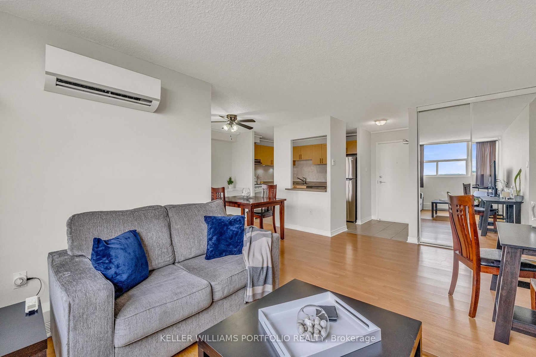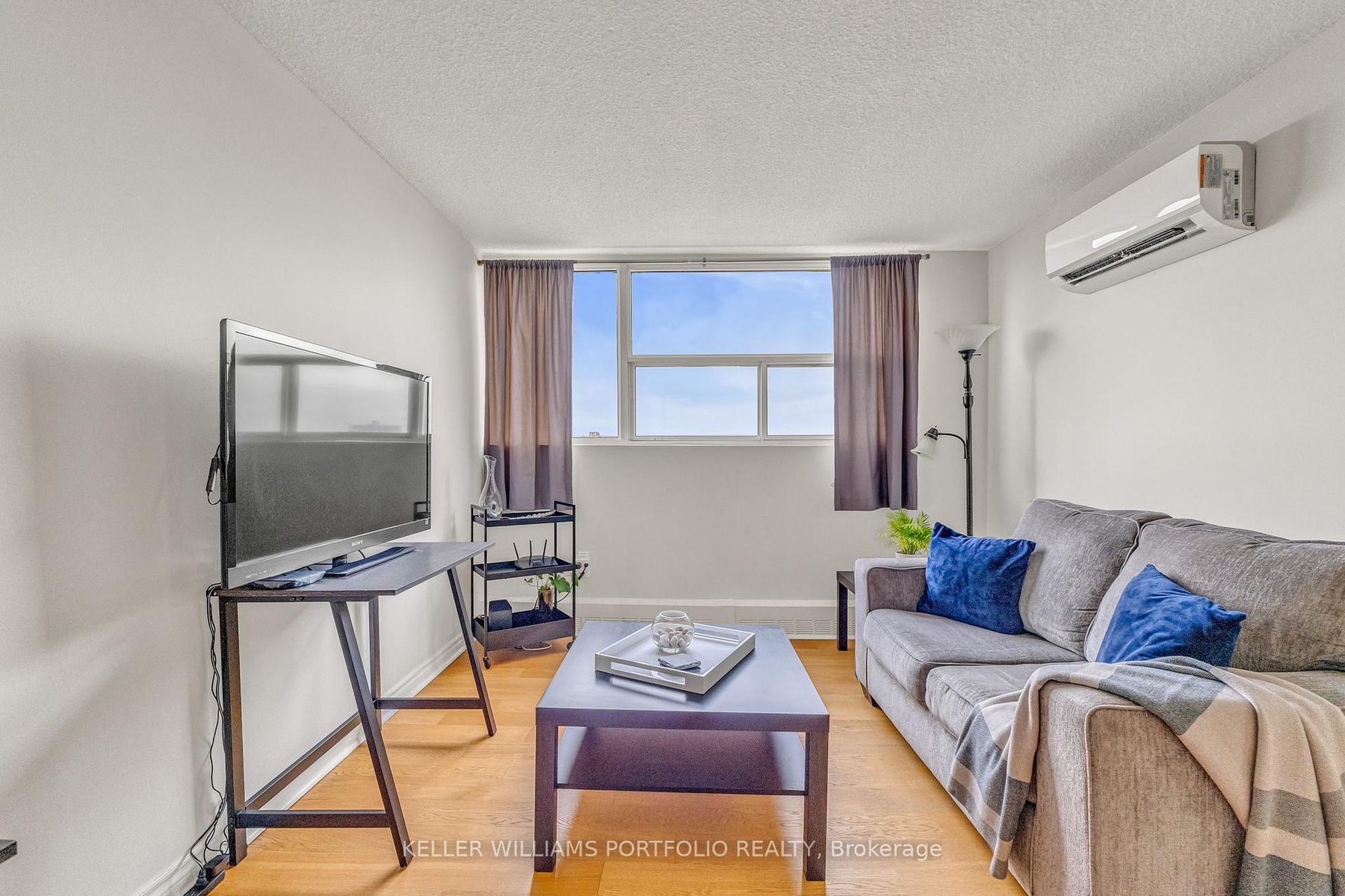 Meticulously maintained 2-bedroom suite offering comfort, convenience, and exceptional value in the heart of Meadowvale. This bright, carpet-free end unit features large windows, a private balcony with sunset views and built-in shelving throughout. The open concept living and dining areas are great for everyday function & entertaining, while the kitchen features updated appliances & lots of storage space. Two spacious bedrooms located down the hall offer complete privacy for rest & relaxation. The ensuite laundry/storage room provides added convenience with a full-size washer/dryer combo unit and closet organizers. Stay comfortable year-round with an upgraded, wall-mounted AC unit complete with heat pump & remote. Residents enjoy a full range of amenities including a gym, sauna, party room, games room, outdoor pool, tennis court, basketball nets, playground, bike room and BBQ area, while maintenance fees cover all utilities: heat, hydro, water, and 2 side-by-side underground parking spots. Unbeatable location walk to schools, parks, Lake Aquitaine, Meadowvale Community Centre, Meadowvale Town Centre and transit hub. Steps to scenic walking and biking trails, with easy access to both Meadowvale and Lisgar GO Stations, 401/407, Erin Mills Town Centre, and Credit Valley Hospital. Walking distance to a variety of places of worship. A fantastic opportunity for first-time buyers, downsizers, or investors!