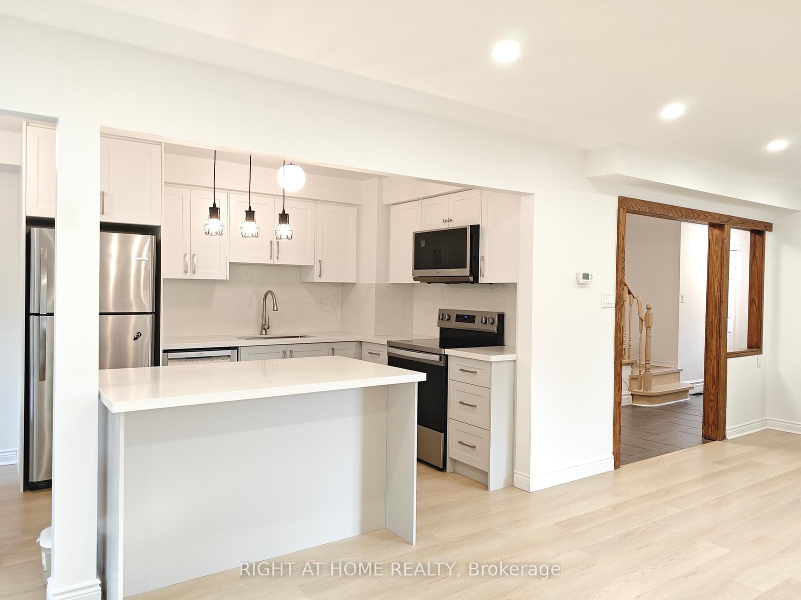 Located in The Sought After Glen Abbey Community. This Beautiful End-Unit Townhome Feels Like a Semi and is Completely Updated From Top to Bottom. The Kitchen is Renovated with Custom Cabinets, a Central Island and a Breakfast Area. Pot Light in Living and Dining Area. Two Bathrooms are Totally Renovated with 3 and 4 Pieces Each. Updated Powder Room. Freshly Painted Throughout. New Roof. Four Car Private Driveway. As the Property is an End-Unit, The Private Backyard is Incredibly Spacious with Beautiful Brickwork and a Well Kept Patio. Ample and Dedicated Space for Gardening, Gathering, and Relaxing.Surrounded by Top-rated Elementary and High Schools, Contemporary Shopping Centres, and Parks. Just Minutes to Hahwav, Go Station, Transit. This Home is Move-in Ready.