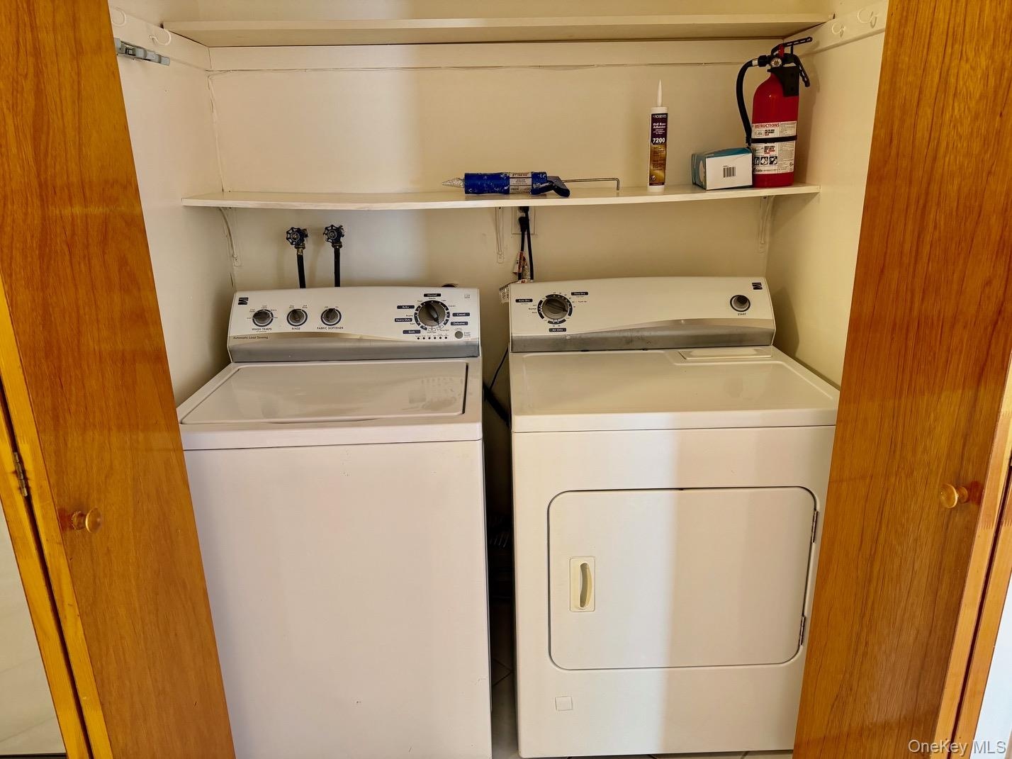 - Laundry room featuring light tile patterned floors and washing machine and dryer