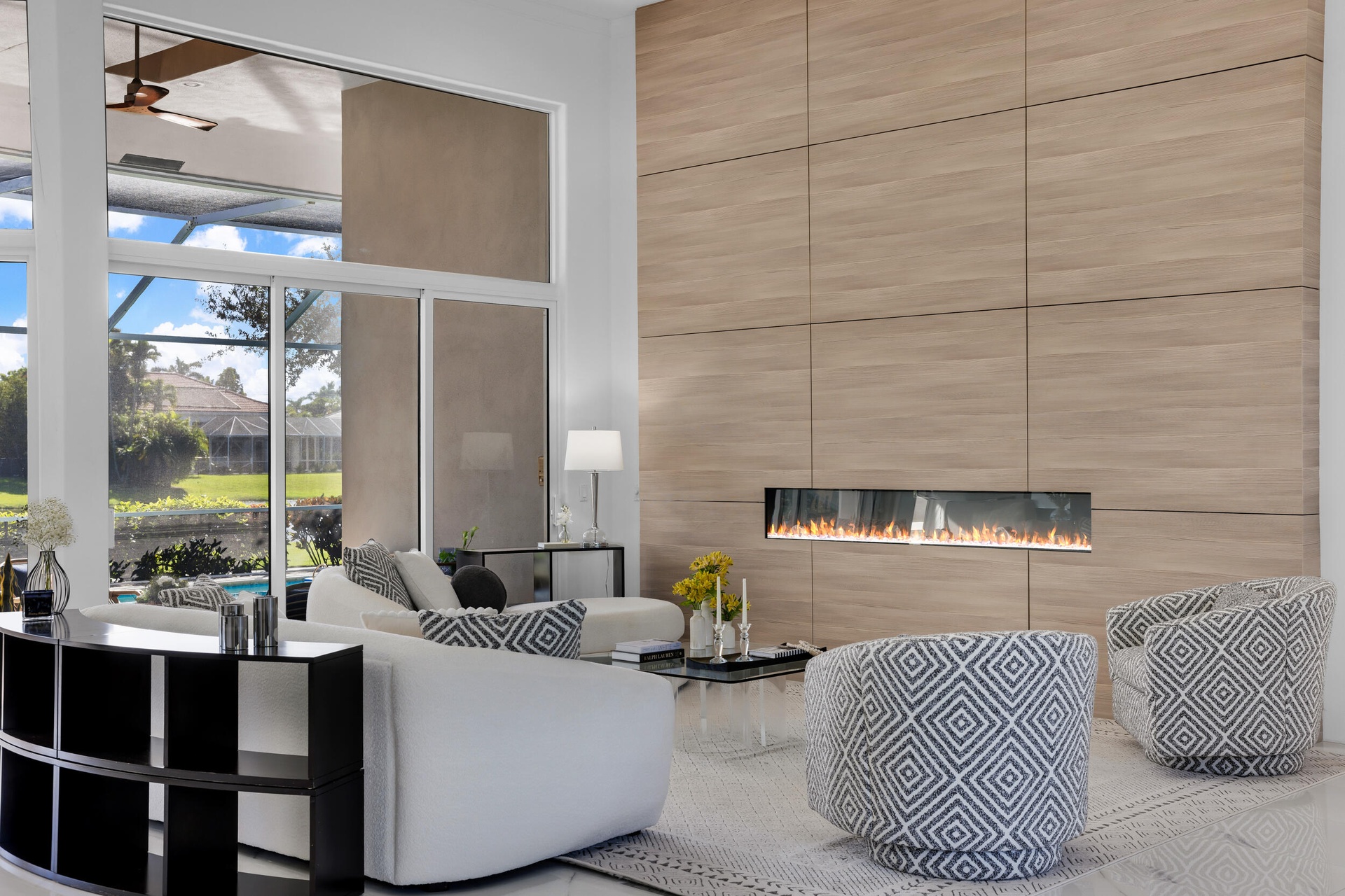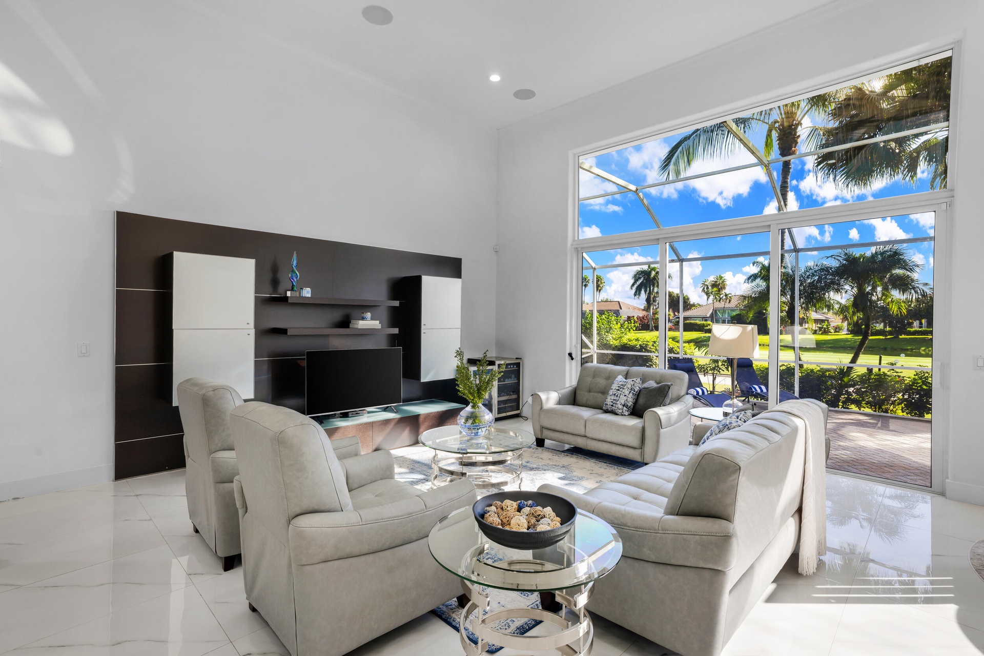 Welcome to this stunning 4BR/3.1BA home with a large office right at the entrance in the exclusive Stonebridge Country Club. Offering 3,729 sq ft of living space on a 12,502 sq ft waterfront lot with a private pool, this residence creates a powerful first impression the moment you enter. Soaring ceilings and walls of glass fill the living areas with natural light, framing panoramic views of the golf course, shimmering lake, and resort-style pool!The floor plan is thoughtfully designed for both comfort and versatility. A spacious bath serves two bedrooms, while another bedroom features an ensuite cabana bath, ideal for guests or flexible living. The primary suite is a private retreat with dual walk-in closets, an oversized spa-like bathroom, and tranquil views of the pool and sun