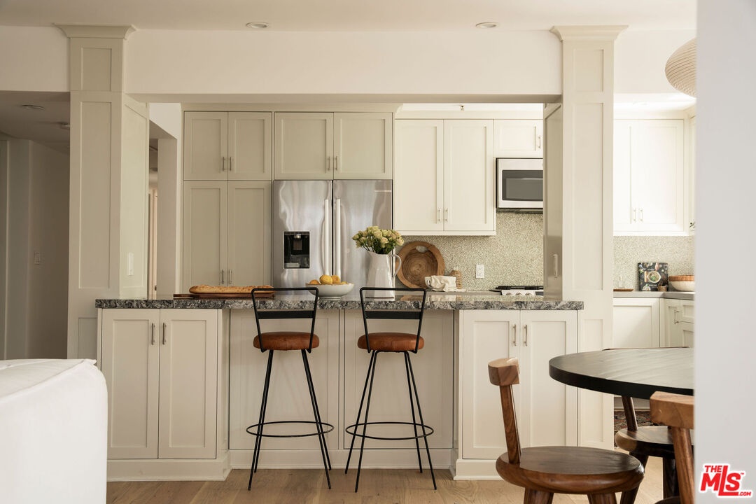 DescriptionTucked away on a quiet block, yet just a short stroll to the beach and prime Main Street, this Ocean Park condo captures the bright and airy spirit of Santa Monica living. The single-level home centers on an open concept living space where natural light pours in and connects seamlessly to a private patio that carries in the ocean breeze. Recent updates bring a clean, modern feel, with new wood floors throughout, freshly painted and skim-coated walls, and updated lighting. The kitchen is both functional and inviting, with custom cabinetry, stainless appliances, and a generous center island that makes cooking and entertaining effortless. The bedrooms are well sized, with the primary offering a walk-in closet and a beautifully remodeled bath featuring a double vanity and a spacious walk-in shower lined with pebble stone detail. Two additional bedrooms are served by a stylish common bath with a deep soaking tub, creating a thoughtful balance of comfort and convenience. Quiet and spacious, the home lives more like a house, with an abundance of storage that adds to its sense of ease. Set within a well-maintained building, the residence also includes two side-by-side parking spots for convenience. With its thoughtful layout, beautiful light, and unbeatable proximity to the beach, Main Street, and the renowned Santa Monica Farmers Market, this is coastal living at its best.Amenities- Balcony