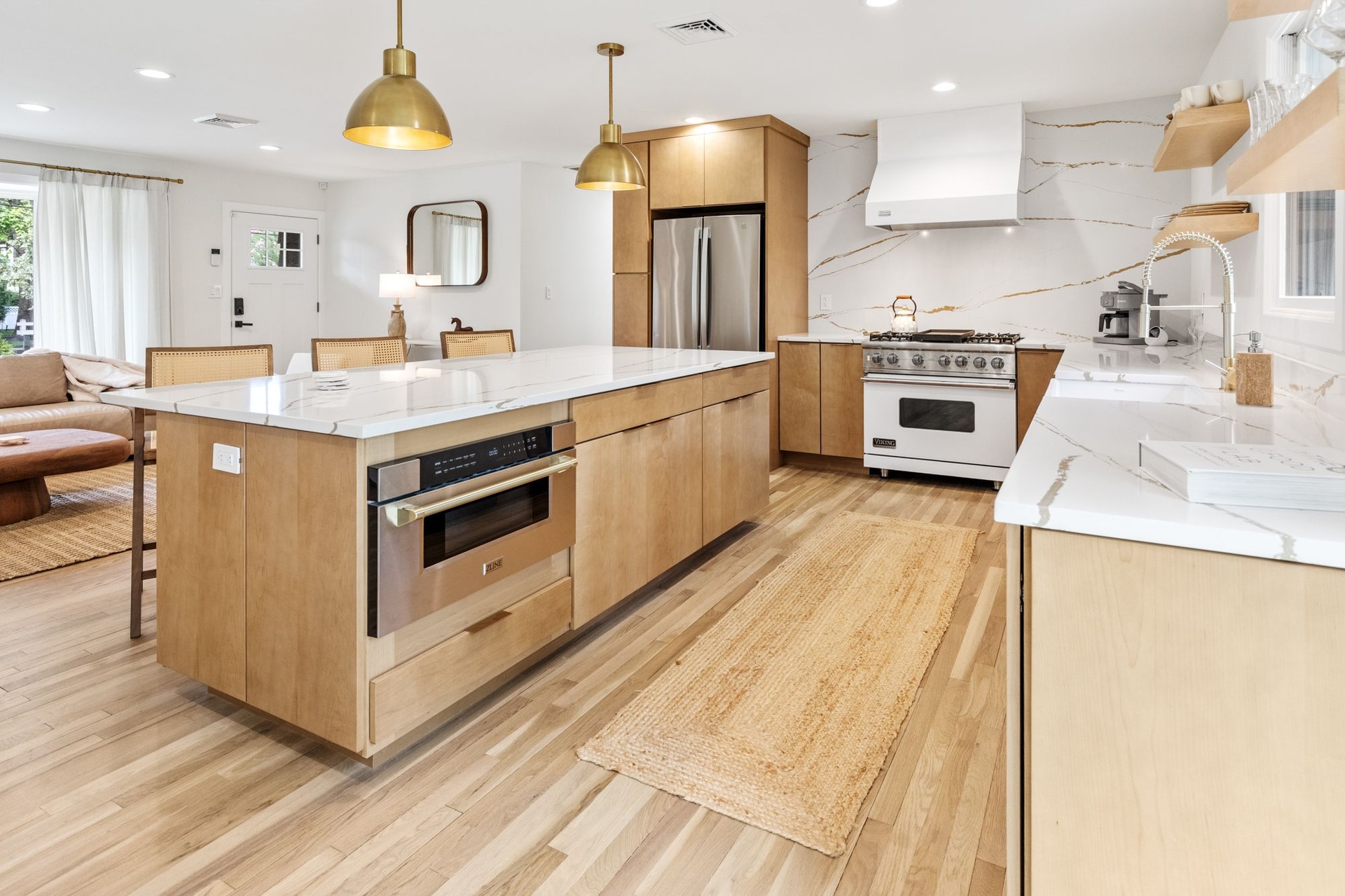Upon entrance enjoy this open floor plan with beautiful hard wood flooring through out. The sun-filled living room flows seamlessly into a custom eat-in kitchen outfitted with top-of-the-line Viking appliances. Entertain effortlessly with a built-in bar, smart TVs , and a spacious layout designed for both relaxation and hosting.