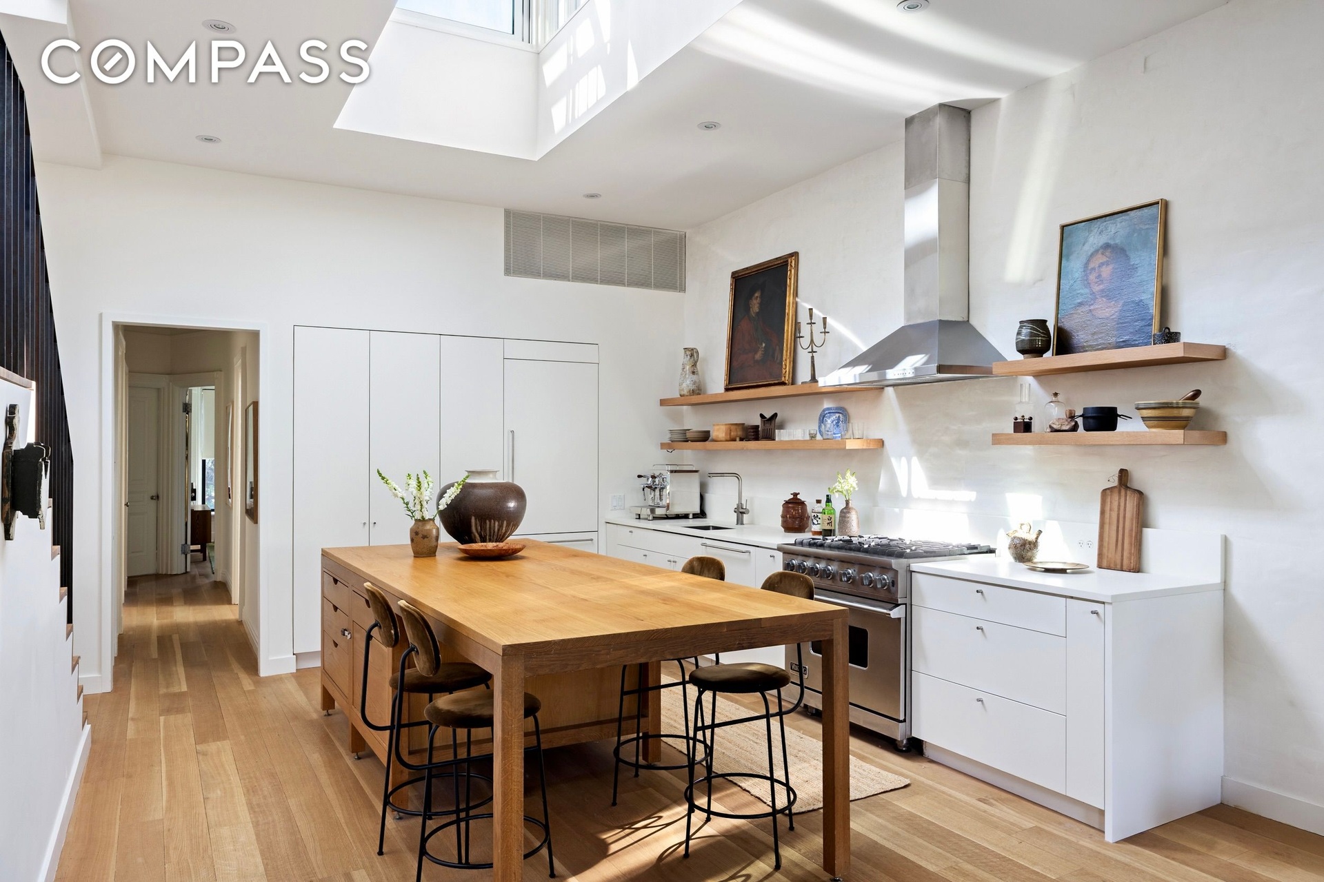 There, you’ll find this home’s crown jewel: a truly transporting 800-square-foot private roof deck with mature landscaping and programmable irrigation, where you can enjoy alfresco dining, native gardening, or simply taking in sweeping views of leafy Park Slope, dramatic sunsets or New Year’s fireworks over the Manhattan skyline.