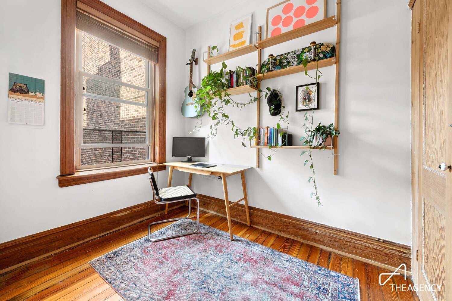 Additional highlights include a windowed bathroom, excellent light throughout, and a quiet interior location within the building. The apartment is located on the 6th floor (walk-up), providing privacy, quiet, and light-well worth the climb.