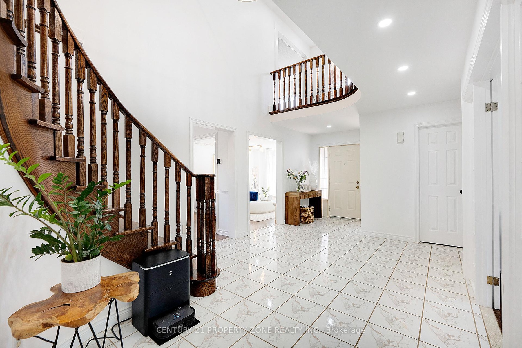 Welcome to this sun-filled, luxurious two-storey detached home nestled in the heart of Oakville's highly sought-after River Oaks community. Situated on an approximately 50 ft wide lot, this elegant residence offers 3,080 sq ft of refined living space, featuring 5 spacious bedrooms, 4 beautifully upgraded bathrooms, and 3-car garage. The main level welcomes you with a grand foyer leading to a formal living room with oversized windows, a separate formal dining room ideal for hosting, and a dedicated home office perfect for remote work or quiet study. The spacious family room features a cozy fireplace and flows seamlessly into the large eat-in kitchen, which includes a center island, abundant cabinetry, and a bright breakfast area with walkout to the backyard, a great setup for everyday living and entertaining. Hardwood flooring and tasteful finishes add warmth and sophistication throughout the level. Upstairs, the primary bedroom suite is a luxurious retreat, complete with a spacious layout, walk-in closet, and an elegant 5-piece ensuite bathroom featuring quartz countertops, double sinks, a soaker tub, and a glass-enclosed shower. The second master ensuite also functions as a junior primary suite, boasting its own private 3-piece ensuite and generous closet space perfect for guests or multigenerational living. Two of the additional bedrooms, well-sized, are connected by a stylish Jack and Jill ensuite, offering privacy and convenience for siblings or family members. The fifth bedroom is generously sized easy access to the shared bathroom. Every bathroom on this level features modern quartz counters, sleek fixtures, and designer finishes. The upper level boasts over $150k in premium upgrades, including hardwood floors throughout and luxurious quartz countertops in all bathrooms. Located in a family-friendly, picturesque neighborhood, River Oaks is home to some of Oakville's top-rated schools, scenic walking trails, lush parks, and more.
