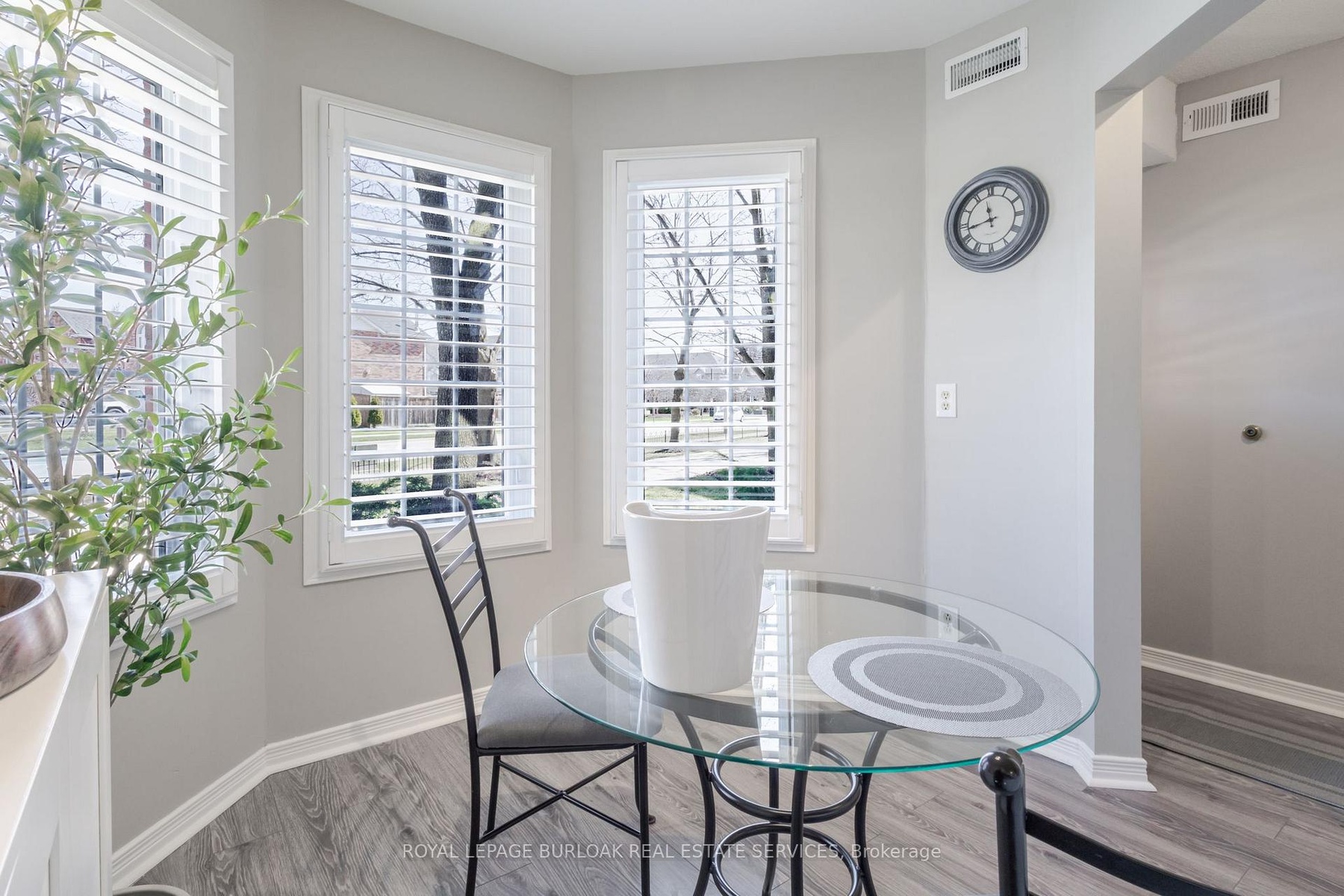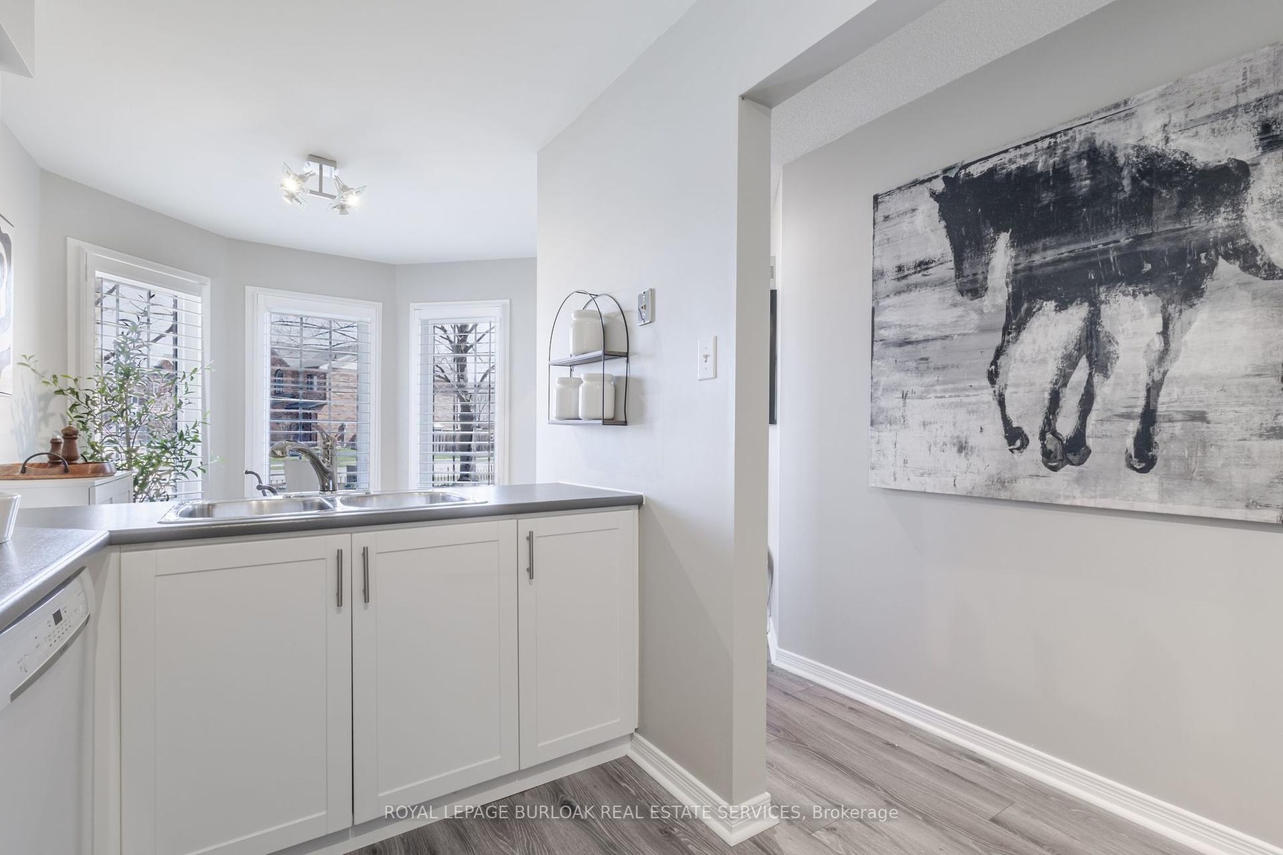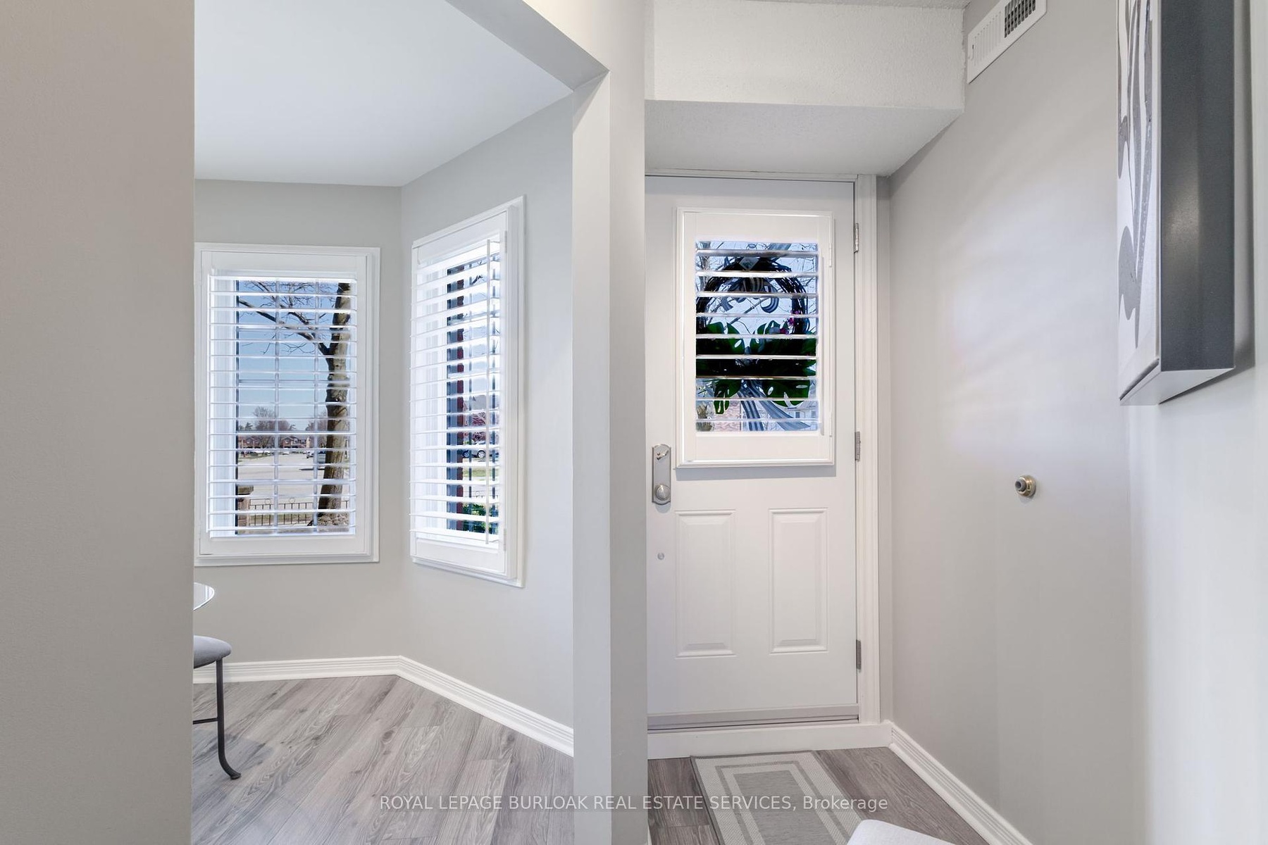 DescriptionSharp Renovated 2-bedroom main floor unit in a 2-Storey Stacked Condo Town Home. Absolutely Move-in Ready Condo with a stunning Garden Terrace. These popular well-managed homes are located in Burlington's Sought-After Headon Forest neighbourhood. Very Bright and Modern, Open Concept Design offering 898 s. f. Professionally Painted in Designer Tones and Carpet Free. The welcoming foyer is adjacent to the bright, recent eat-in kitchen offering numerous cabinets, generous counter space & a spacious dinette area. A comfy seating could be placed in front of the large windows in the sunroom for a perfect people watching set up. Steps from here is the Living-Dining Room well-suited for evenings relaxing at home and for family / friend gatherings in front of the cozy gas fireplace. The convenience of a direct step out to the large and private garden retreat to enjoy a BBQ and summer evenings in nature and quiet tranquility is a bonus. The Primary Bedroom is sizeable with a large closet and overlooks the gardens &terrace. Bedroom 2 is good-sized. This room can also be used as a handy home office or hobby room. Nicely tucked away you will find the 4-piece bathroom and a laundry/utility closet. Renovations/Upgrades Include: Kitchen with beautiful white cabinetry - Ensuite bath: 2023 Stunning, low maintenance tile flooring & shower walls Pot lighting Vanity for storage. Newer laminate flooring in most rooms. Gas furnace & Air Conditioning Unit: 2017. Electric Water Heater: 2017. The complex features great visitor parking. Close to Services: Shopping, Parks and Commuter Routes. Great Value and a Pleasure to View Schedule a viewing todayAmenities- Bath Grab Bars