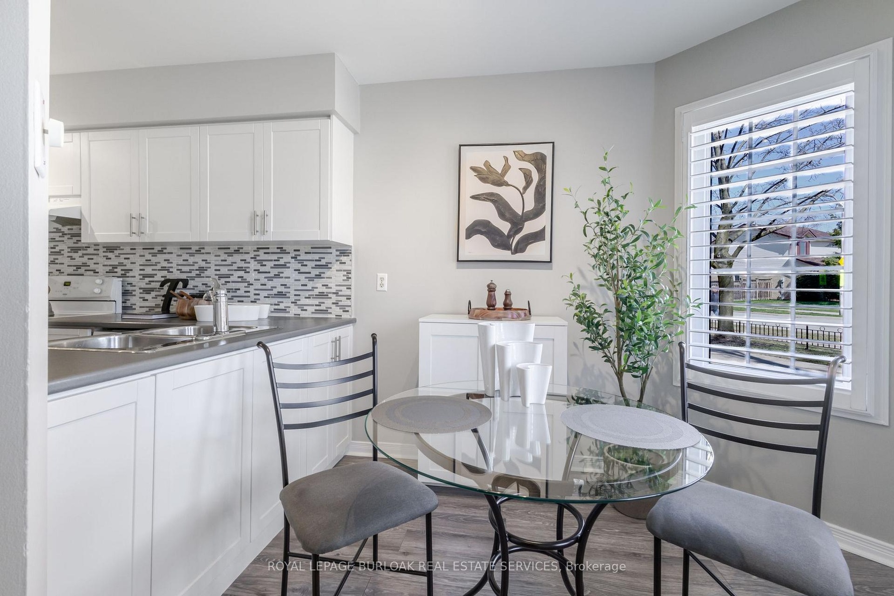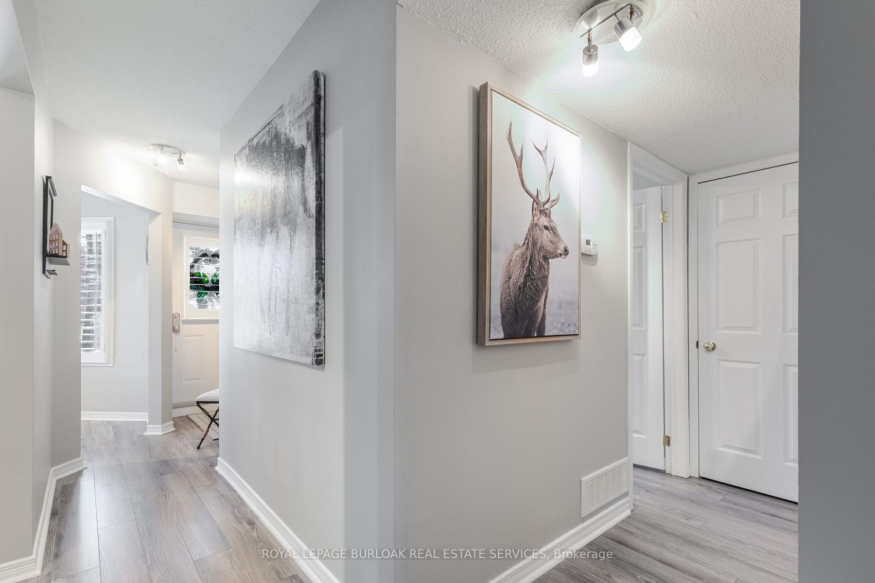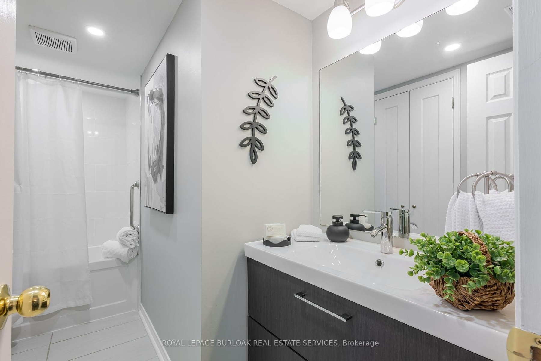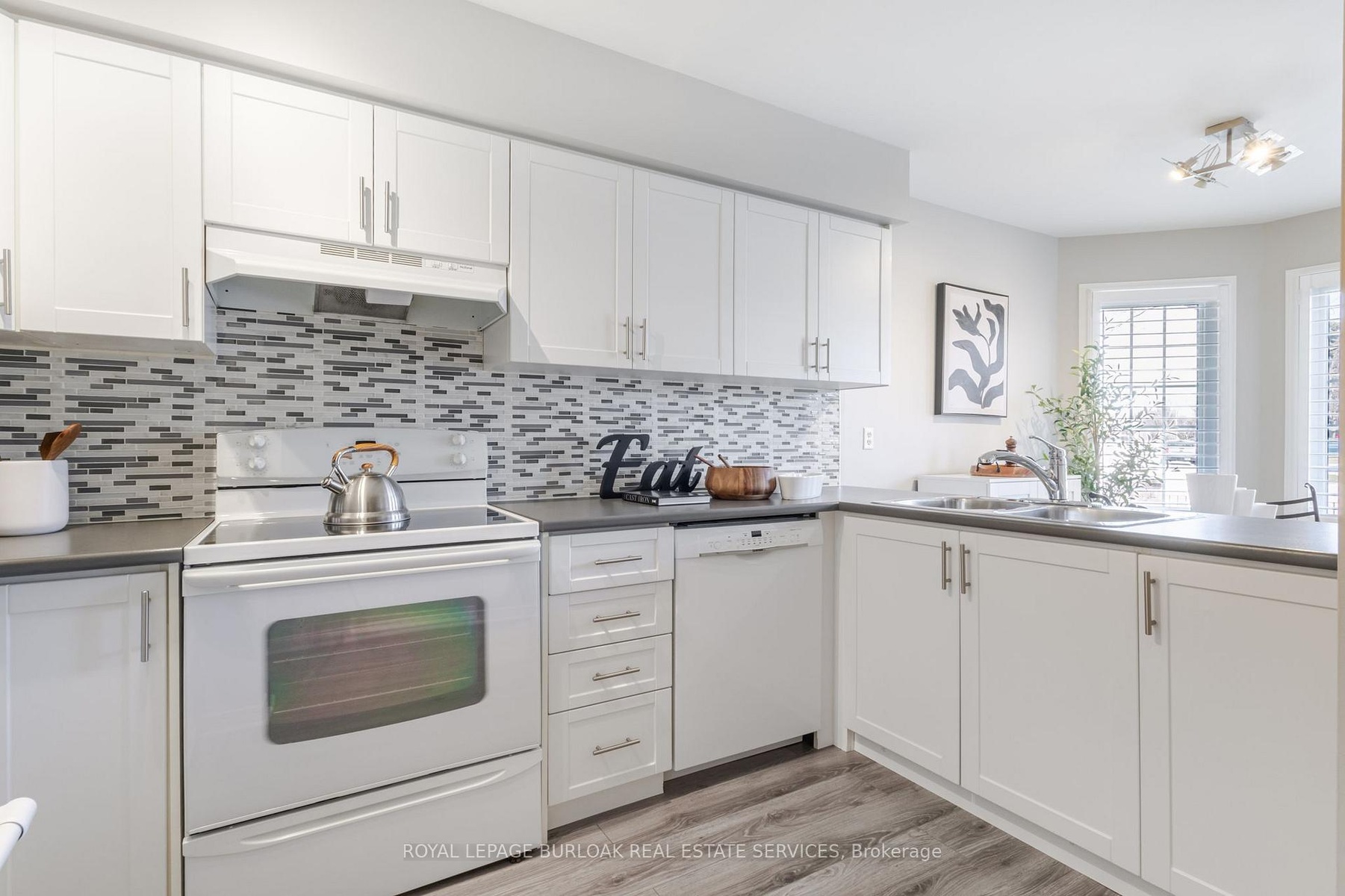 DescriptionSharp Renovated 2-bedroom main floor unit in a 2-Storey Stacked Condo Town Home. Absolutely Move-in Ready Condo with a stunning Garden Terrace. These popular well-managed homes are located in Burlington's Sought-After Headon Forest neighbourhood. Very Bright and Modern, Open Concept Design offering 898 s. f. Professionally Painted in Designer Tones and Carpet Free. The welcoming foyer is adjacent to the bright, recent eat-in kitchen offering numerous cabinets, generous counter space & a spacious dinette area. A comfy seating could be placed in front of the large windows in the sunroom for a perfect people watching set up. Steps from here is the Living-Dining Room well-suited for evenings relaxing at home and for family / friend gatherings in front of the cozy gas fireplace. The convenience of a direct step out to the large and private garden retreat to enjoy a BBQ and summer evenings in nature and quiet tranquility is a bonus. The Primary Bedroom is sizeable with a large closet and overlooks the gardens &terrace. Bedroom 2 is good-sized. This room can also be used as a handy home office or hobby room. Nicely tucked away you will find the 4-piece bathroom and a laundry/utility closet. Renovations/Upgrades Include: Kitchen with beautiful white cabinetry - Ensuite bath: 2023 Stunning, low maintenance tile flooring & shower walls Pot lighting Vanity for storage. Newer laminate flooring in most rooms. Gas furnace & Air Conditioning Unit: 2017. Electric Water Heater: 2017. The complex features great visitor parking. Close to Services: Shopping, Parks and Commuter Routes. Great Value and a Pleasure to View Schedule a viewing todayAmenities- Bath Grab Bars