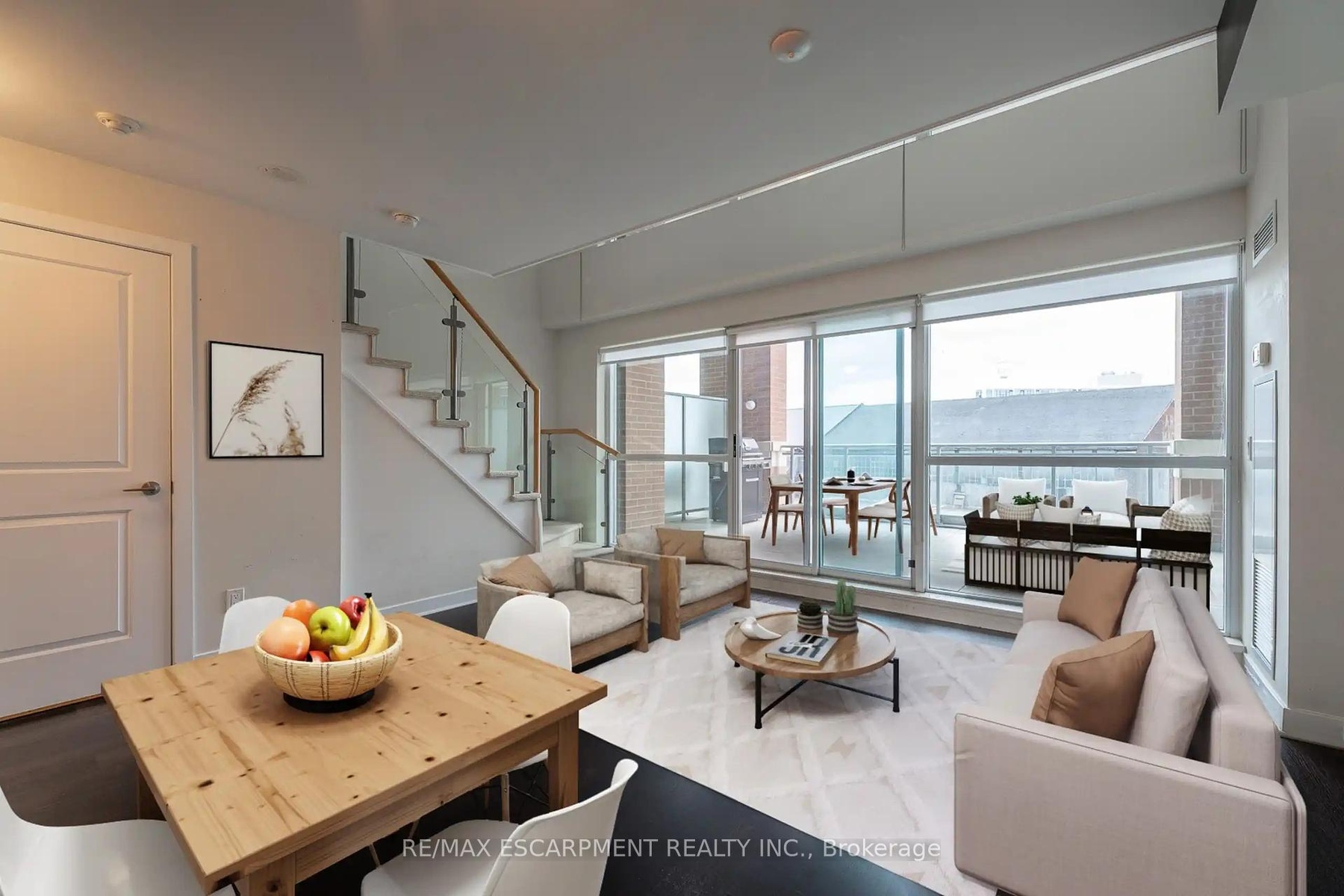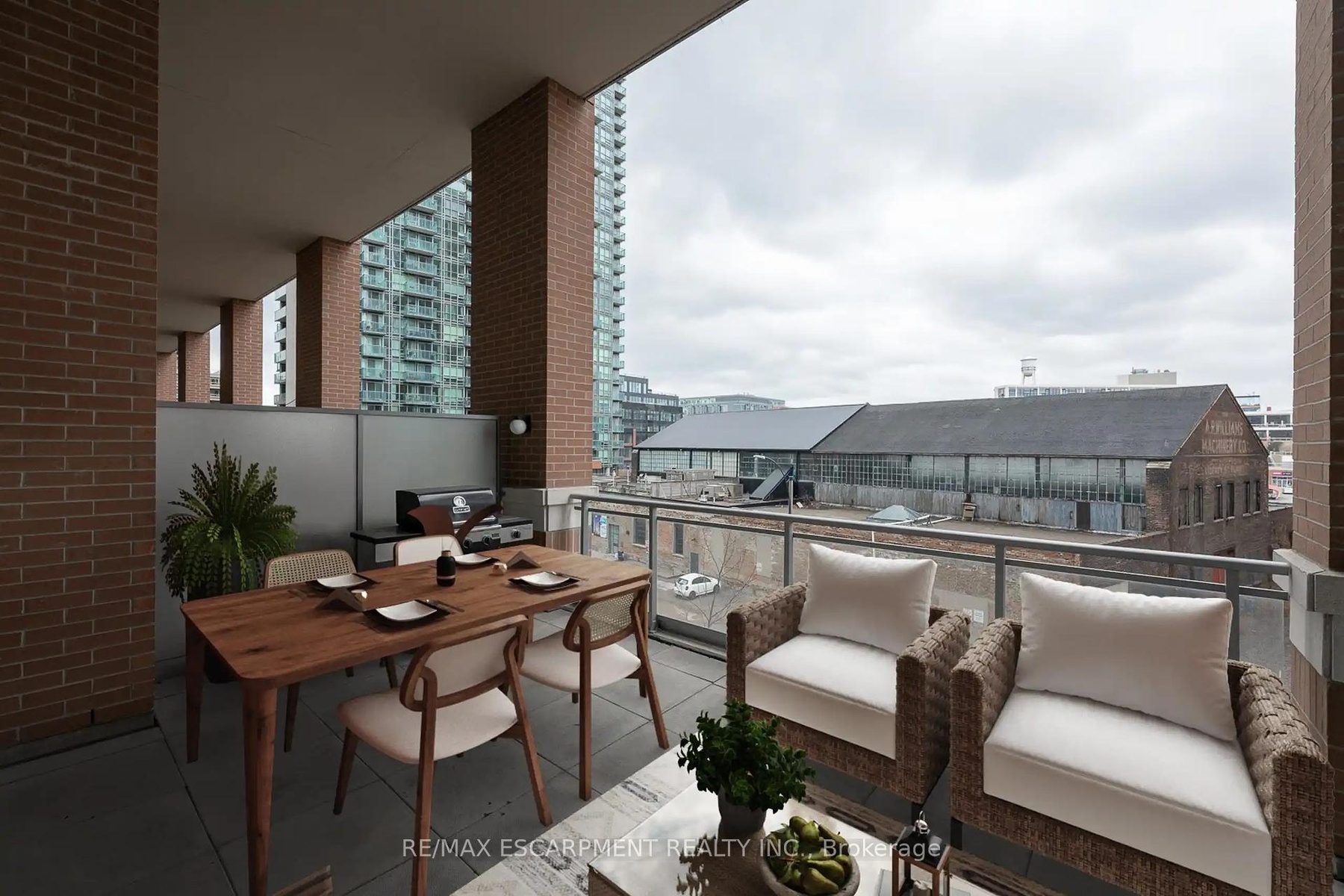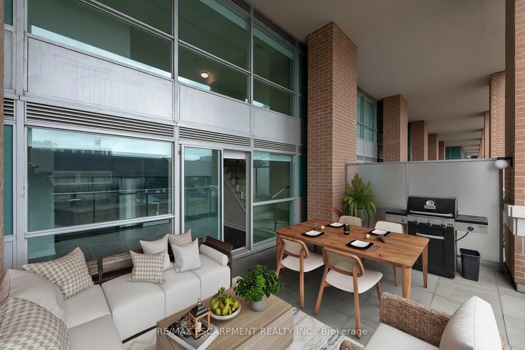 Step into a rare, design-forward loft-style condo in the heart of Liberty Village, where urban charm meets modern elegance. This stunning suite, featuring 1 bedroom and 1.5 bathrooms, offers soaring ceilings and sun-drenched, west-facing living space lead out to an expansive, private terrace of over 200 sq. ft., boasting a clear, unobstructed view - a true outdoor oasis perfect for entertaining or quiet contemplation. The main floor is an entertainers dream. The smartly designed kitchen balances beauty and function. A stylish main floor powder room provides convenience for guests. Upstairs, retreat to your tranquil primary bedroom sanctuary, complete with a 3-piece ensuite bathroom with upper level laundry ! Live the resort life with exclusive building amenities, including an Indoor Pool & Jacuzzi, Fitness Room, Theatre & Billiard Room, Cyber Lounge and BBQ Area. Just start packing !