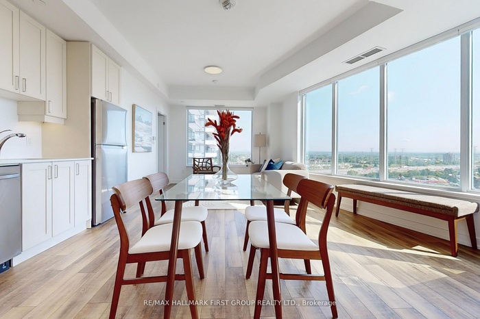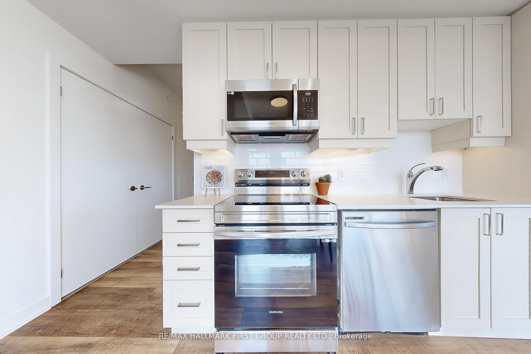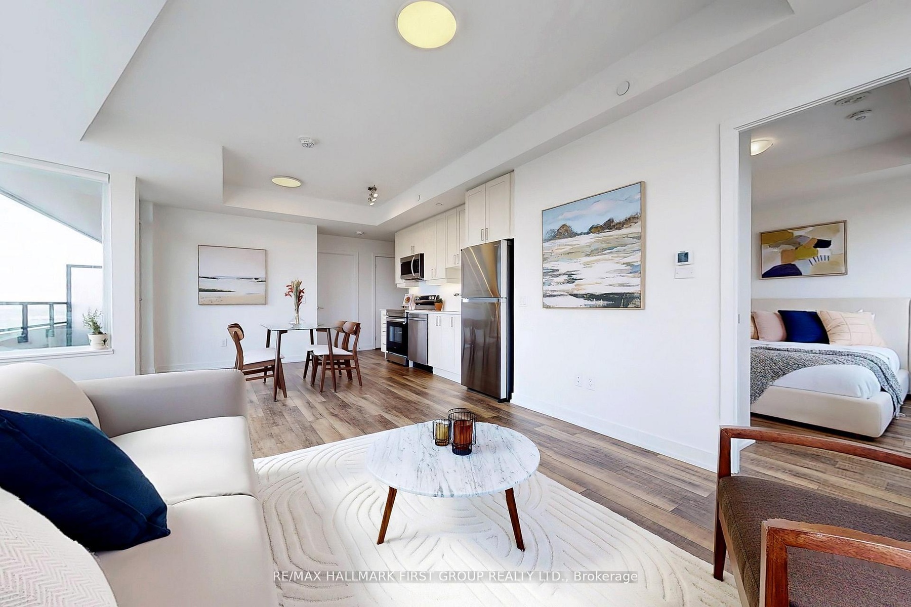 Step into luxury and convenience with this beautifully upgraded 2-bedroom + den condo, designed for modern urban living. Featuring vinyl flooring, 9-foot smooth ceilings throughout, a stylish upgraded kitchen with quartz countertops, premium cabinetry, and under-cabinet LED valance lighting, upgraded subway tiles, porcelain floor tiles, quartz counter tops in both washrooms and additional lighting in washrooms and living room, this unit effortlessly combines functionality and elegance. Enjoy the added convenience of a parking spot in the garage and indulge in a wealth of resort-style amenities. From a fully equipped fitness center and yoga studio to a rooftop outdoor swimming pool, garden terrace, BBQ lounge, party room, and guest suite. Every detail is crafted to elevate your lifestyle. Ideally located just minutes from Hwy 401, GO Transit, major shopping centers, and the picturesque Frenchman's Bay, this property offers the best of both worlds: sophisticated city access and everyday comfort. Don't miss this rare opportunity to live where luxury meets lifestyle! The total area square footage of 1,032 includes the balcony.