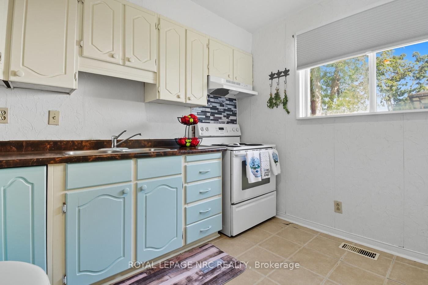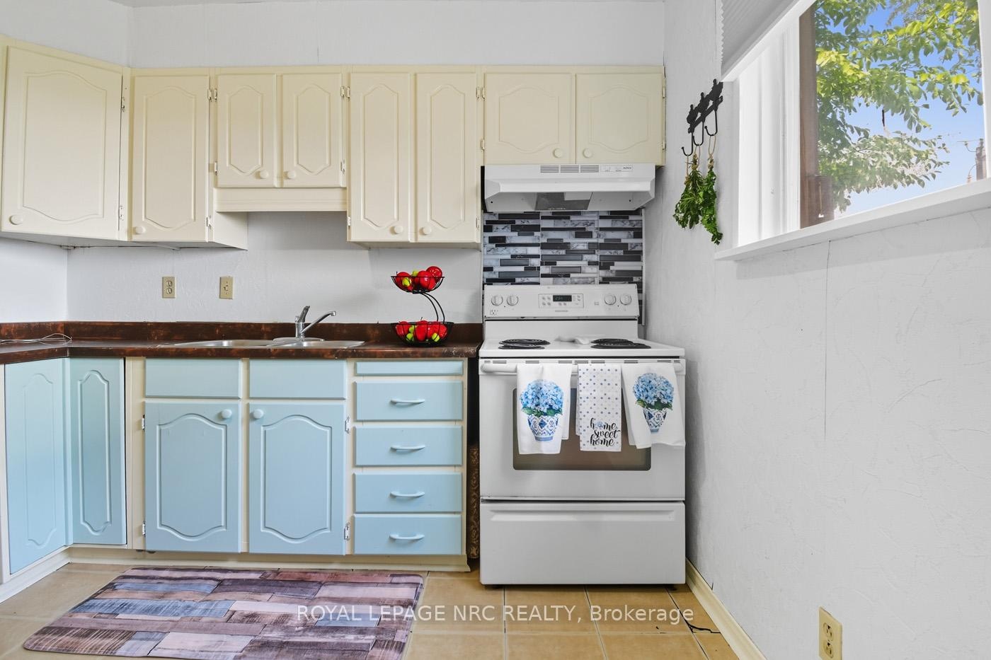 Home sweet home. This sweet, well-kept home on a corner lot in the heart of St. Catharines is ready to move in. New deck, new laminate floors, and a beautiful, low-maintenance garden. Rustic and cozy family room features brick walls, washed-wood ceiling with a brick, corner hearth with wood-burning stove. Extra large primary bedroom (Originally 3 bedroom, could be converted back). The bright kitchen has breakfast bar and easy access to the deck for grilling and relaxing. 200 amp service, pre-inspected, Fantastic, friendly neighbourhood, an absolute gem.