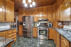 This 34 acres custom home can only be described as elegant. From the Gorgeous Family Room that features distinctive ceilings imported from Belgium and 3 inch Hickory Flooring. Patio doors that lead out to a covered porch, that flows into a beautiful landscaped backyard accented with a Gazebo and Stone waterfall. Great for family gatherings, or weddings. The Gourmet kitchen boasting beautiful granite counter tops, lots of cupboard and stainless steel appliances. Formal Dinning room that features distinctive ceilings that were imported from Italy. This home features 4 bedroom, 4 bathroom. Master Bedroom has ensuite bathroom and walkout balcony. Lower level features a kitchen, bathroom and laundry room that could be used as an in-law suite or office space. Newly refurbished Barn all set up for horses complete with 4 box stall, corral, pasture, hay field, storage space. A wood area complete with trails for nature walks, hunting or 4 wheeling. No power no problem with 10,000 Watt Generac. Flooring: Vinyl, Hardwood, Ceramic.