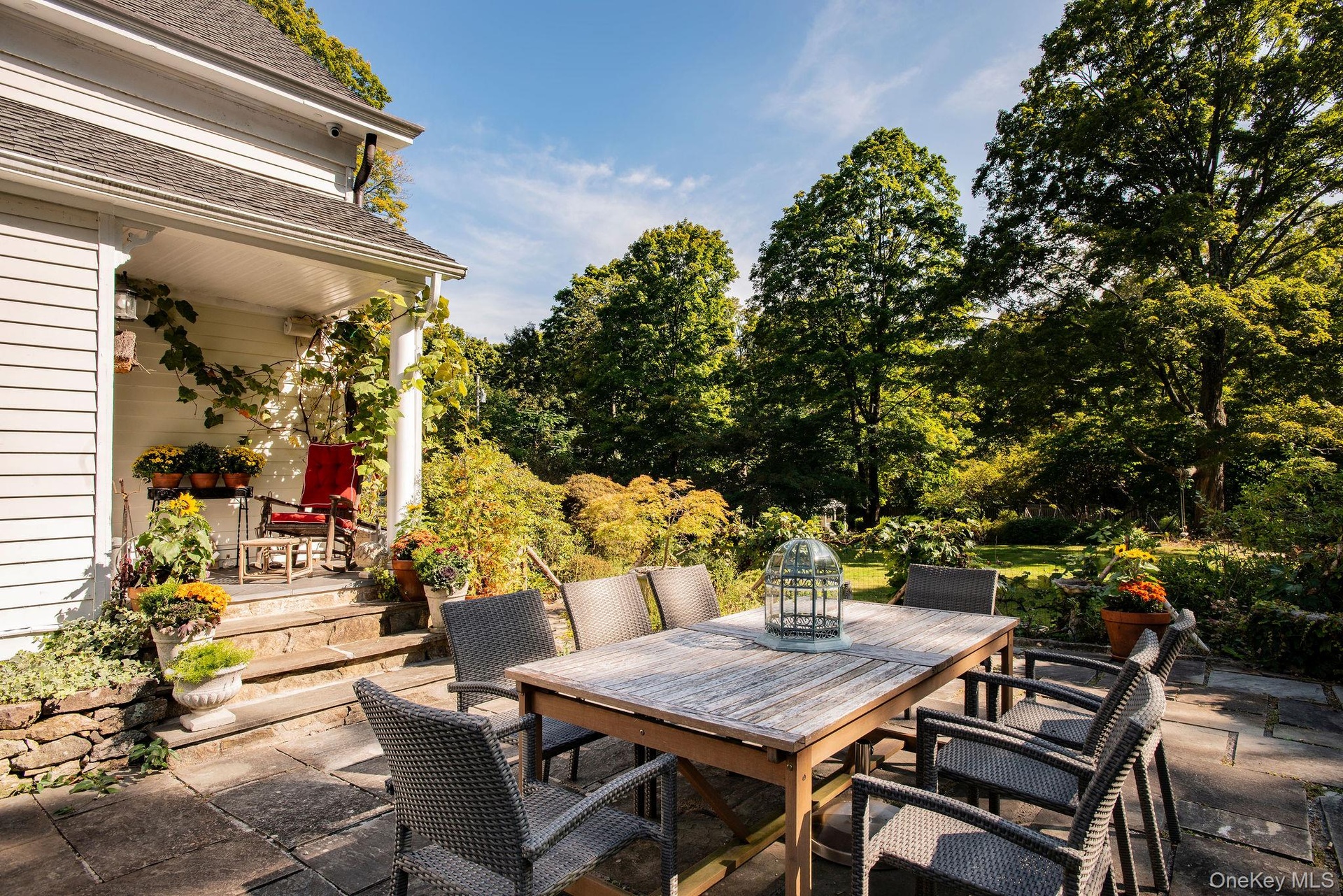 - Bluestone patio adjacent to kitchen with lovingly cultivated gardens.