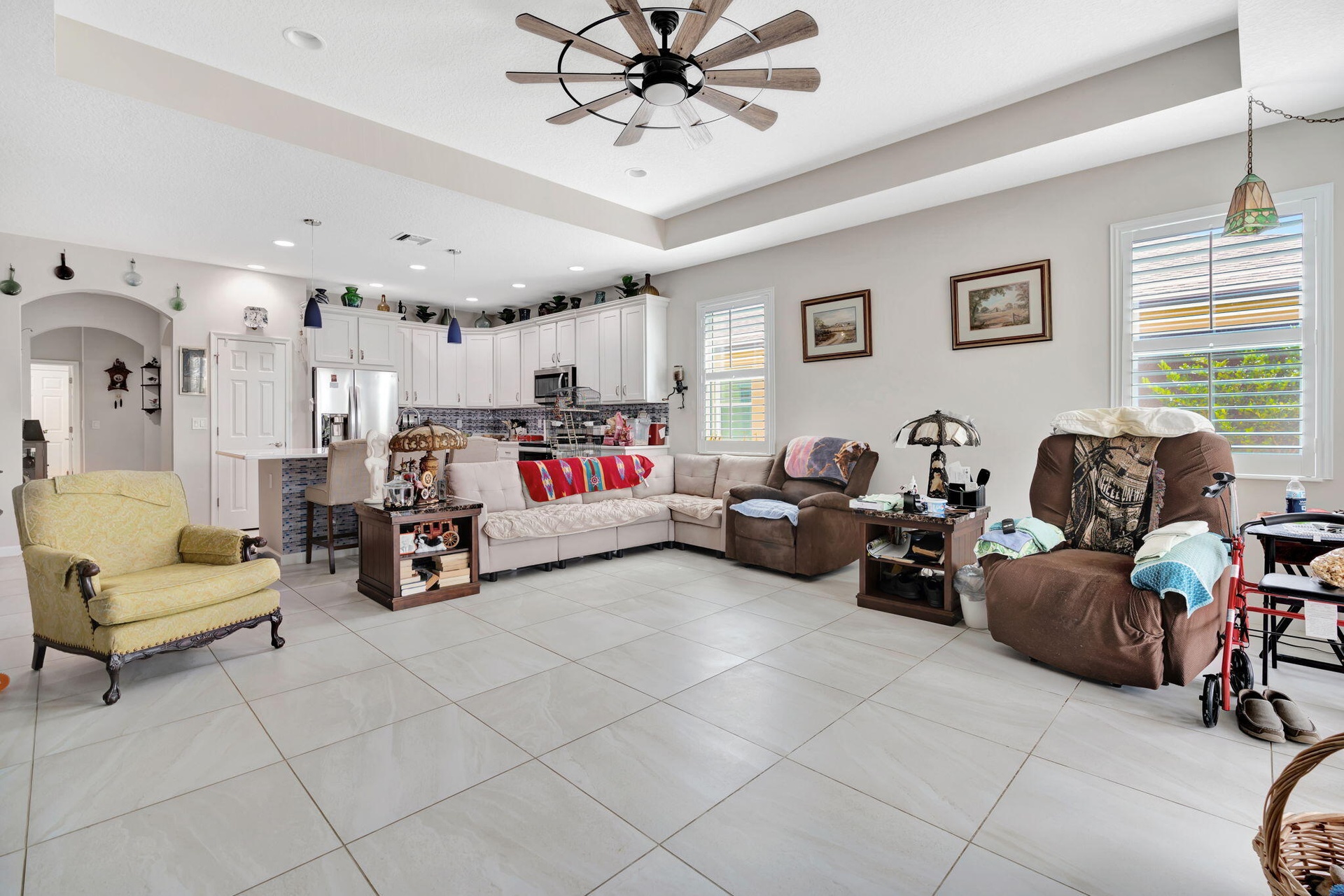 BUILT IN 2021, this IMMACULATE 55 villa offers 2 bedrooms, a DEDICATED OFFICE WITH ELEGANT FRENCH DOORS, and a separate laundry room.