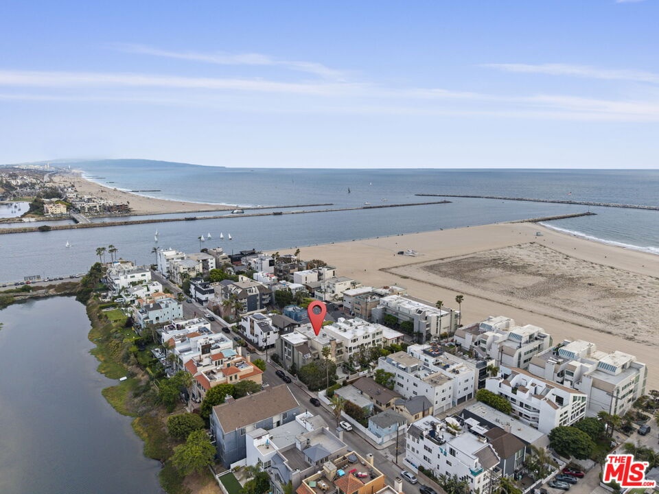 Spectacular main channel townhome just seconds away from the sand on a quiet Marina del Rey "walk street". Located in an exclusive two-unit building, this light-filled 3-story contemporary residence offers 3 bedrooms and 3.5 baths, including a loft-style den/office as the third bedroom. Soaring ceilings and abundant natural light elevate the main living area, while the open-concept kitchen set above the living space features Viking appliances, soapstone counters, and maple cabinetry. A convenient elevator from the lobby opens directly into the main living and dining level. Internal stairs connect to the loft, elevated kitchen, and lower bedroom floors, creating ideal separation for live/work lifestyles and entertaining. The spacious primary suite includes a fireplace, spa tub, dual vanity, and private balcony. The junior suite also enjoys a private spa-style bath and ample closet space. Additional highlights include bamboo flooring, built-in sound system, Phantom screens, generous storage, and two shared guest parking spaces. The cooperative, self-managed HOA emphasizes shared responsibility and collaboration between both unit owners.