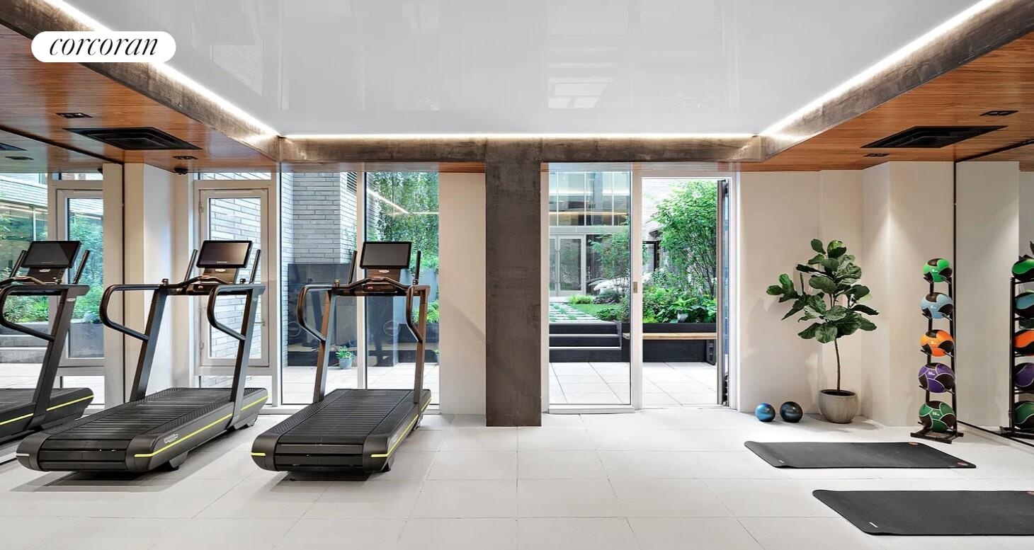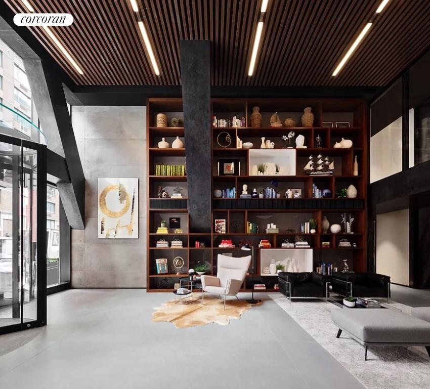 Residents of 505 W 43 enjoy an impressive array of amenities, such as an indoor pool with a connecting outdoor sun deck, a state-of-the-art fitness center, a grand double-height lobby library and lounge, rooftop with grilling station, and a dedicated children's playroom.