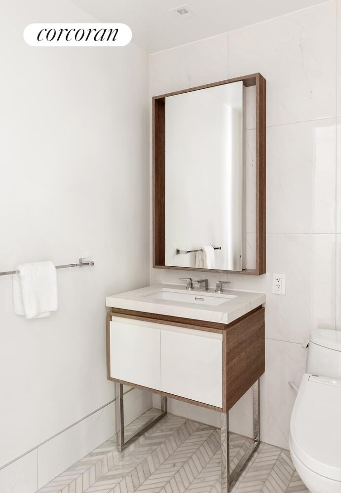 Residence 1C is an exquisite 1,003-square-foot home that harmoniously blends luxury and functionality. This elegant one-bedroom, one-and-a-half-bathroom residence features soaring 9-foot ceilings and expansive floor-to-ceiling windows, bathing the space in natural light. The highlight of the residence is its sunny 807-square-foot landscaped terrace, oriented to the south, offering a serene outdoor retreat.