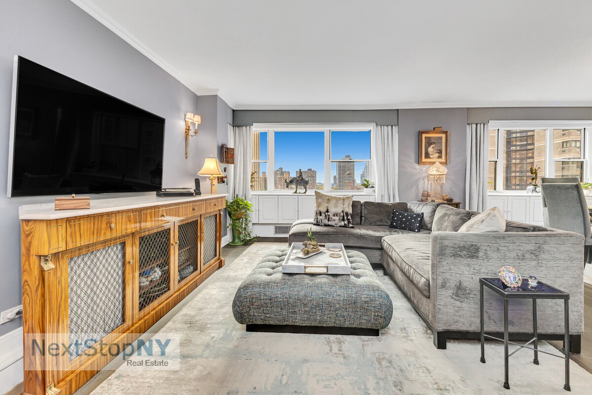 As an owner, resident, and broker at 1175 York Avenue, I am delighted to present the highly sought-after "D" line at York River House. This renovated high-floor, grand corner residence offers a spacious and flexible layout featuring 3 bedrooms and 2 bathrooms (with the possibility to restore a third bathroom with board approval).