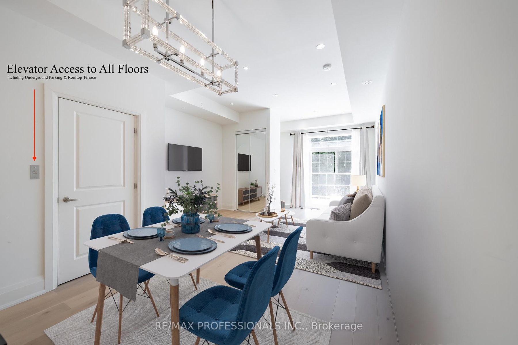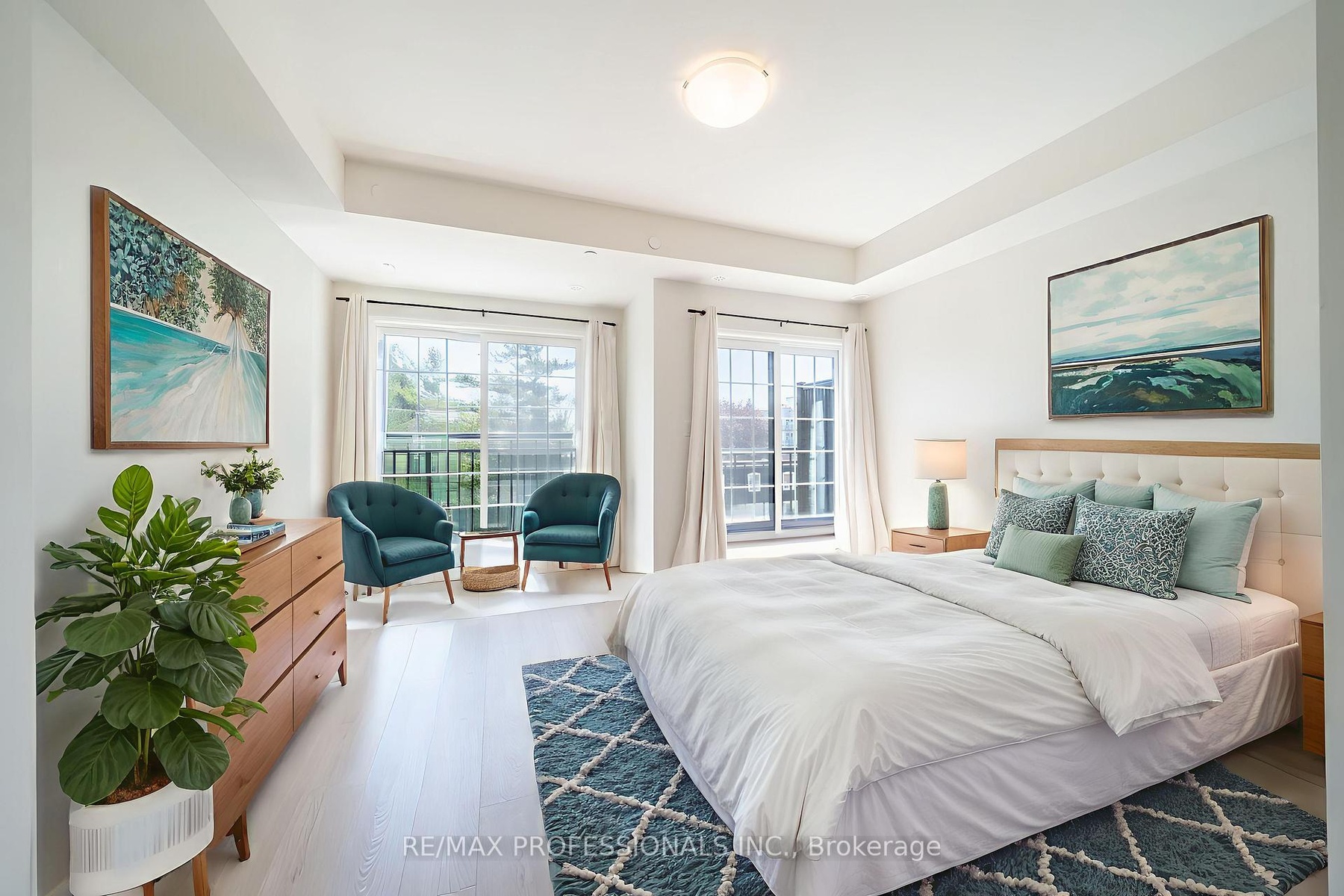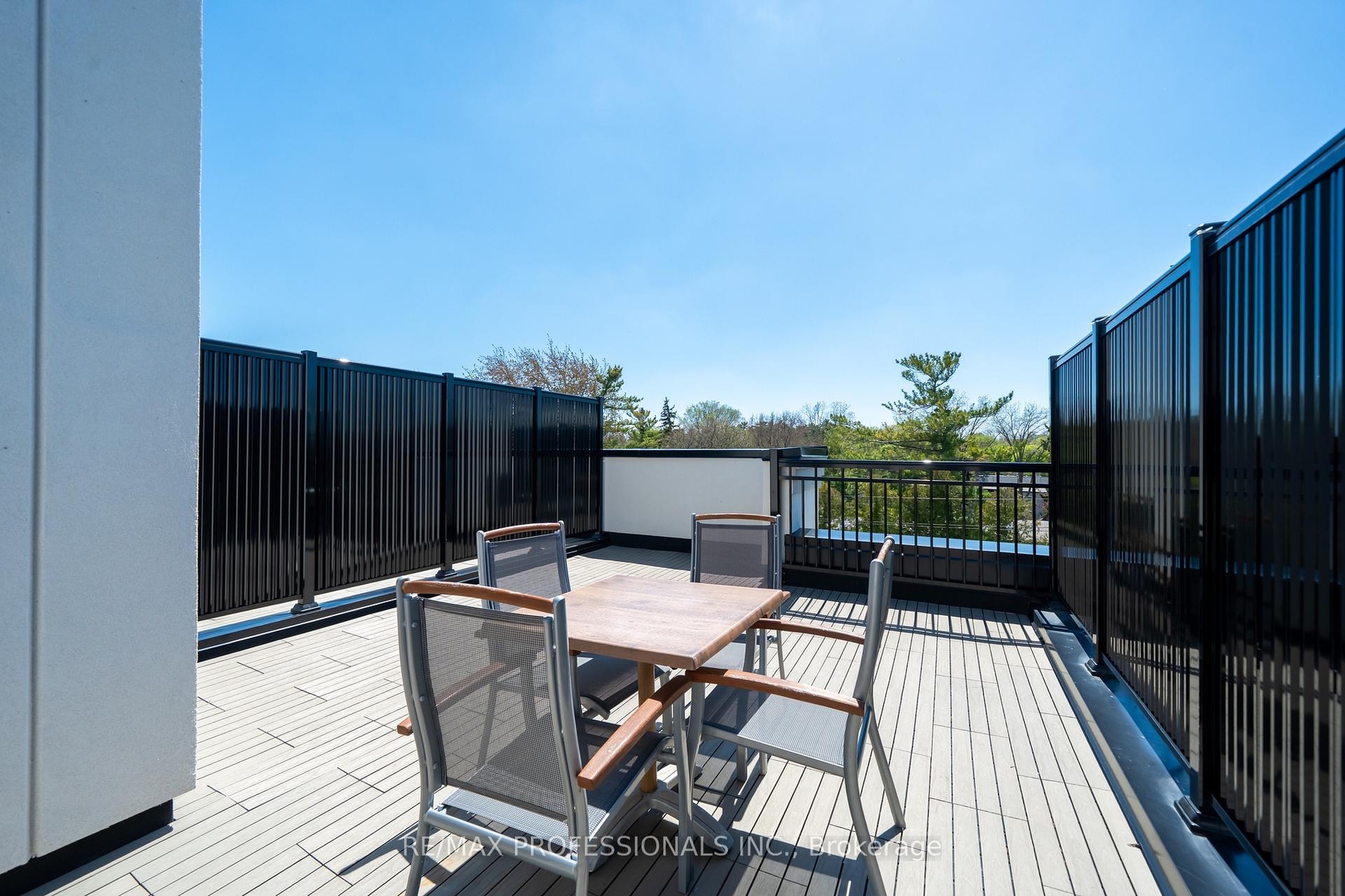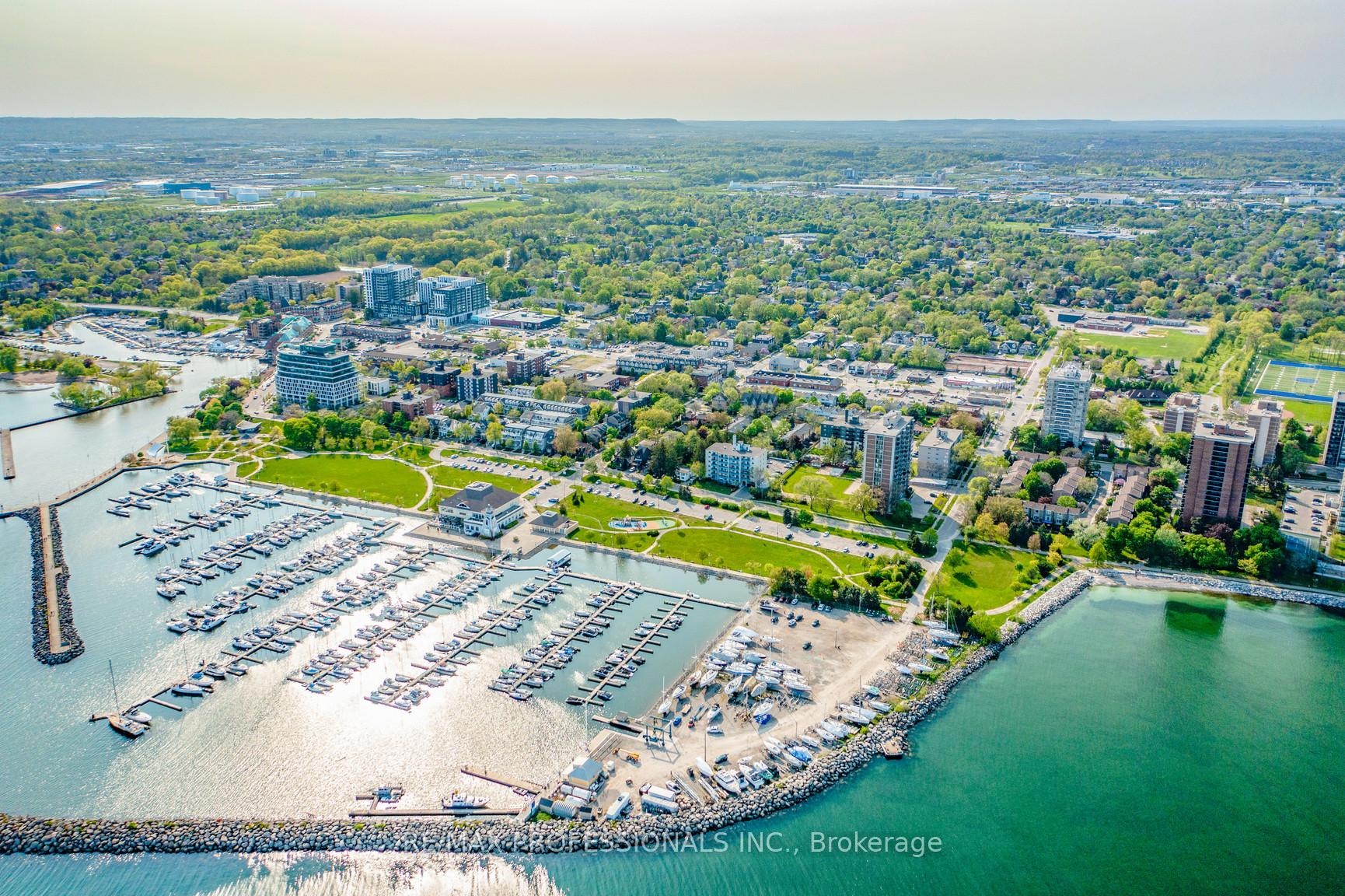 Executive Townhome with Your Very Own Private Elevator!! Welcome to Harbour Place, an exclusive new development in the heart of Oakville's popular lakeside community. Nestled just south of Lakeshore Road and steps from Lake Ontario, this limited collection of only 22 executive townhomes offers refined living by the harbour. This stunning 2,112 sq. ft. residence boasts luxury at every turn, complemented by 472 sq. ft. of private outdoor space including a rooftop terrace and a charming front yard patio. The rooftop terrace serves as your personal outdoor oasis perfect for entertaining, intimate dinners, or unwinding with a glass of wine under the stars. Inside, enjoy 10-ft ceilings, expansive front windows, and an open-concept main floor that seamlessly blends comfort and sophistication. The designer kitchen is a chef's dream, featuring quartz countertops, chic backsplashes, luxury appliances, waterfall island, and cabinetry with soft-close hardware. The second floor is dedicated entirely to a serene master retreat complete with a walk-in closet, spa-like ensuite bathroom with a soaker tub, frameless rainfall shower, and elevator access. This home offers 2 generous-sized bedrooms plus a sleek den with glass panel walls ideal for a stylish home office. Additional features include; Private elevator access throughout home from the rooftop terrace to the underground garage, Direct underground access with 2 parking spots and storage, Heated Flooring, Sophisticated finishes and attention to detail top-to-bottom. A must-see for those seeking upscale lakeside living in a peaceful, prestigious community. Book your private showing today and experience life at Harbour Place. **Various Virtually Staged Images**