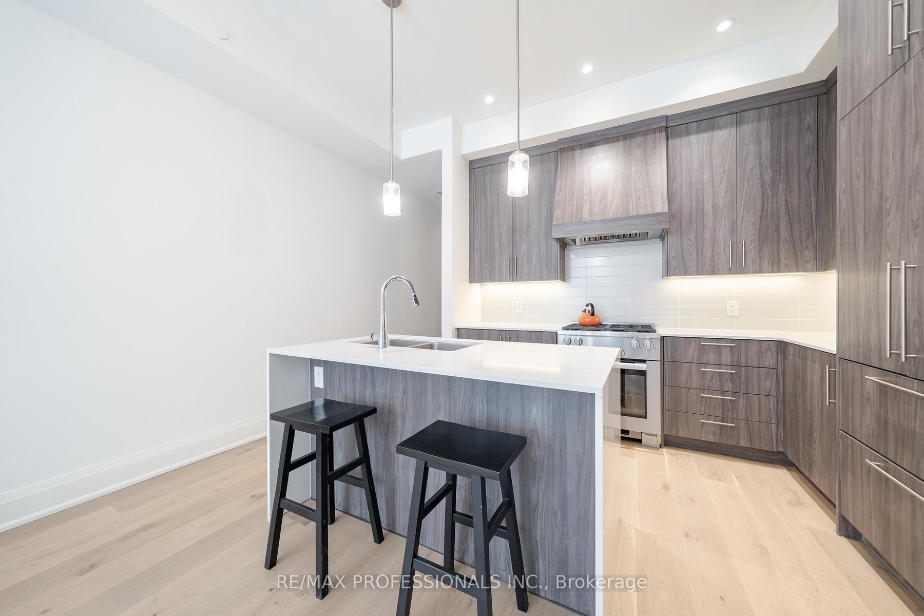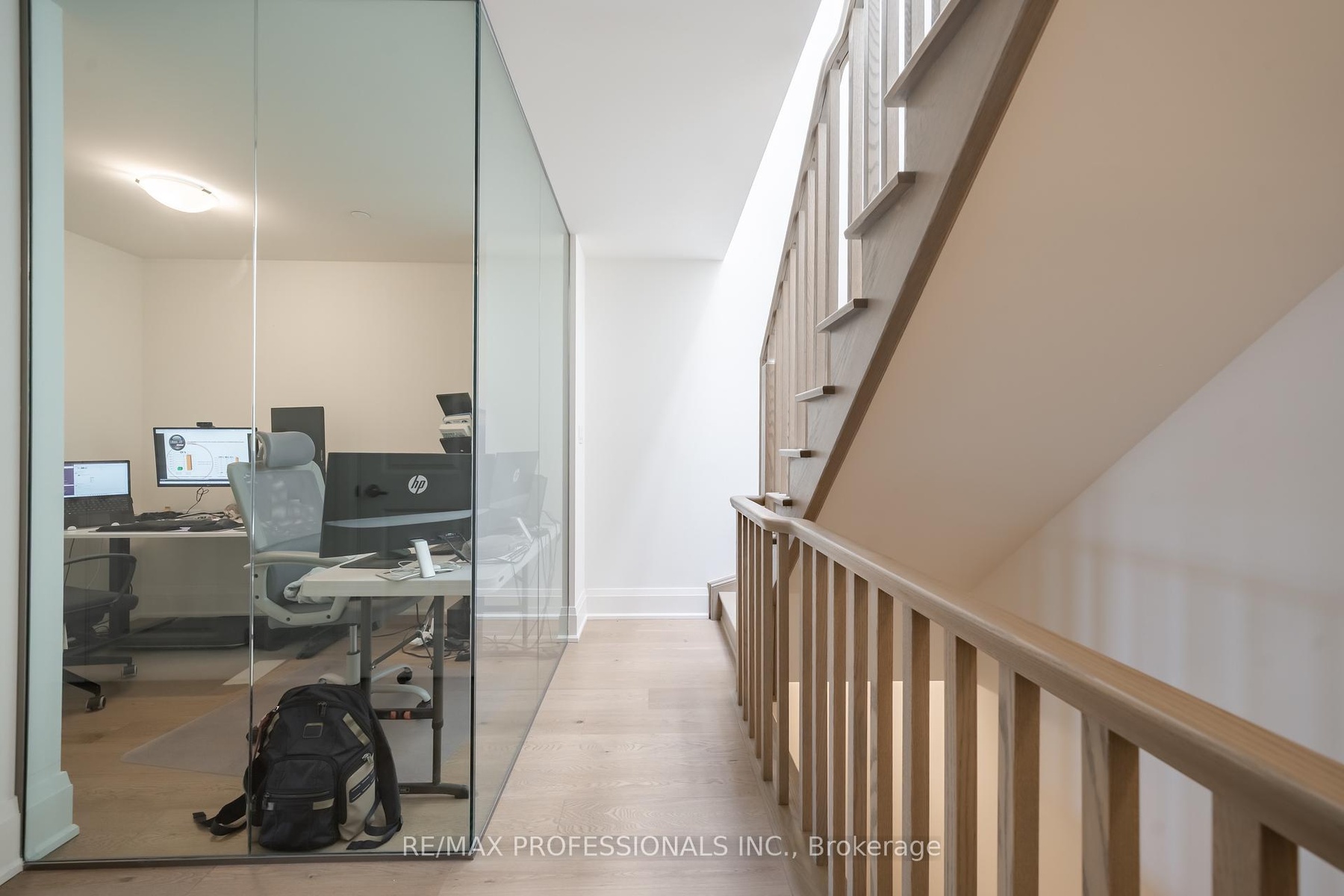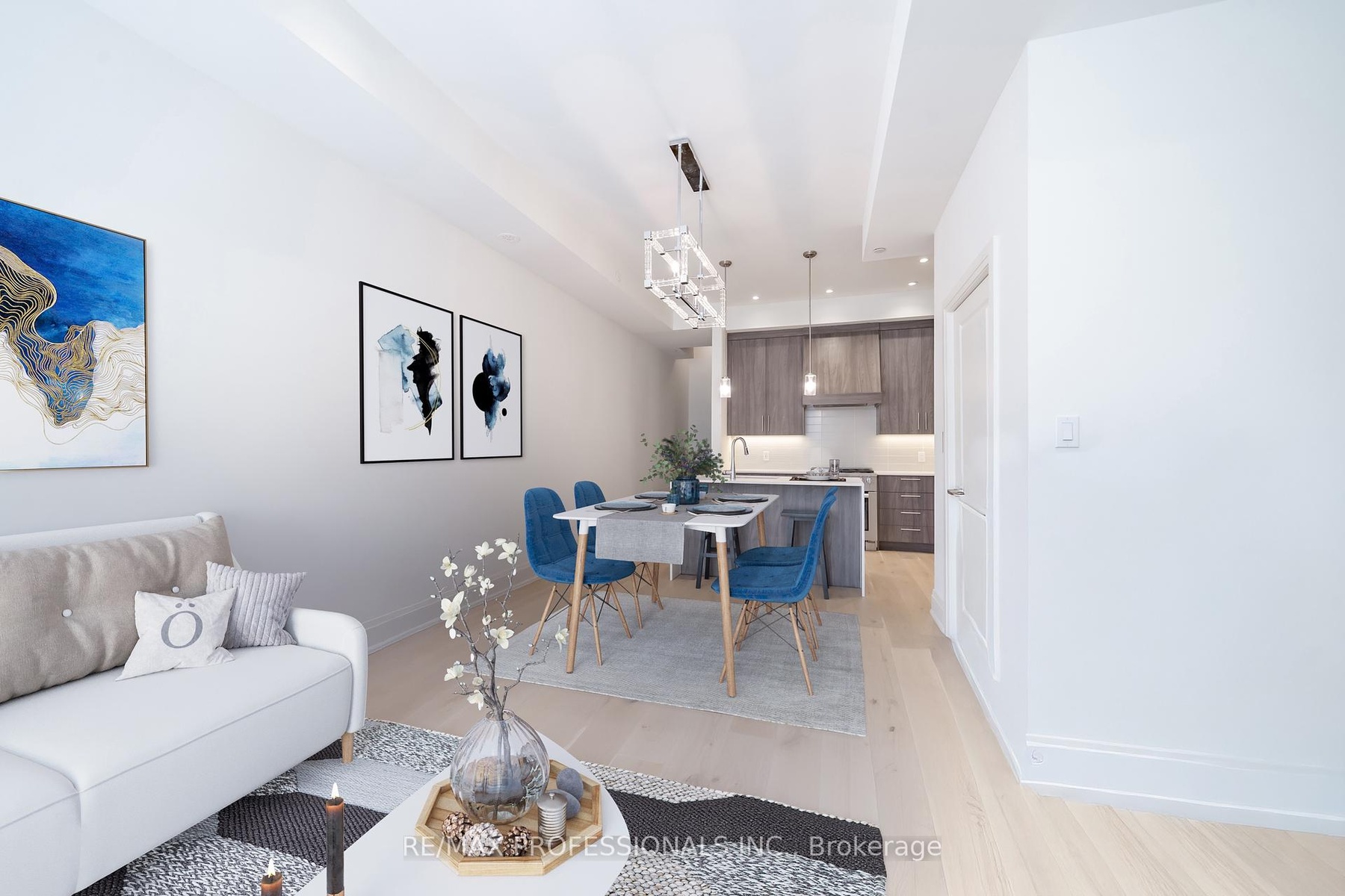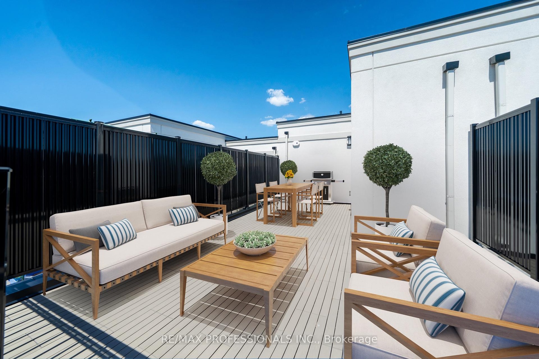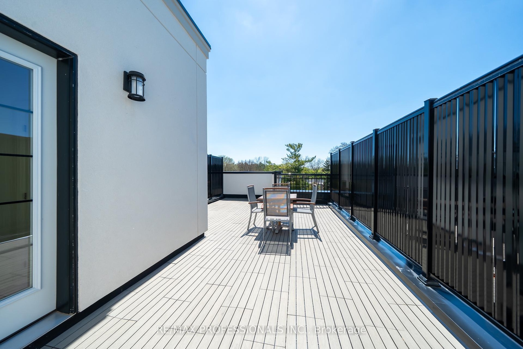Executive Townhome with Your Very Own Private Elevator!! Welcome to Harbour Place, an exclusive new development in the heart of Oakville's popular lakeside community. Nestled just south of Lakeshore Road and steps from Lake Ontario, this limited collection of only 22 executive townhomes offers refined living by the harbour. This stunning 2,112 sq. ft. residence boasts luxury at every turn, complemented by 472 sq. ft. of private outdoor space including a rooftop terrace and a charming front yard patio. The rooftop terrace serves as your personal outdoor oasis perfect for entertaining, intimate dinners, or unwinding with a glass of wine under the stars. Inside, enjoy 10-ft ceilings, expansive front windows, and an open-concept main floor that seamlessly blends comfort and sophistication. The designer kitchen is a chef's dream, featuring quartz countertops, chic backsplashes, luxury appliances, waterfall island, and cabinetry with soft-close hardware. The second floor is dedicated entirely to a serene master retreat complete with a walk-in closet, spa-like ensuite bathroom with a soaker tub, frameless rainfall shower, and elevator access. This home offers 2 generous-sized bedrooms plus a sleek den with glass panel walls ideal for a stylish home office. Additional features include; Private elevator access throughout home from the rooftop terrace to the underground garage, Direct underground access with 2 parking spots and storage, Heated Flooring, Sophisticated finishes and attention to detail top-to-bottom. A must-see for those seeking upscale lakeside living in a peaceful, prestigious community. Book your private showing today and experience life at Harbour Place. **Various Virtually Staged Images**