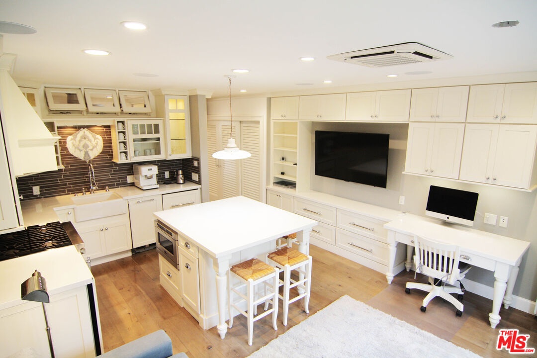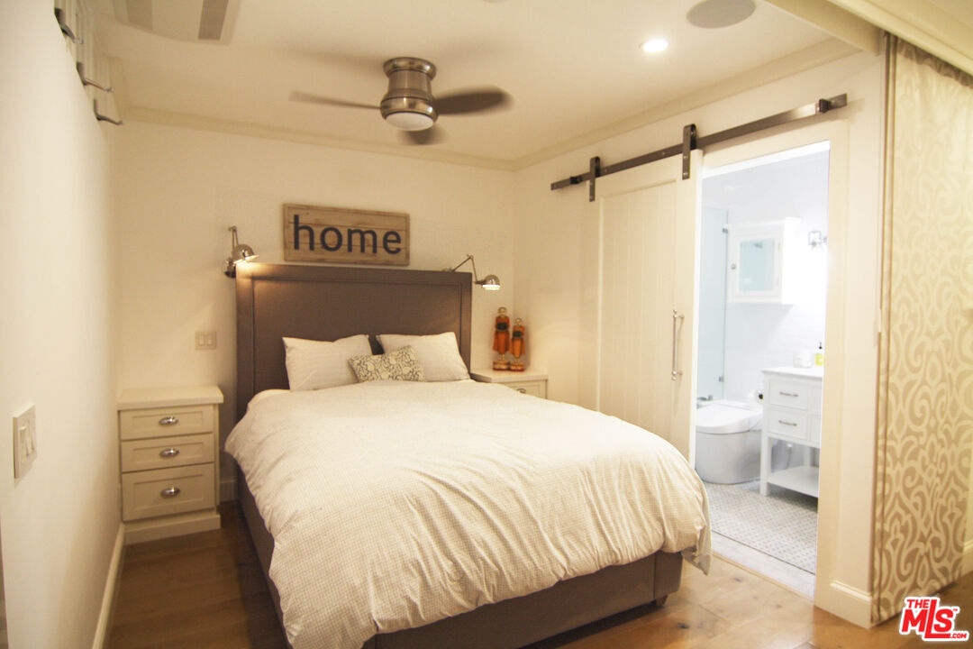 Drive down a palm lined Santa Monica street, breathe the ocean air, and arrive at a state of the art modern farmhouse chic haven built for effortless living. Inside, a beautifully defined sleeping area lives like a true bedroom, while premium touches -- a smart bidet, in-unit laundry tucked into a walk-in cedar closet, and a chef's kitchen with fully integrated appliances -- elevate the routine. Two panel-ready refrigerators, a built-in freezer, a concealed dishwasher, and a hidden pull-out disposal compartment disappear behind custom cabinetry for a seamless, furniture like finish. Sunlight pours through patio doors, connecting the open living and kitchen spaces to easy mornings and spontaneous nights out. Quietly positioned as the last residence at the back of the building, it offers both a welcoming front entrance and a discreet, direct to garage exit -- secure garage parking sits just steps from your door for quick in and out. A stone's throw from Montana Avenue and moments to the beach, this turnkey landing pad makes settling into Los Angeles feel instant. This is truly the best value in all of Santa Monica.