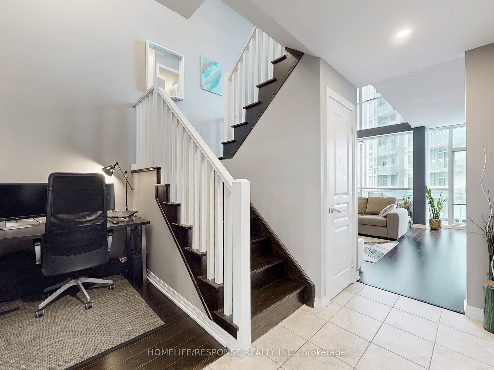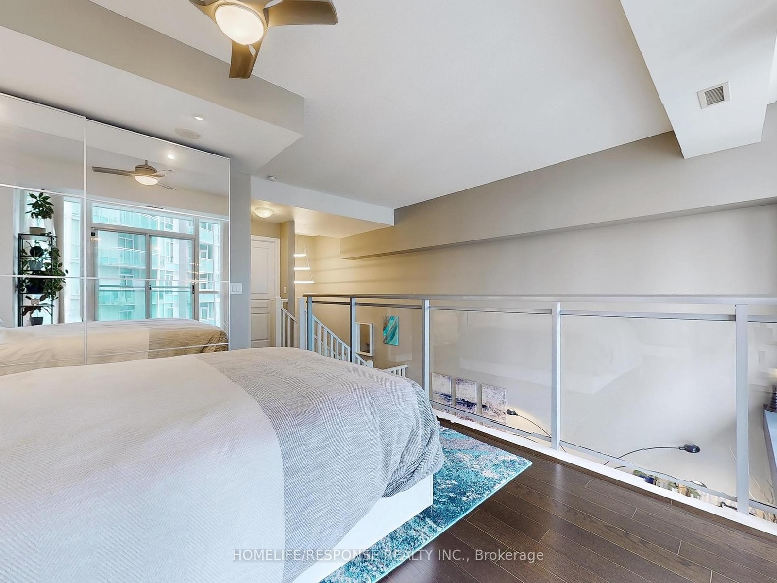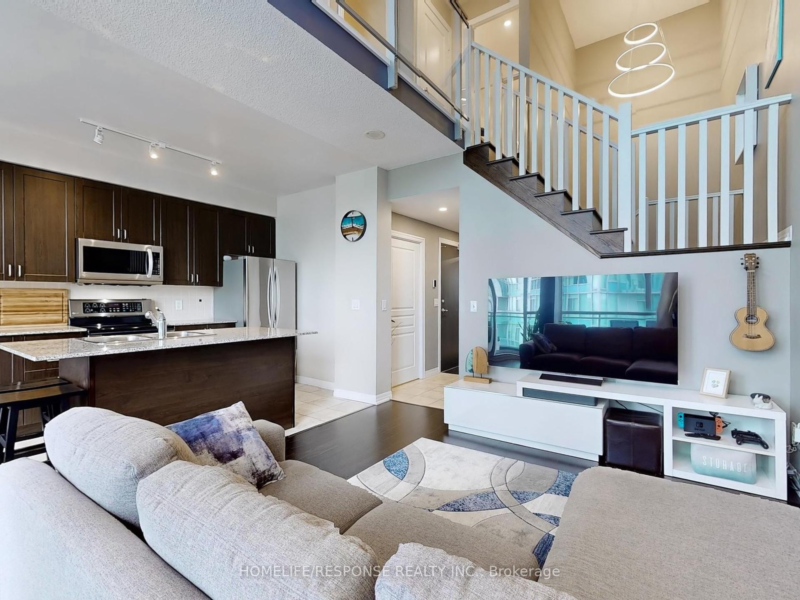 DescriptionDreams Really Do Come True! This one-of-a-kind, modern two-storey loft in the upscale Onyx building offers over 800 sq ft of luxurious living in the heart of downtown Mississauga. Featuring a gorgeous upgraded kitchen with stainless steel appliances, granite counters, and a center island, its perfect for entertaining. The bright, open-concept design boasts soaring 18-foot floor-to-ceiling windows that flood the space with natural light, a spacious living and dining area, and a large balcony with breathtaking panoramic views of Mississauga and Celebration Square an ideal spot to watch fireworks! This beautifully designed loft includes 1 bedroom + den, 2 bathrooms, a large closet, and a 4-piece ensuite. The versatile den is perfect for a home office or nursery. Residents enjoy unbeatable convenience with steps to grocery stores, medical care, Sheridan college, YMCA, Library, top restaurants, entertainment, Square One Mall, walking distance to tennis/soccer fields and easy access to buses, the QEW, 401/403, and Cooksville GO station all just minutes away. Next to Kariya park with cherry blossoms in spring. Experience refined urban living in one of Mississauga's most sought-after addresses! 2 Parking. Amenities Include: 24 Hour Concierge! Guest Parking! Rooftop Patio! Fitness Centre! Yoga Room, Indoor Pool, Hot Tub!Amenities- Exercise Room